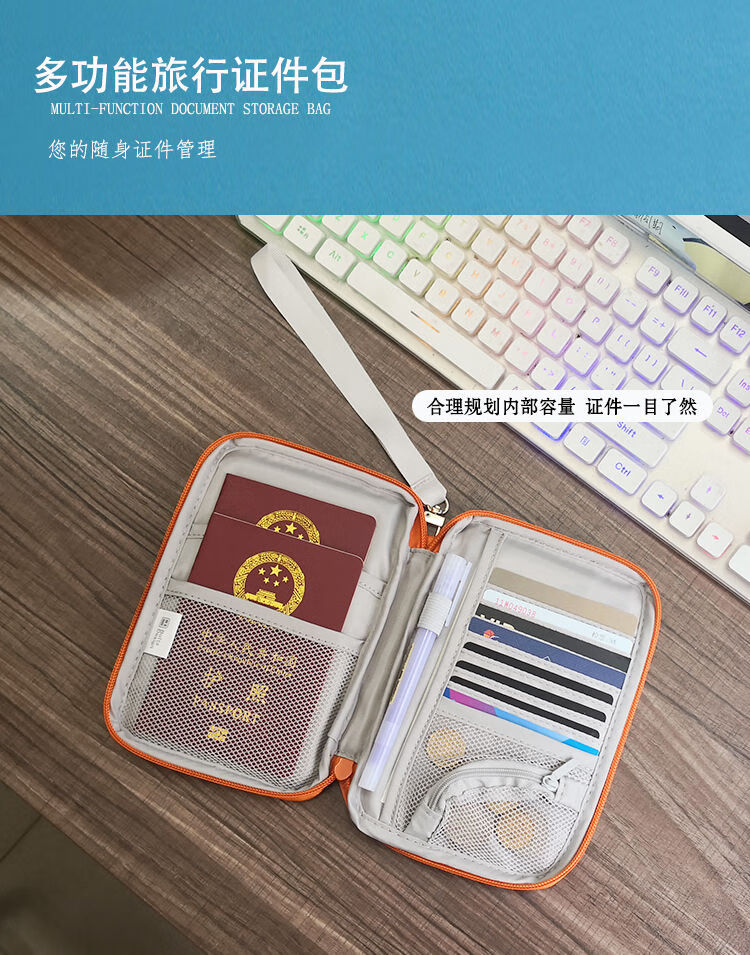 护照包机票护照夹保护套女ins证件包出国旅行收纳包多功能证件袋 大号浅粉色 (手绳 +挂脖绳)