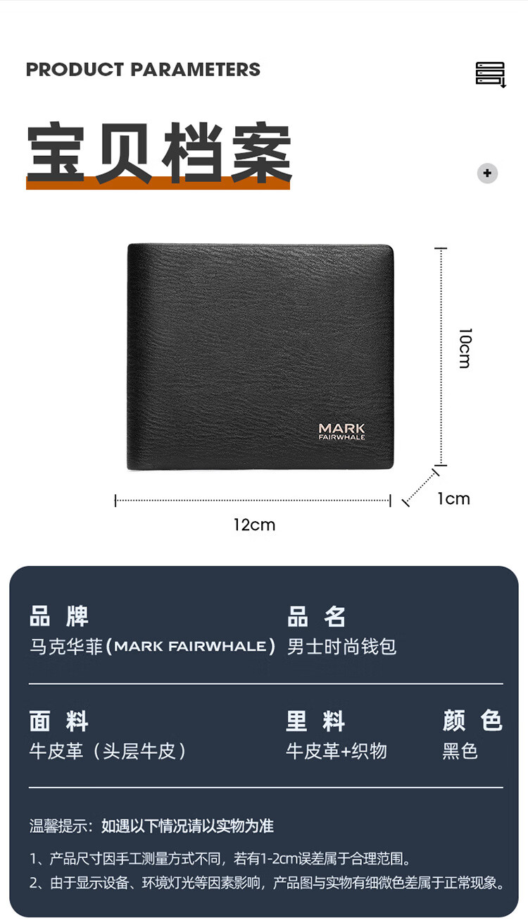 MARK FAIRWHALE Productos de lujo de gama alta 2025 Nueva cartera para hombres Cartera corta de cuero genuino Moda de negocios Cartera informal con tarjetero Negro