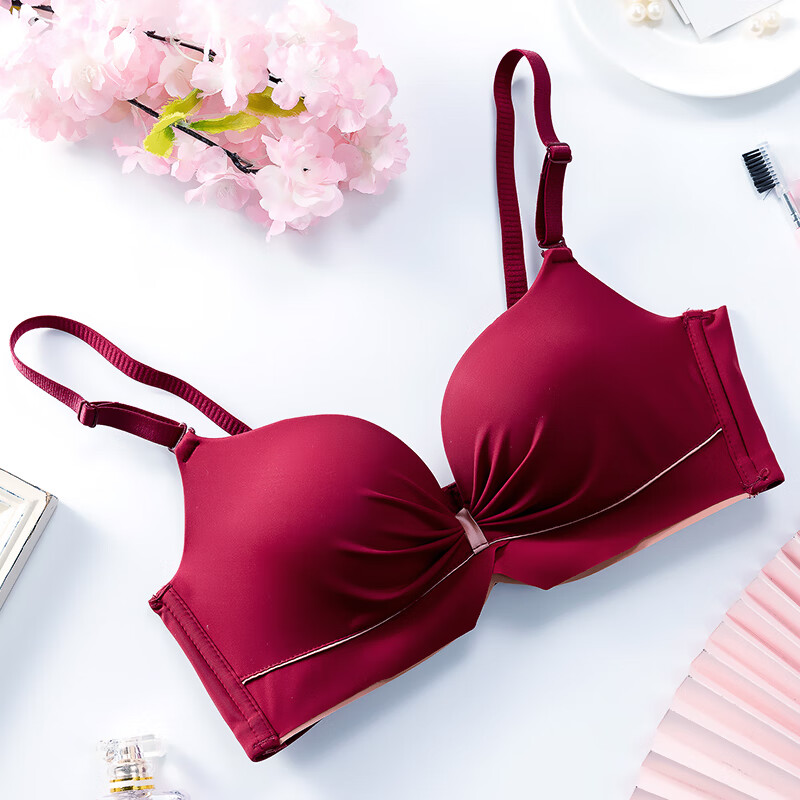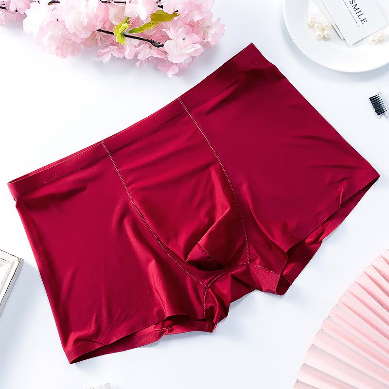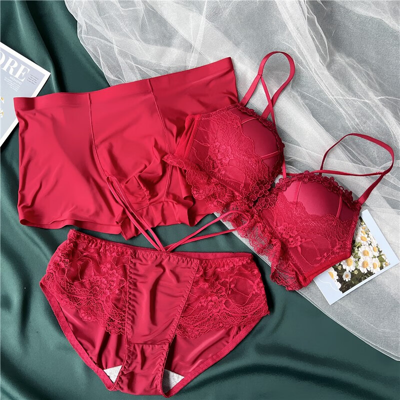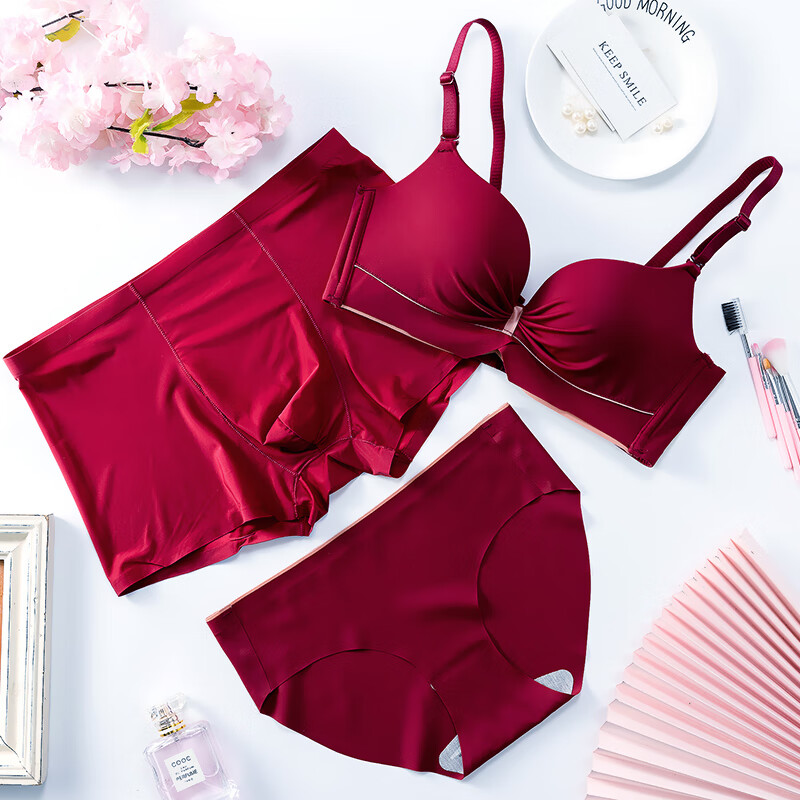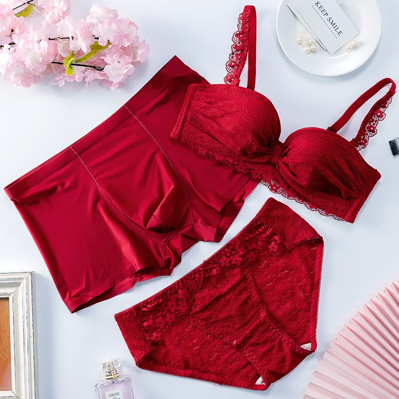 纪娅芙本命年红色结婚新婚情侣内衣套装三件套带文胸胸罩情侣内裤冰丝 2条 4840酒红套装 女(34/75AB)+男XXL