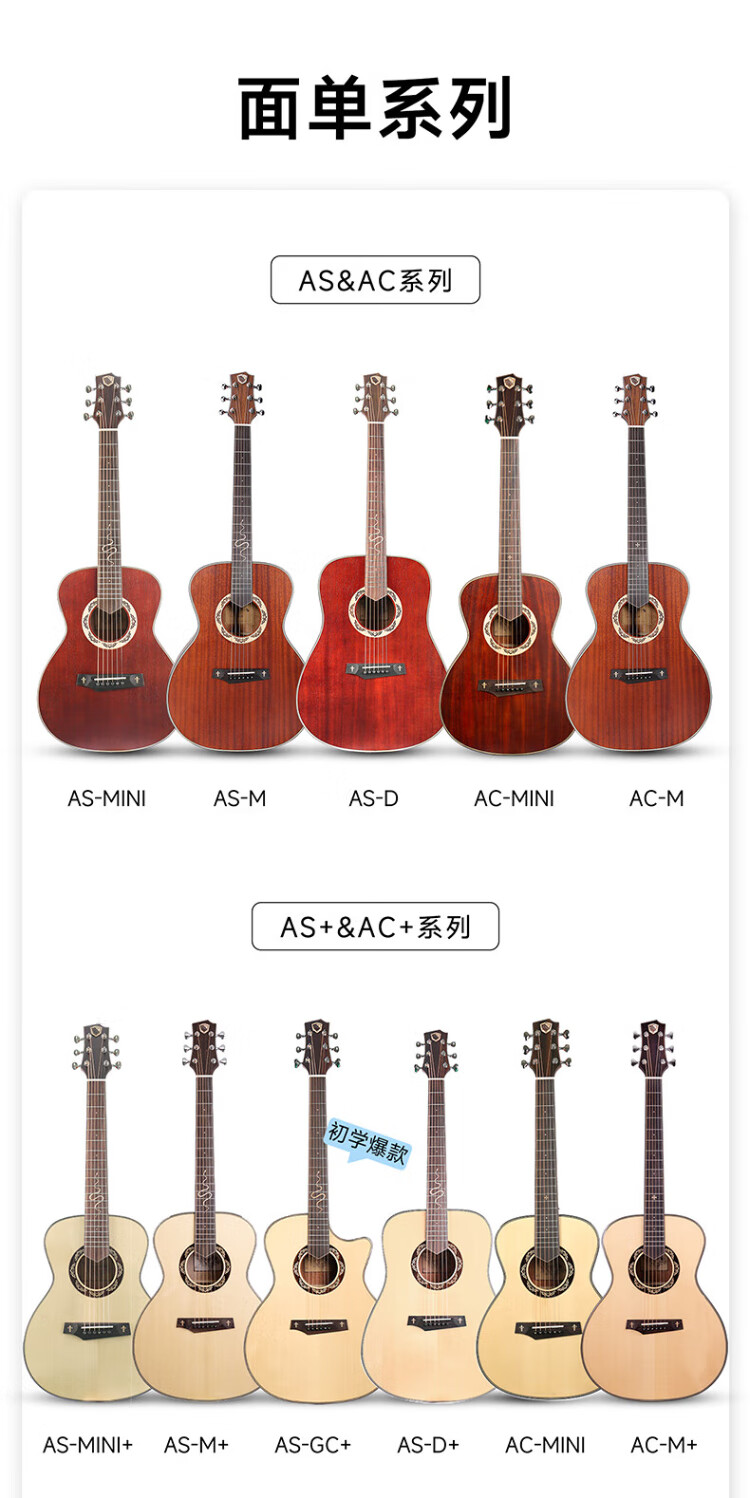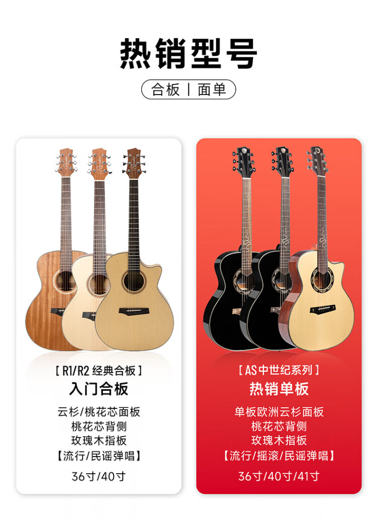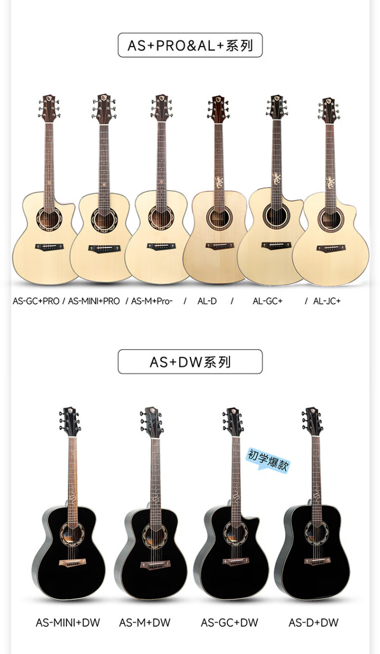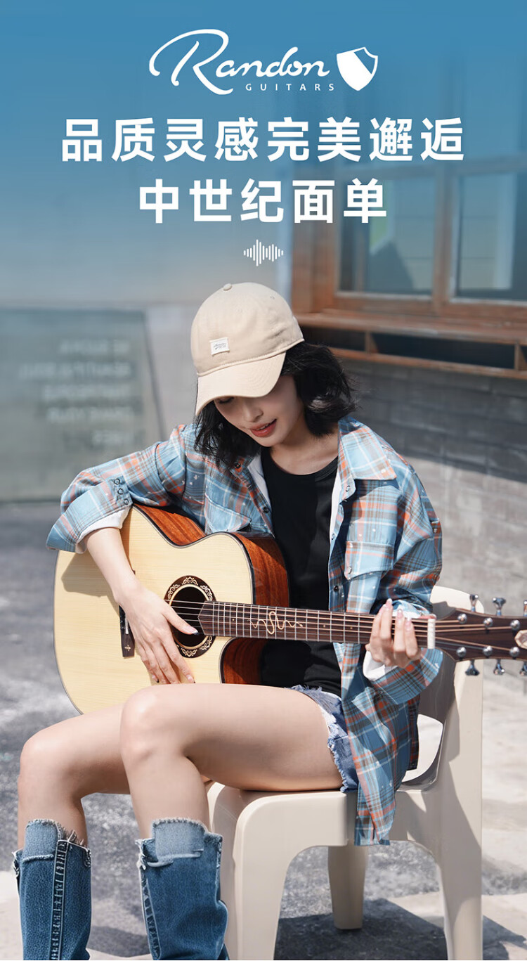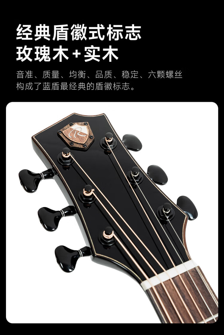 蓝盾Randon吉他AS灵蛇黑武士民谣吉他面单板初学AC/AL新手木吉它入门 【黑武士】AS-GC+DW 41寸缺角