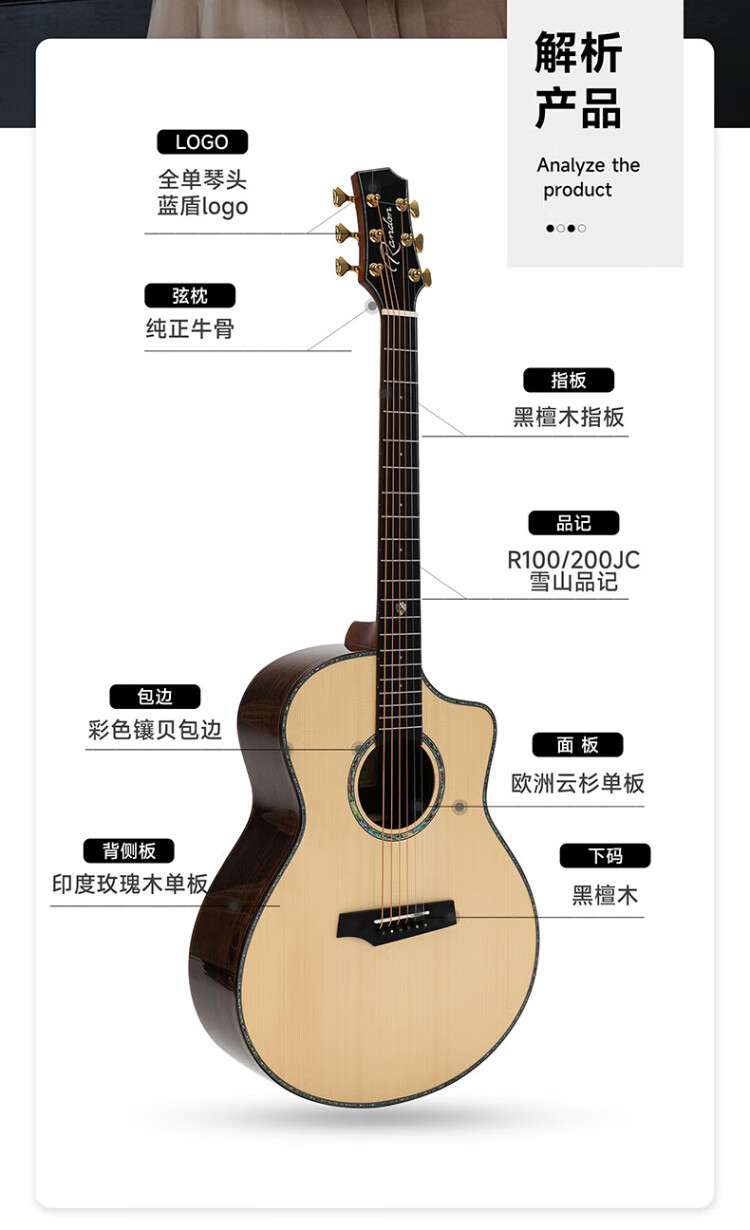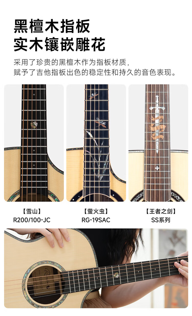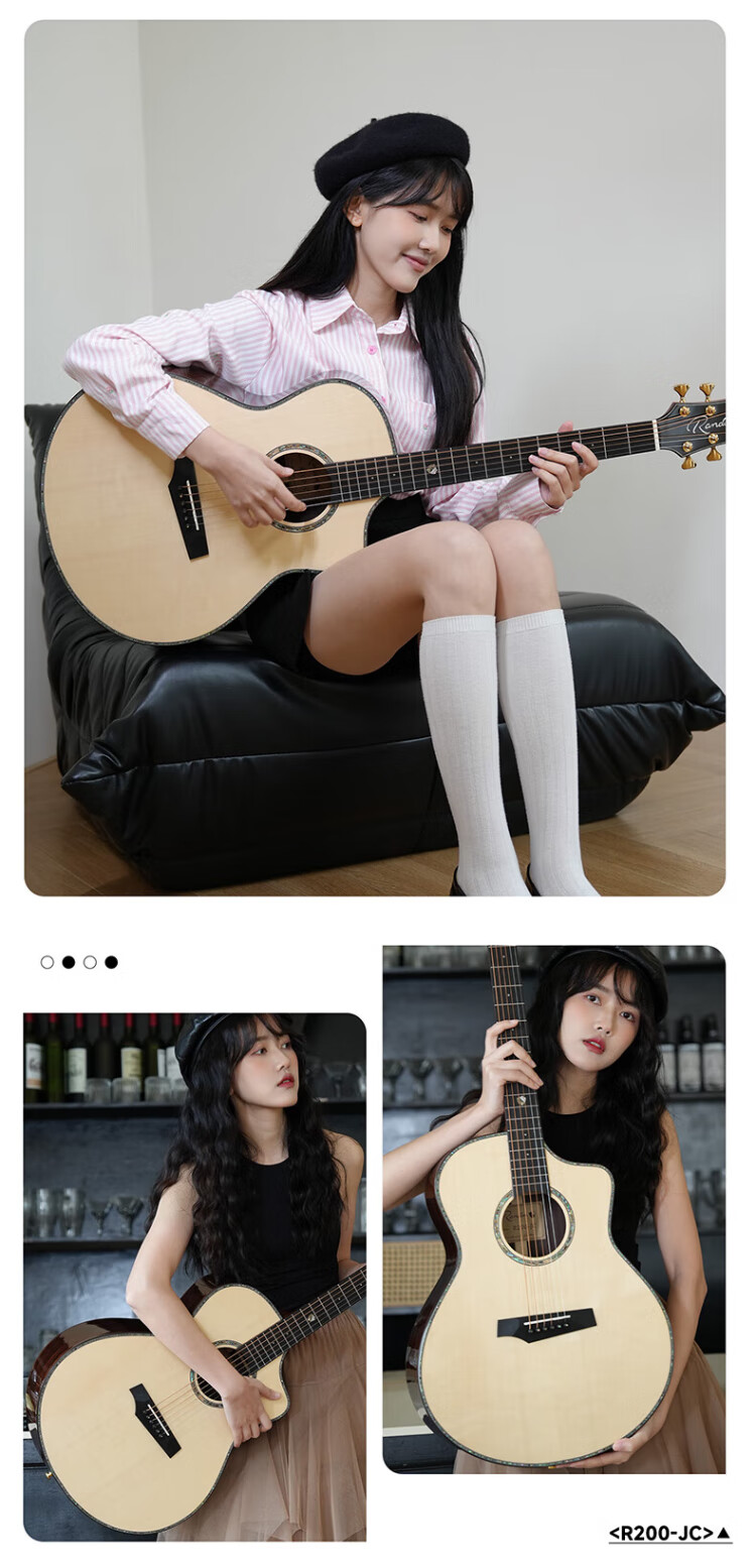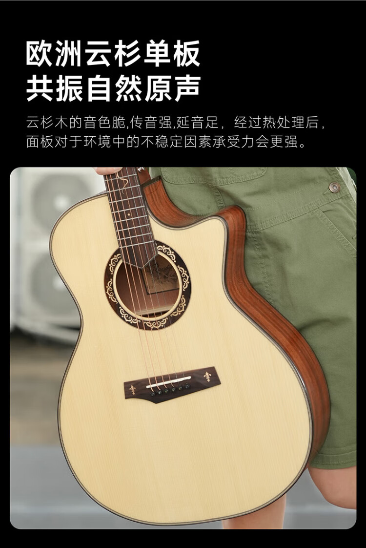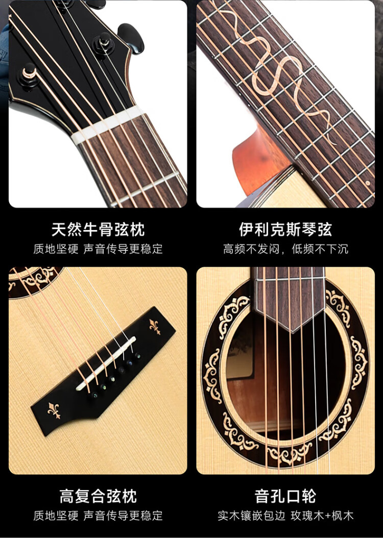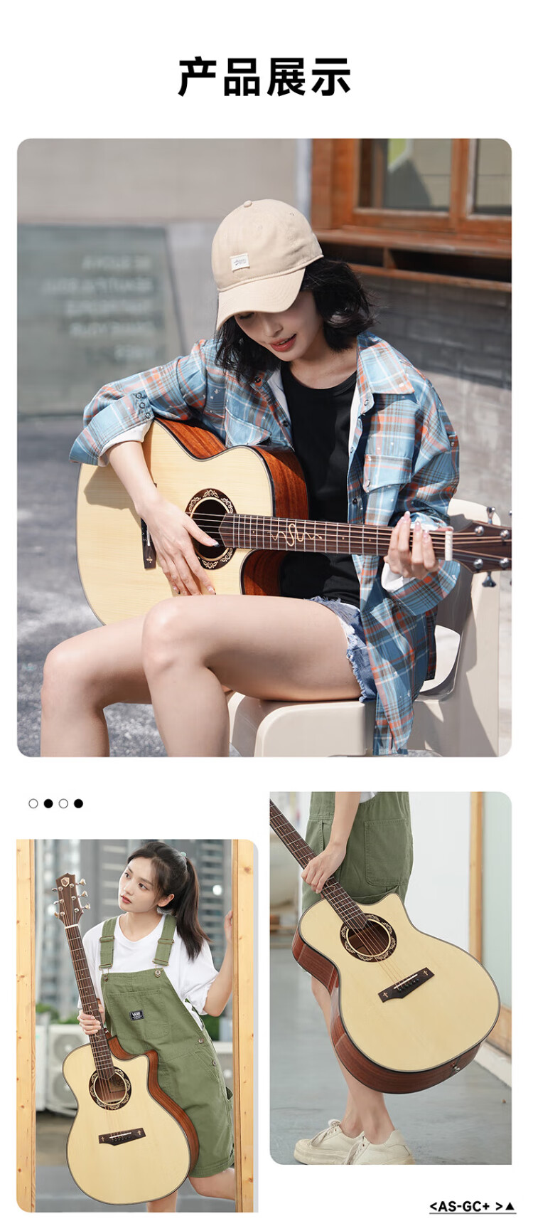 蓝盾Randon吉他AS灵蛇黑武士民谣吉他面单板初学AC/AL新手木吉它入门 【黑武士】AS-GC+DW 41寸缺角
