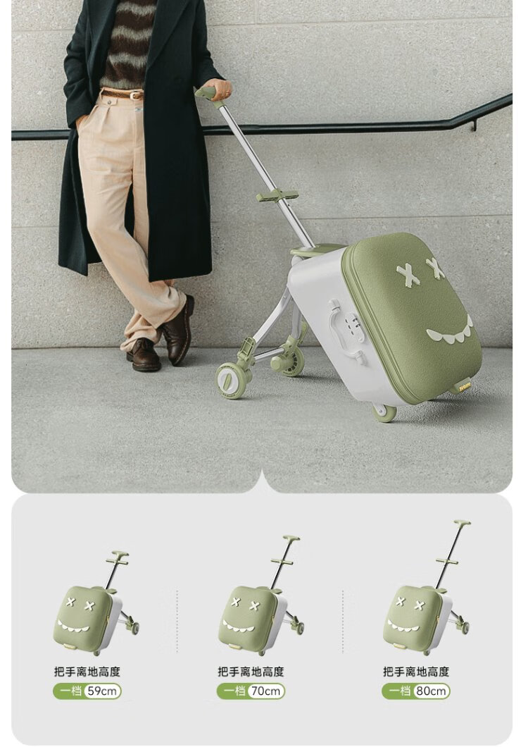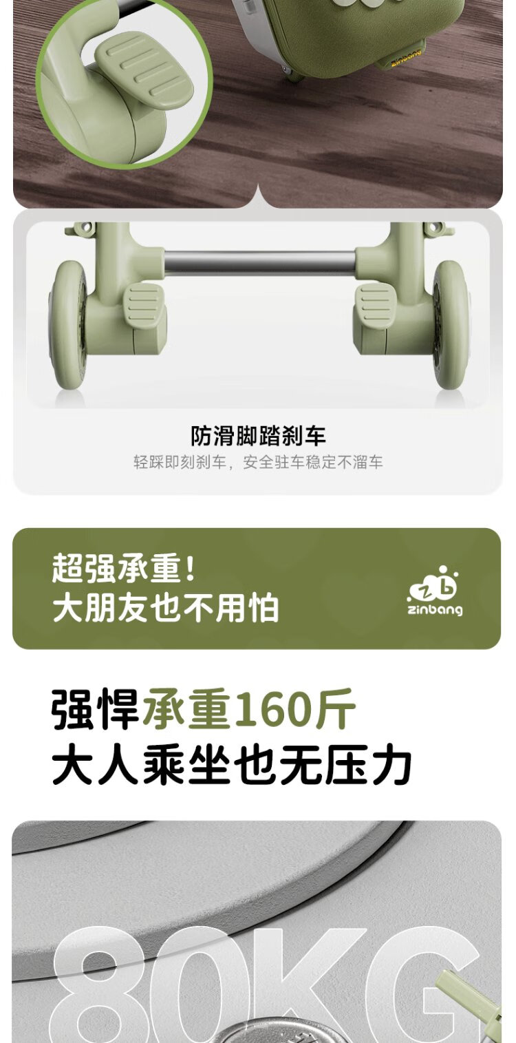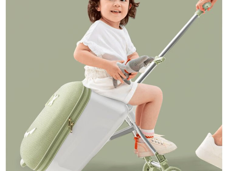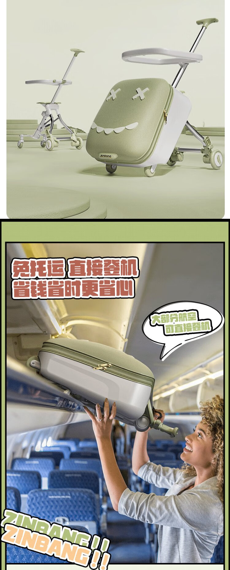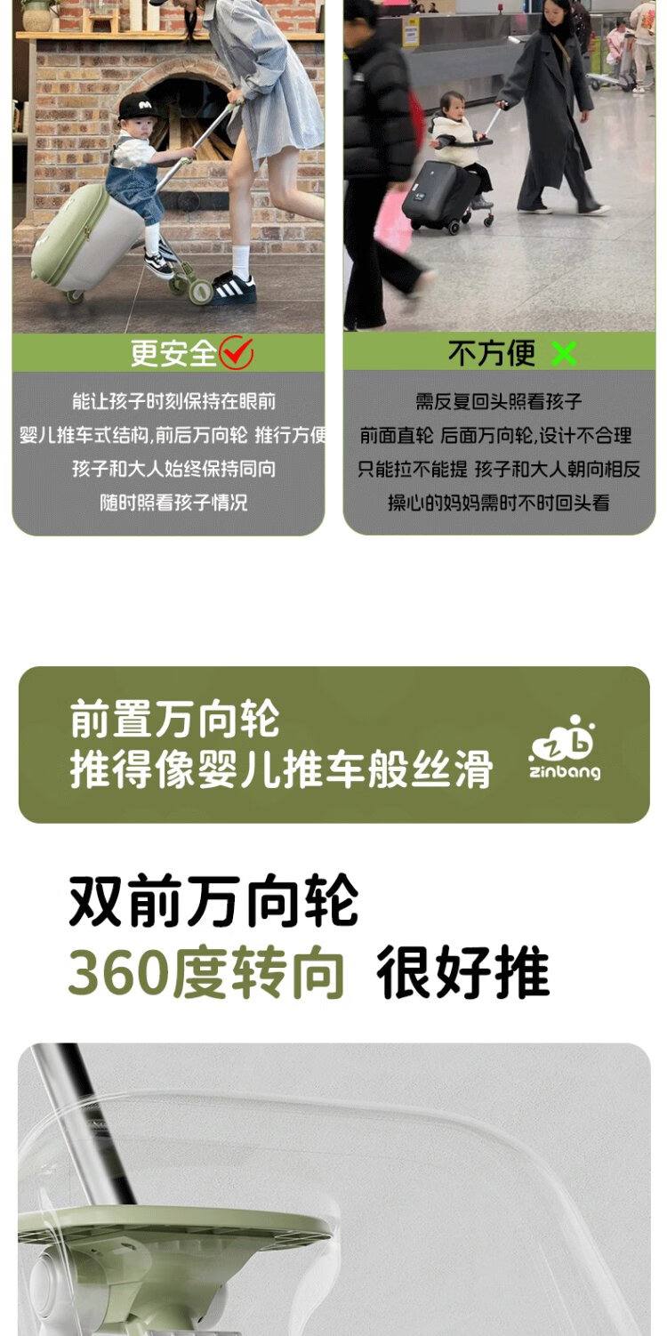 ZINB ANG遛娃儿童行李箱拉杆箱可坐可骑行可登机男女宝宝推车旅行箱 绿色【扩容款/39.8L】