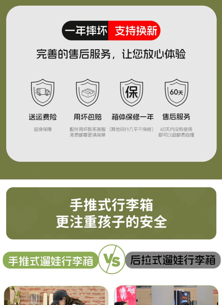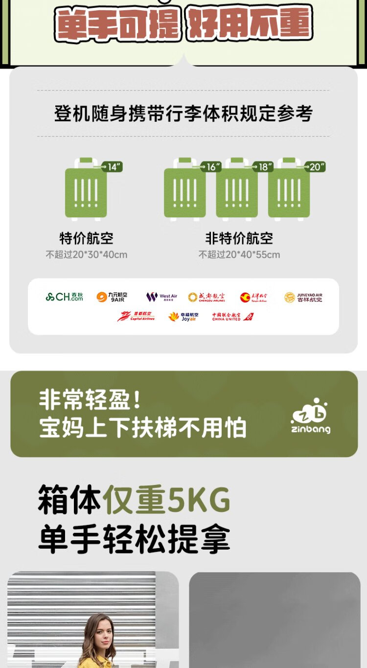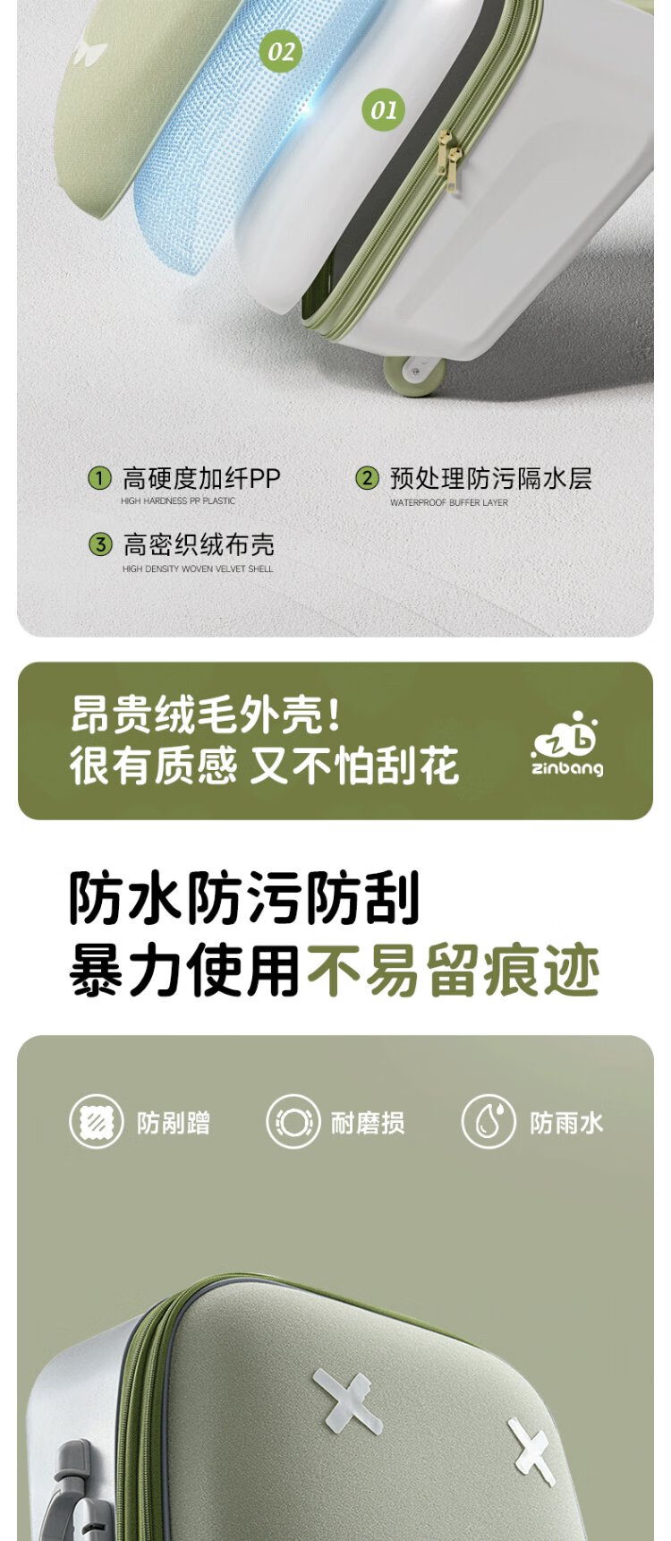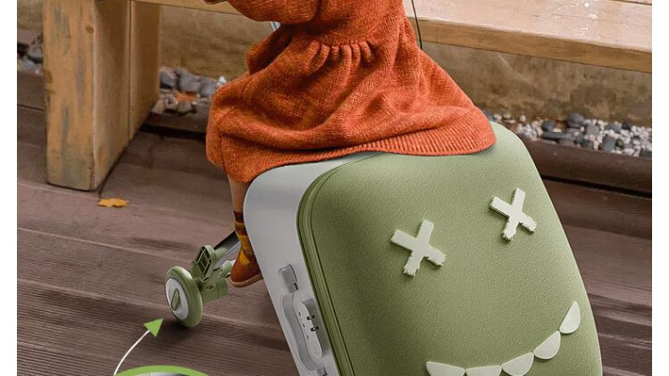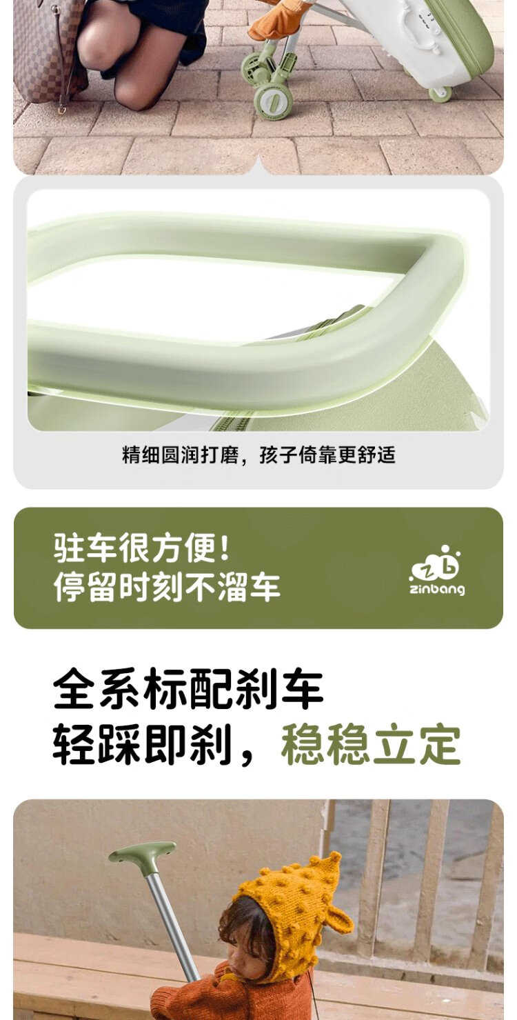 ZINB ANG遛娃儿童行李箱拉杆箱可坐可骑行可登机男女宝宝推车旅行箱 绿色【扩容款/39.8L】