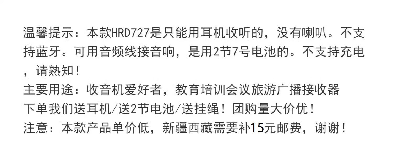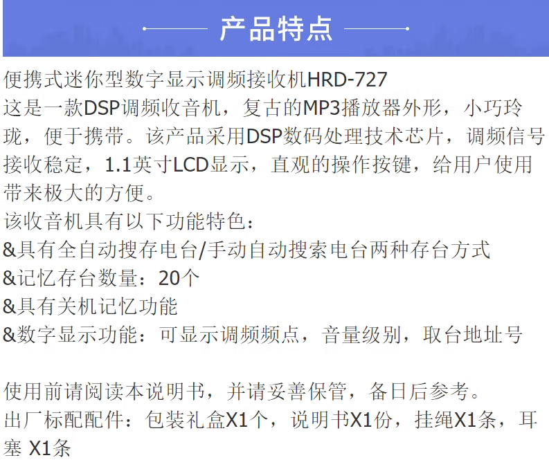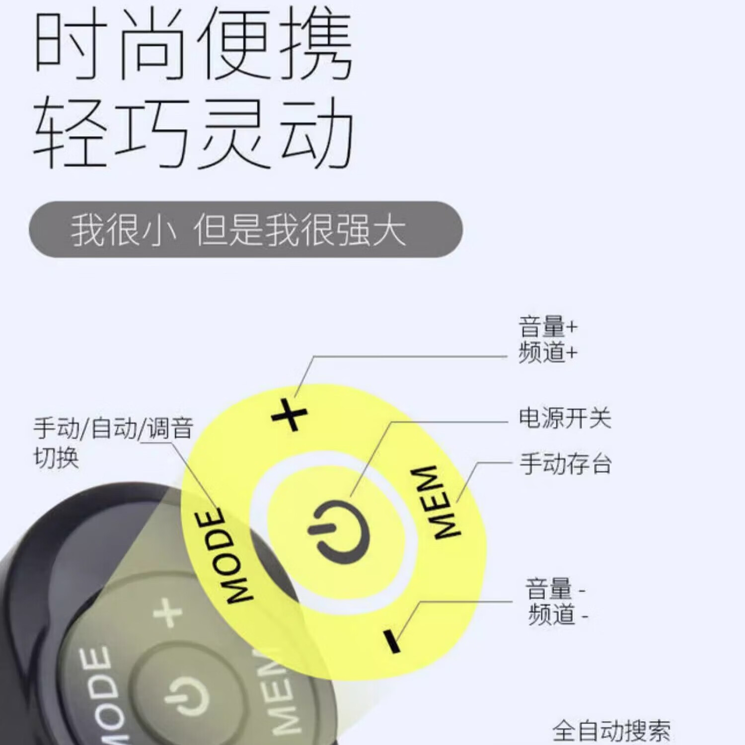 汉荣达727迷你数字调频接收机DSP芯片FM收音机会议培训接收器无外放支持耳机和外接音箱 黑色 无外放送耳机电池挂绳