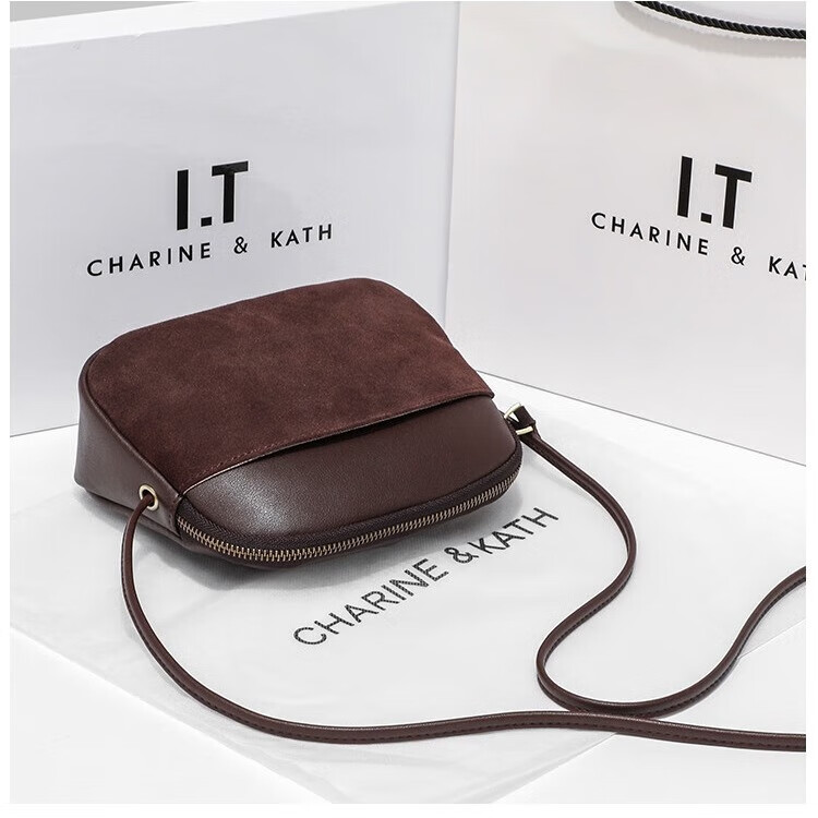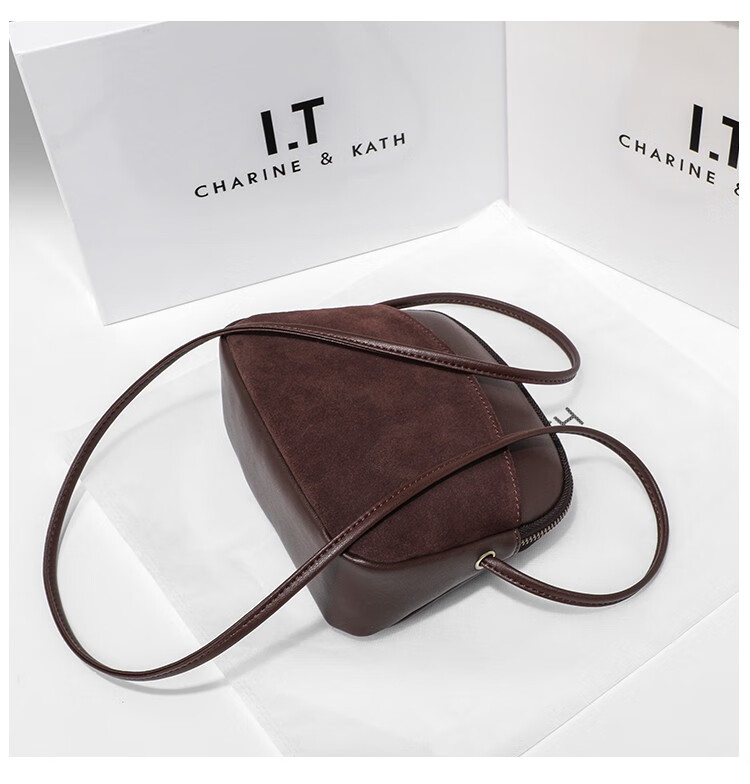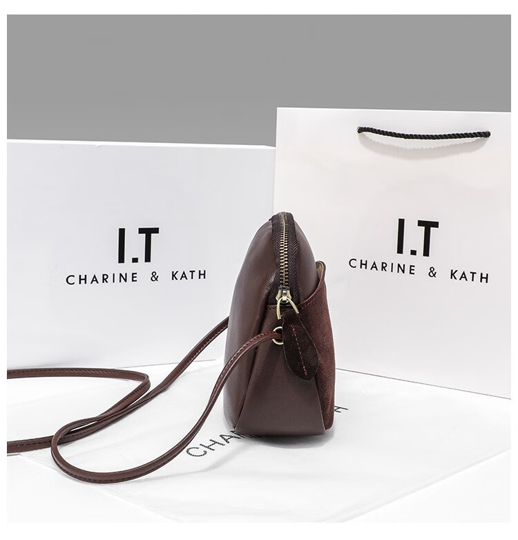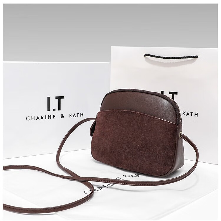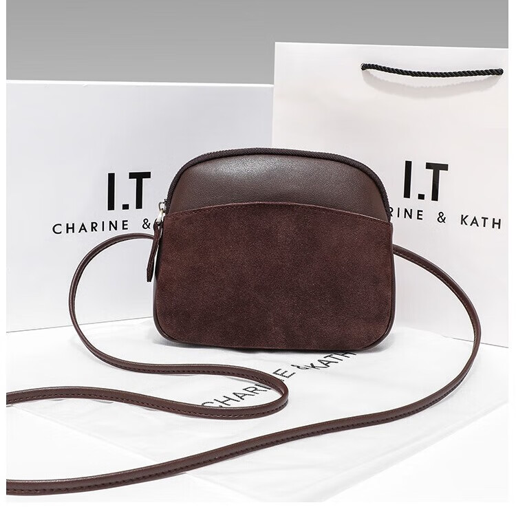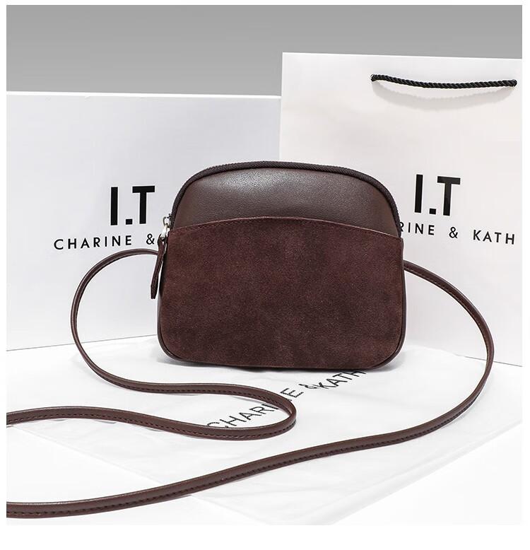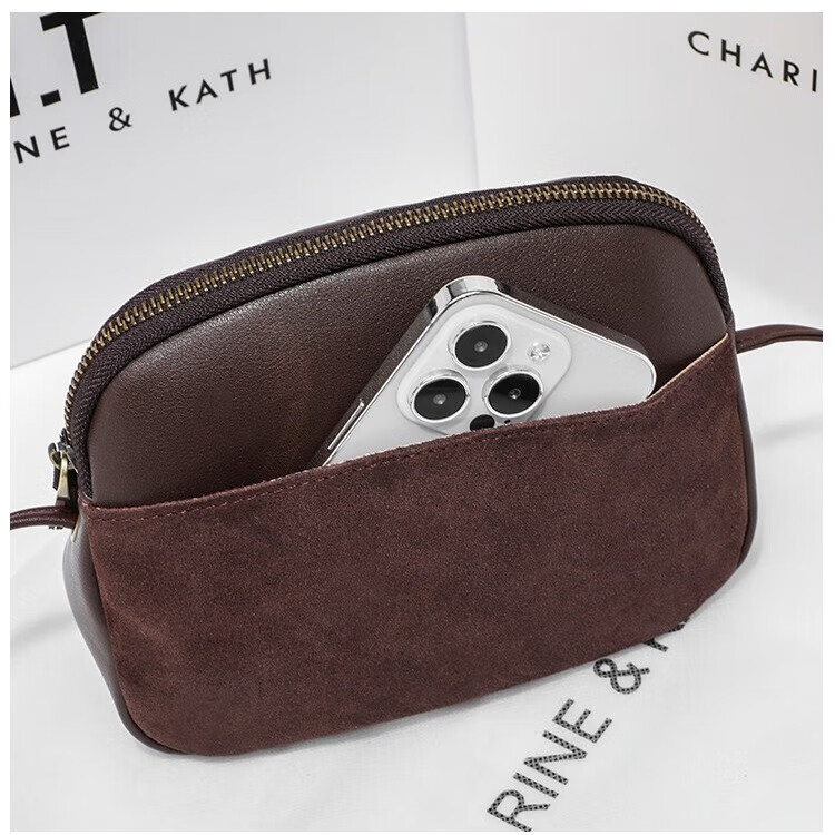 CHARINE&KATH今年流行美拉德小包包女2024新款休闲贝壳包复古单肩包斜挎手机包 咖啡色1026