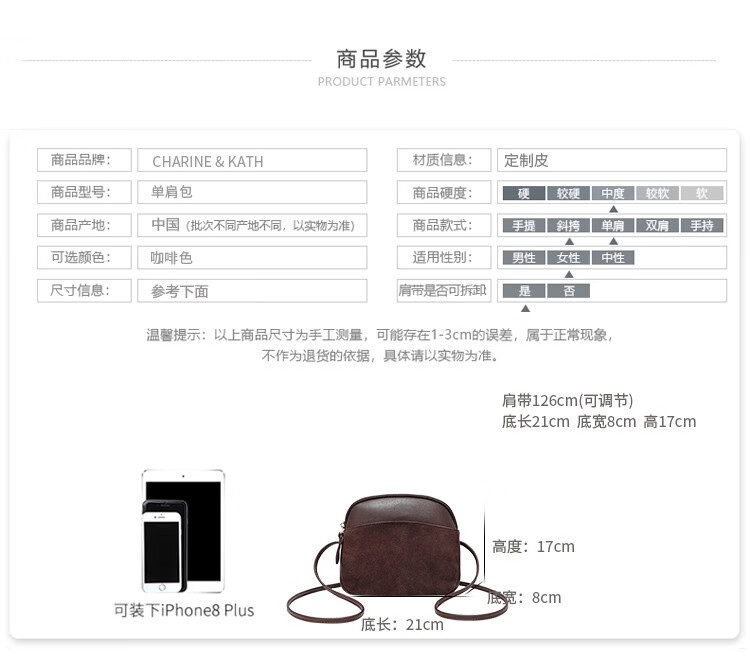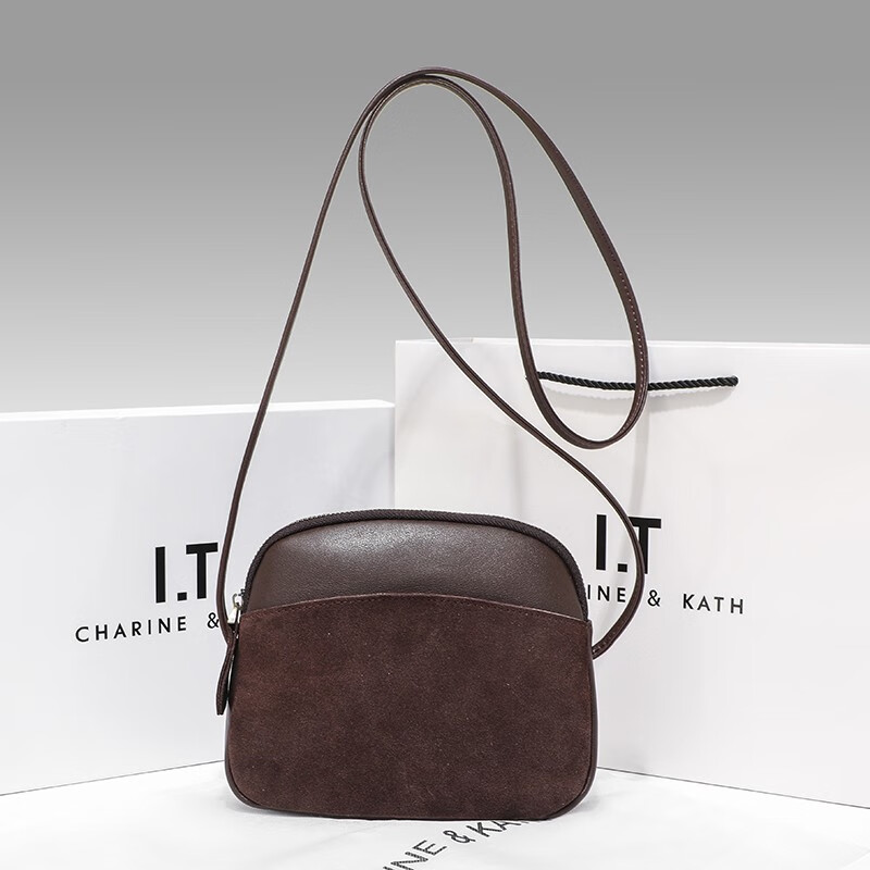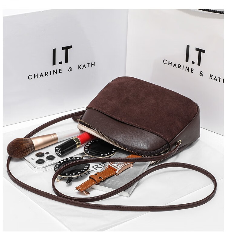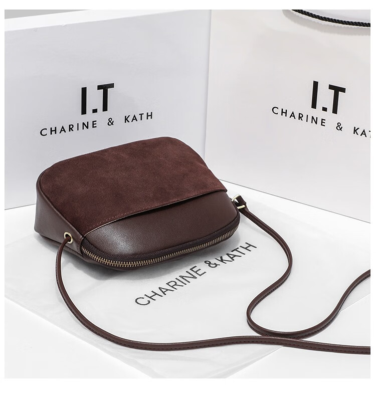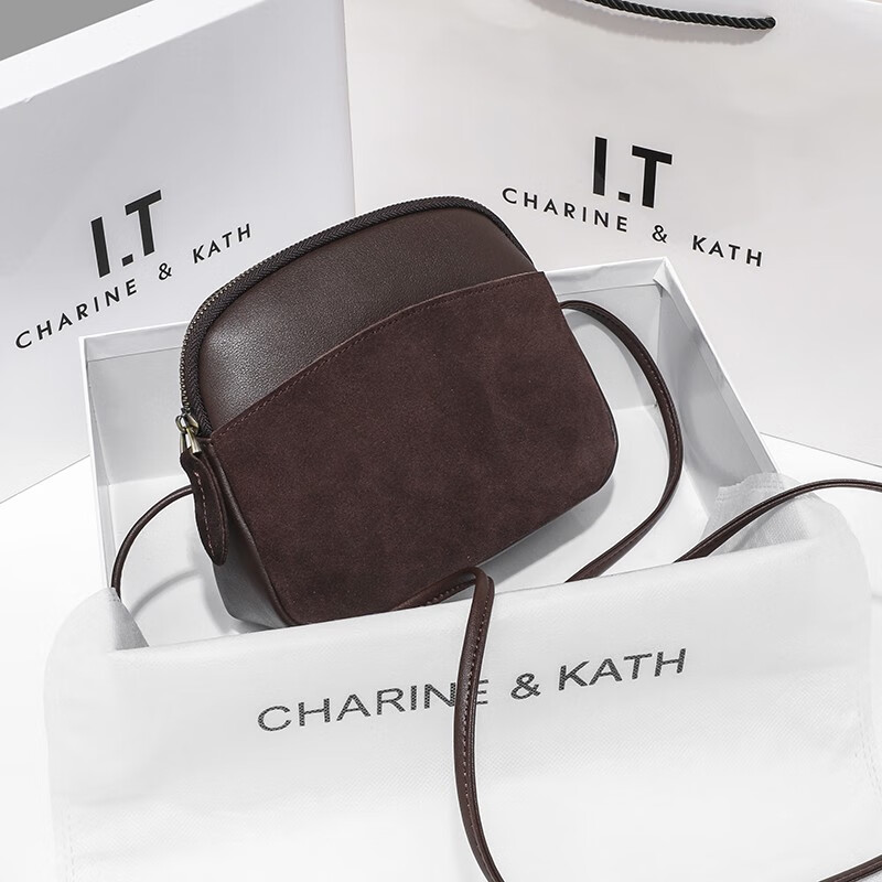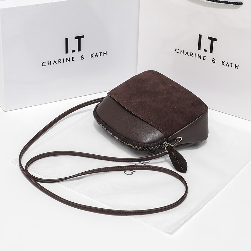 CHARINE&KATH今年流行美拉德小包包女2024新款休闲贝壳包复古单肩包斜挎手机包 咖啡色1026