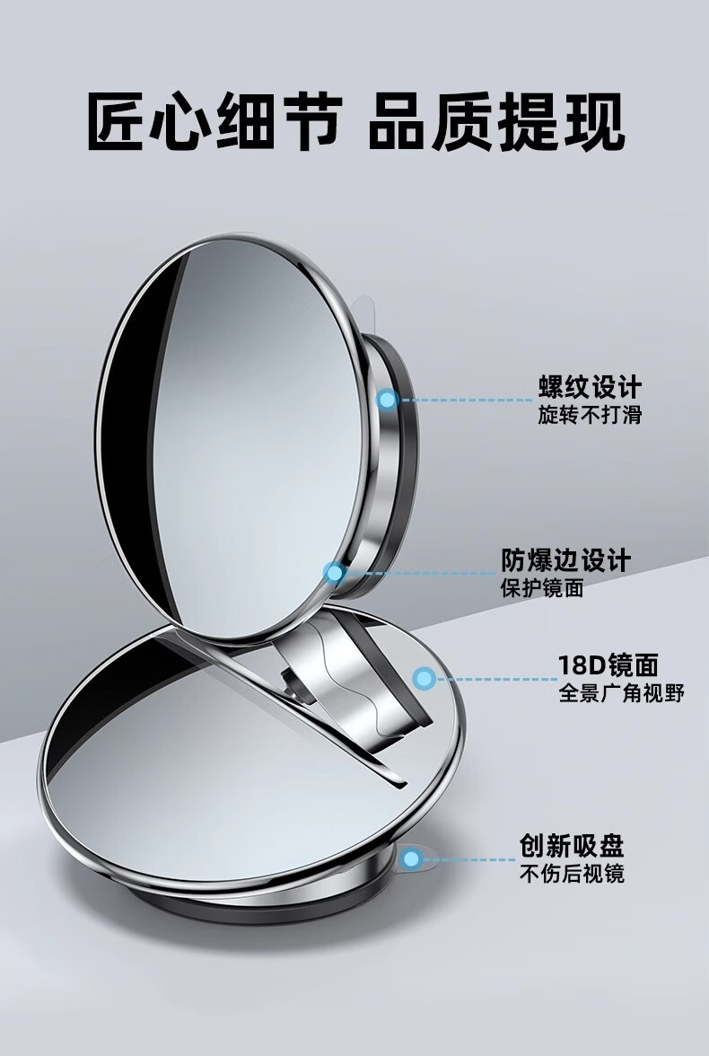 Tigalu car rearview mirror small round mirror blind spot reversing ultra-clear auxiliary suction cup mirror 360 degree reversing mirror small round mirror glass suction cup type does not damage the mirror - black