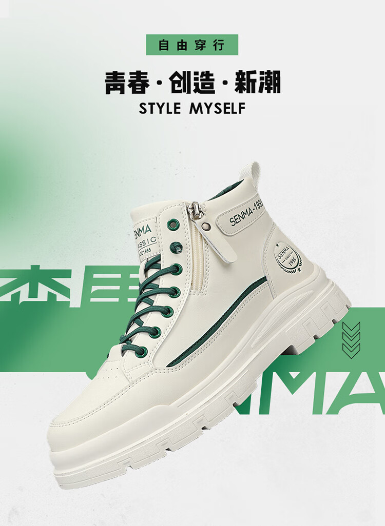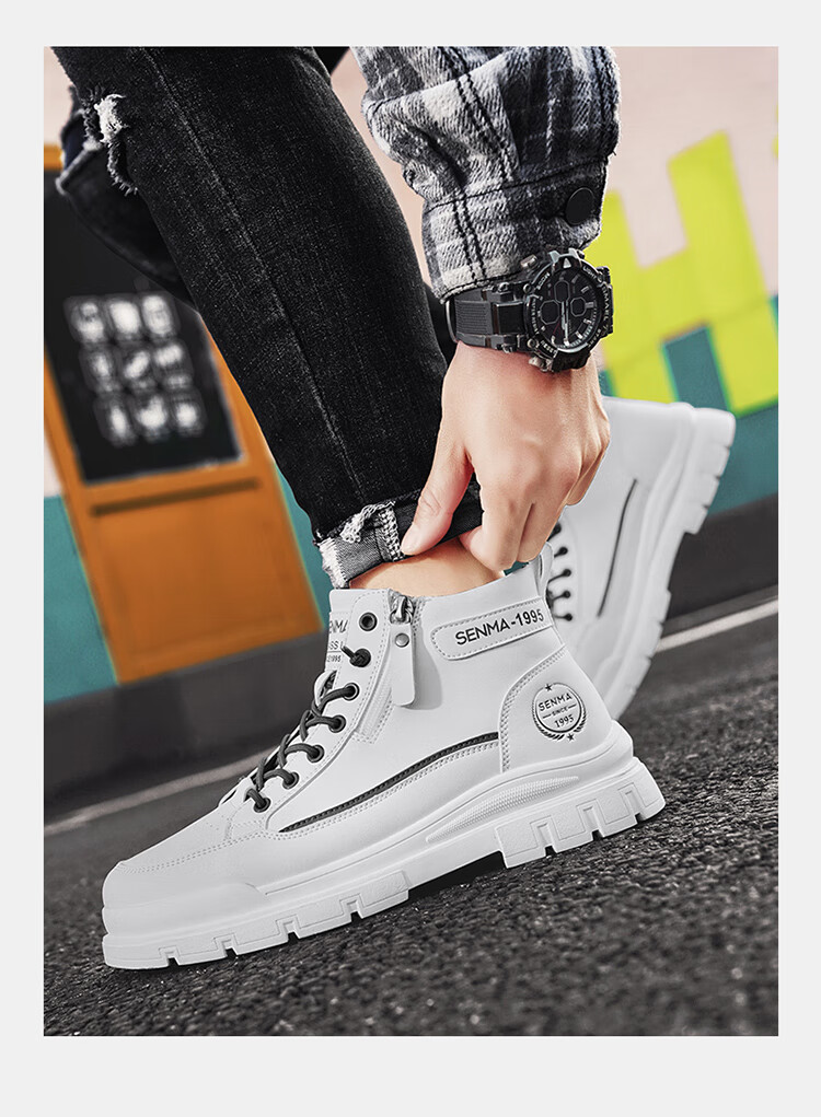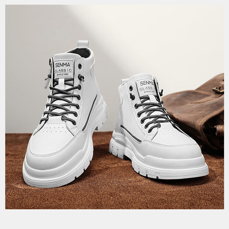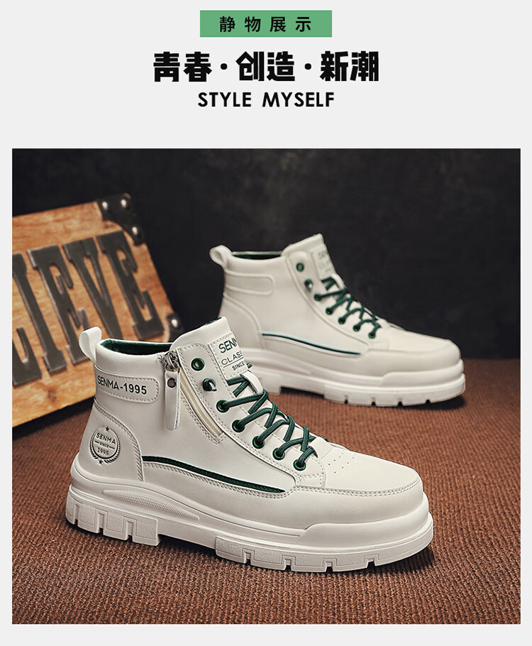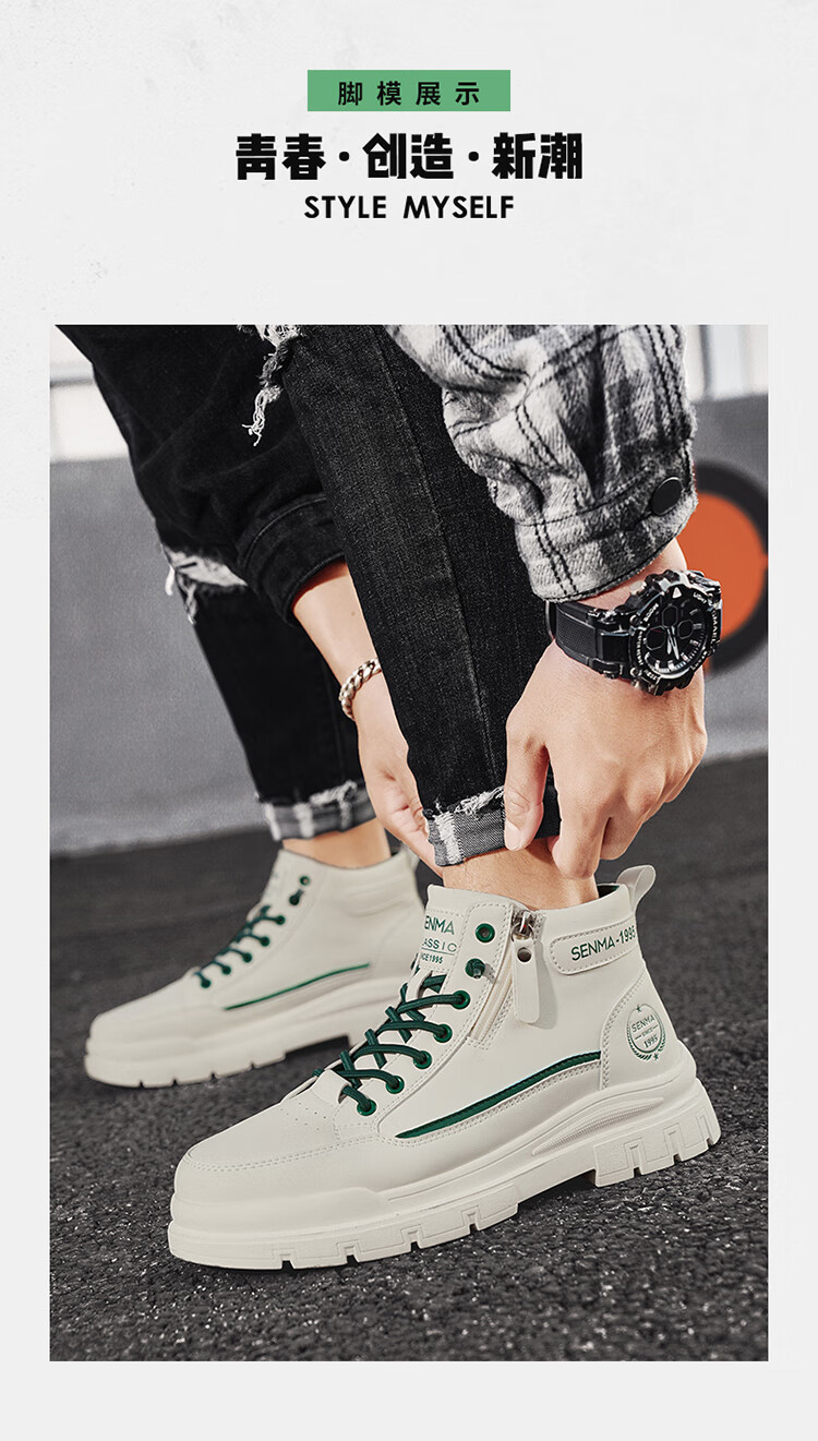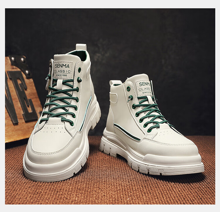 Semir Martin Stiefel Herren High-Top Herbst und Winter weiße Lederschuhe echtes Leder wasserdicht rutschfest dicke Sohle erhöht plus Samt Arbeitskleidung Baumwollstiefel weiß grün 43