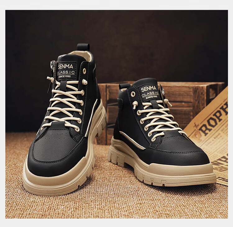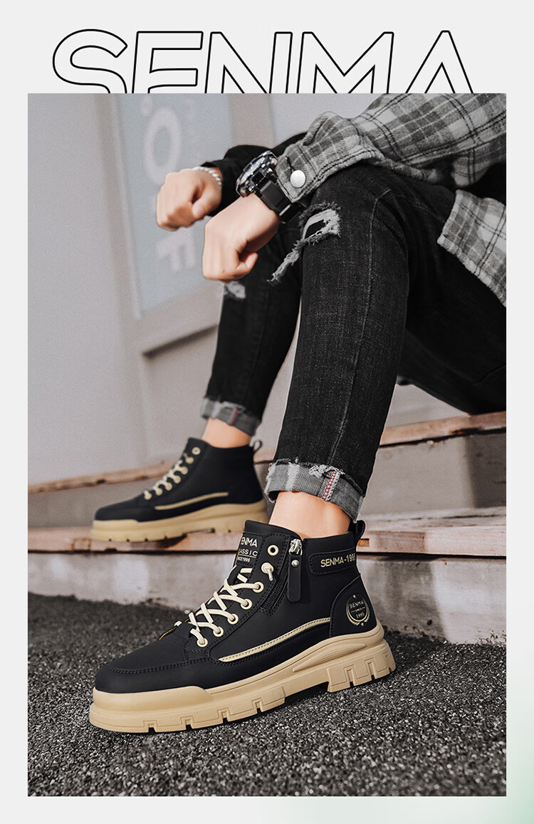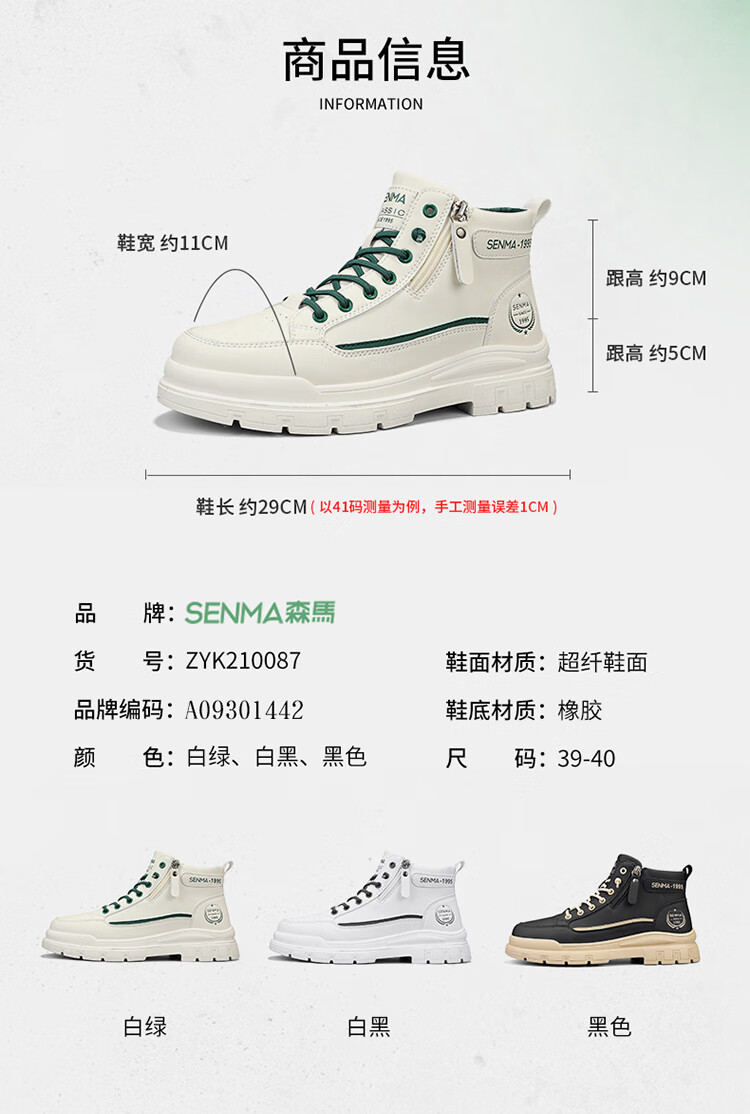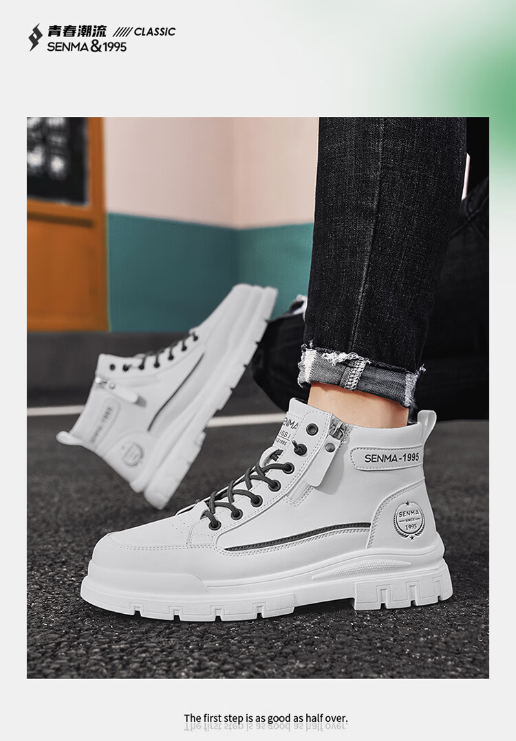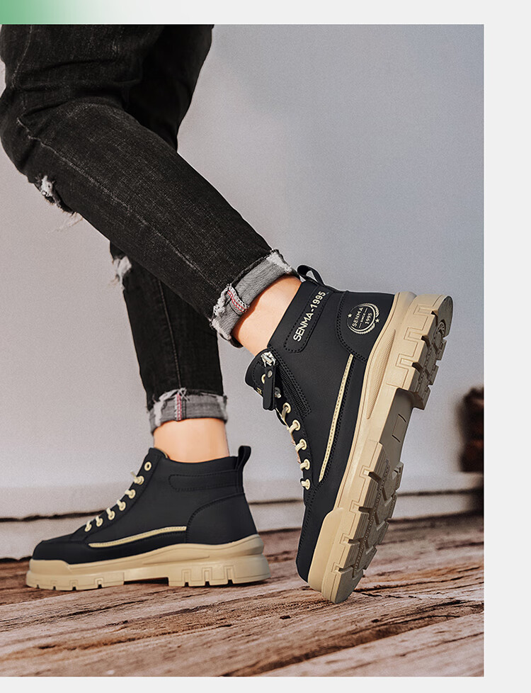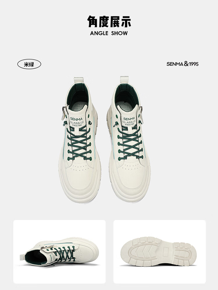Semir Martin Stiefel Herren High-Top Herbst und Winter weiße Lederschuhe echtes Leder wasserdicht rutschfest dicke Sohle erhöht plus Samt Arbeitskleidung Baumwollstiefel weiß grün 43