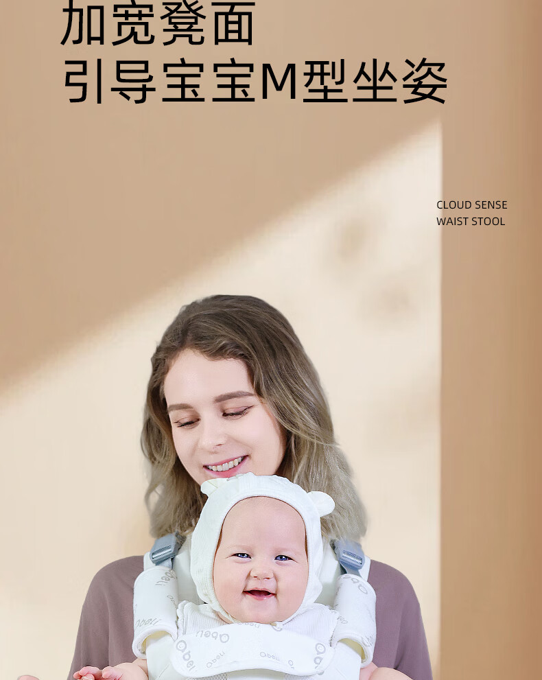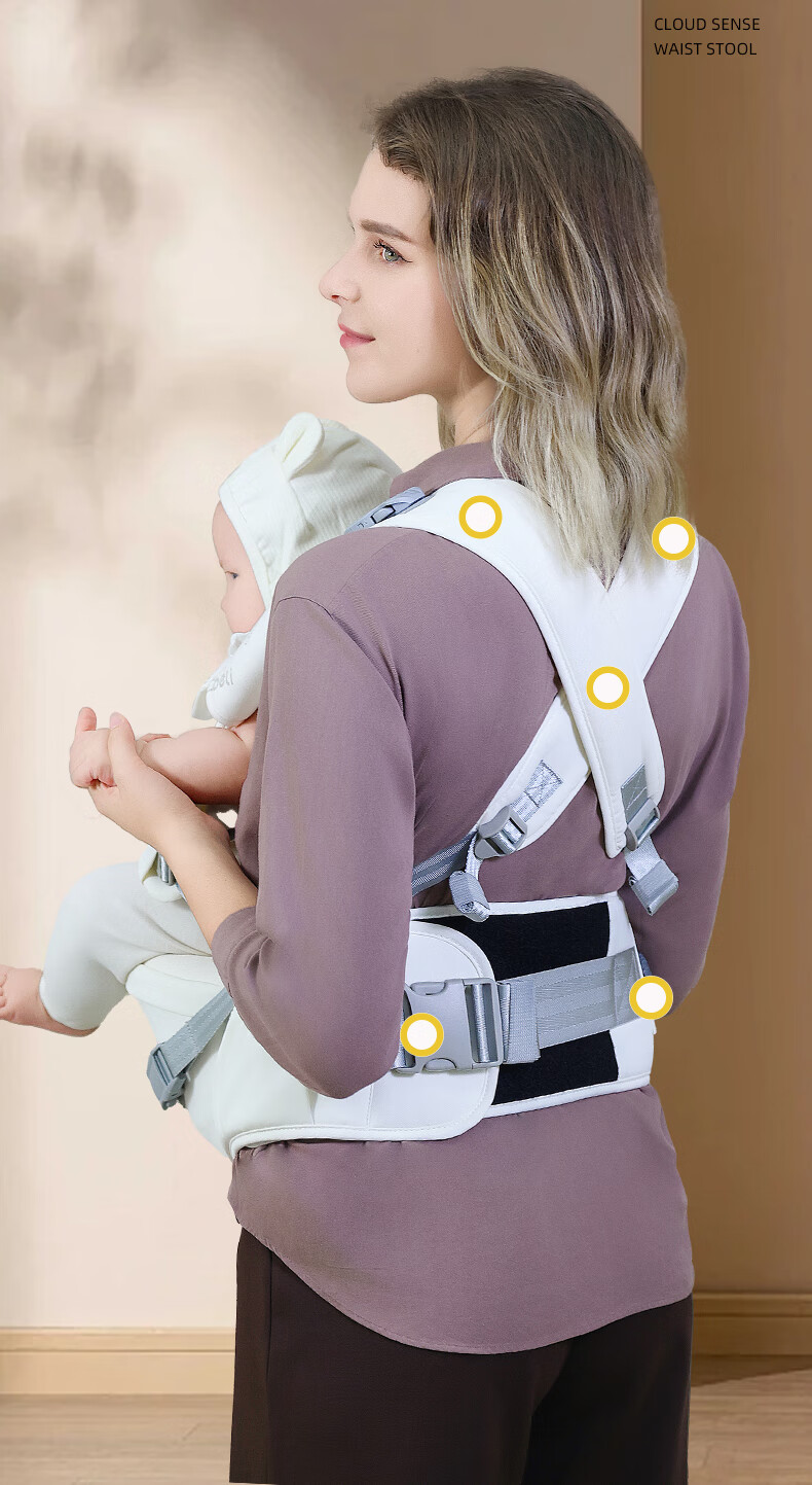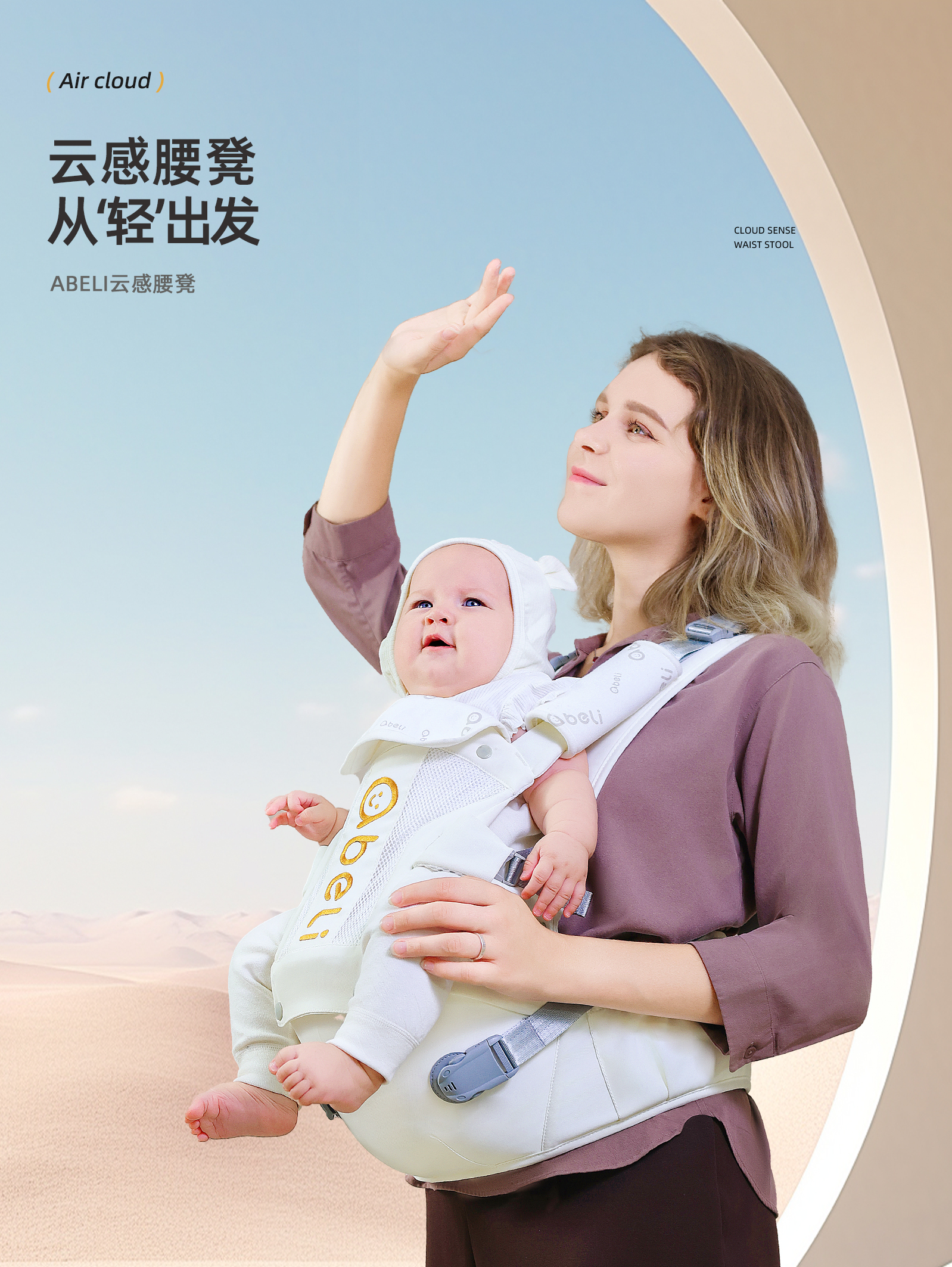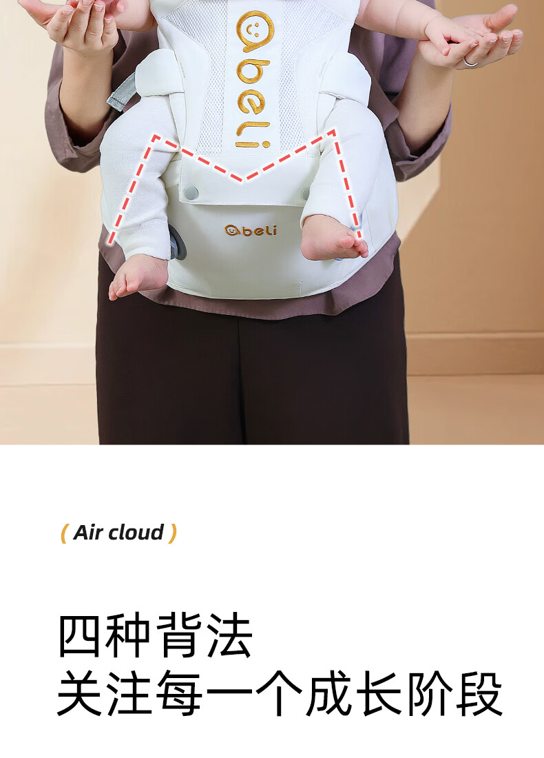 ABELI云感腰凳婴儿前抱式抱娃神器解放双手宝宝背带多功能透气四季通用 【礼盒款】白金色/送口水巾