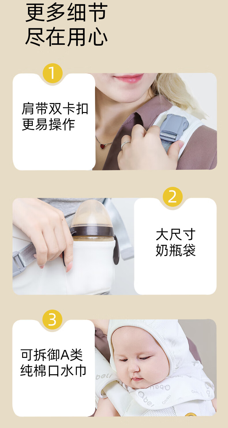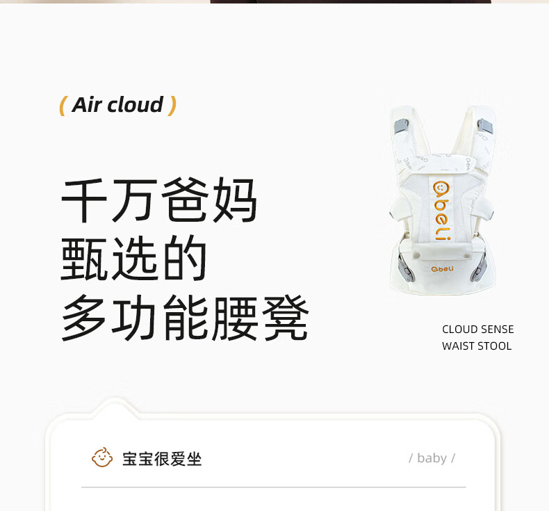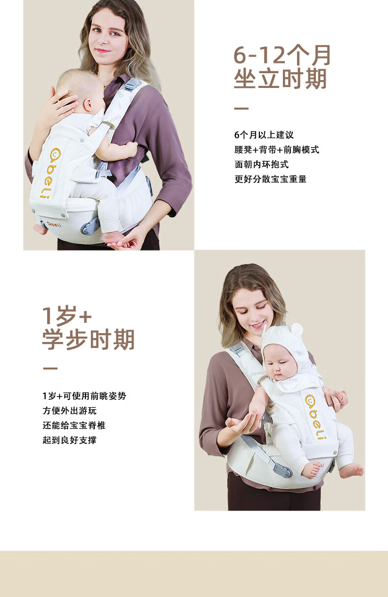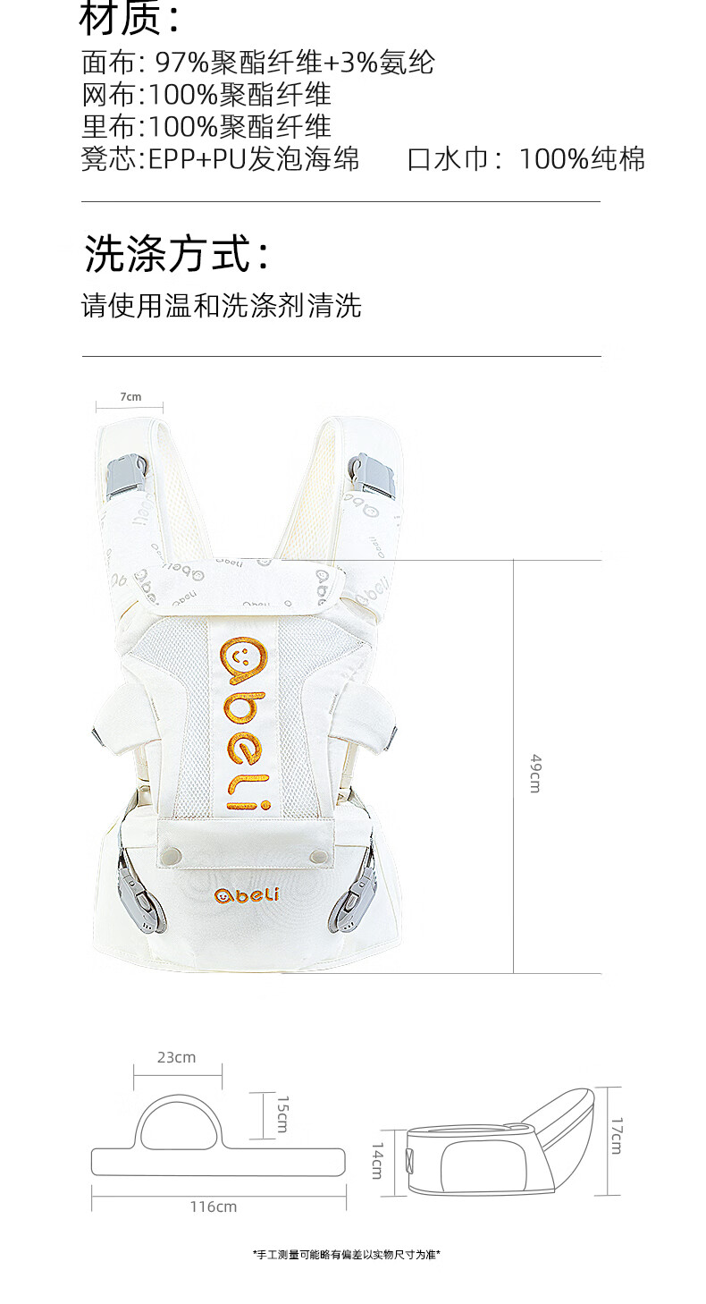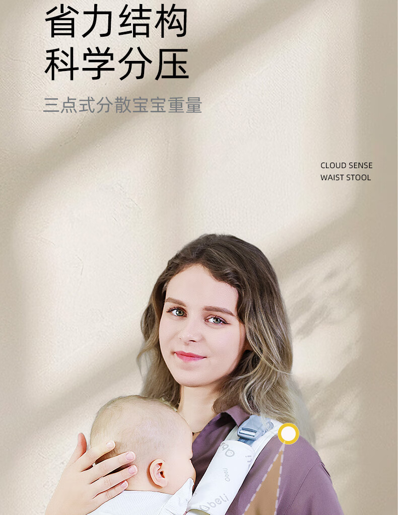 ABELI云感腰凳婴儿前抱式抱娃神器解放双手宝宝背带多功能透气四季通用 【礼盒款】白金色/送口水巾