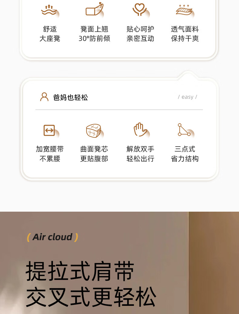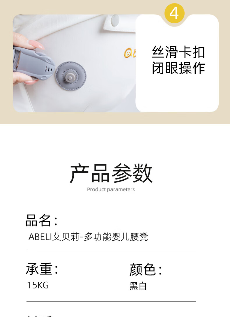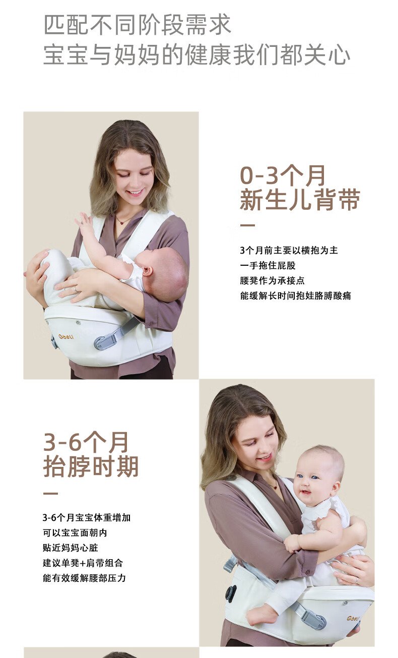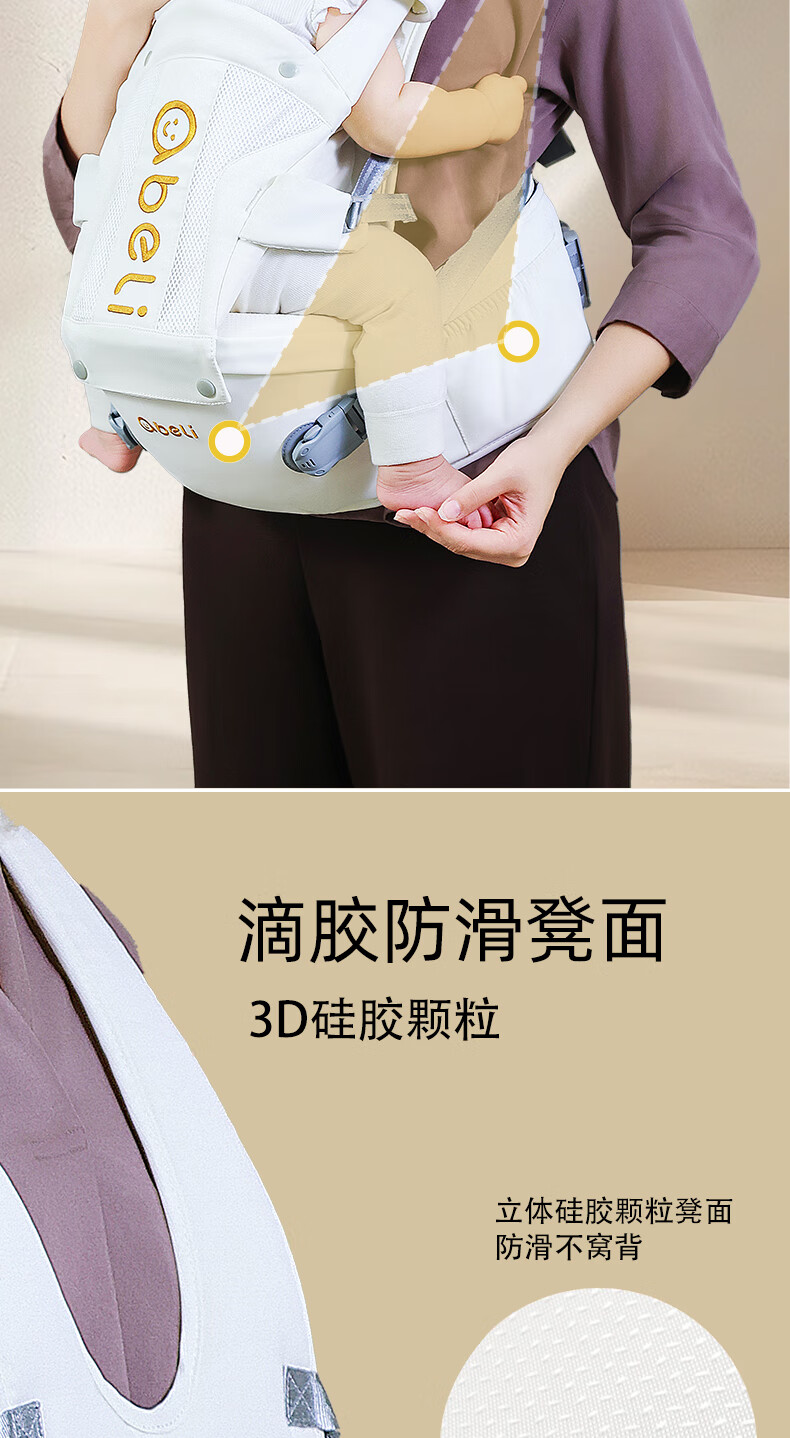 ABELI云感腰凳婴儿前抱式抱娃神器解放双手宝宝背带多功能透气四季通用 【礼盒款】白金色/送口水巾