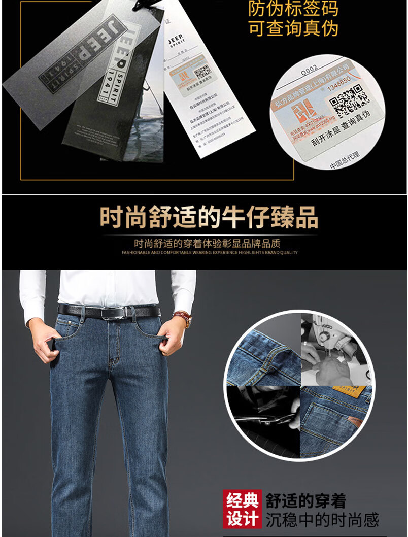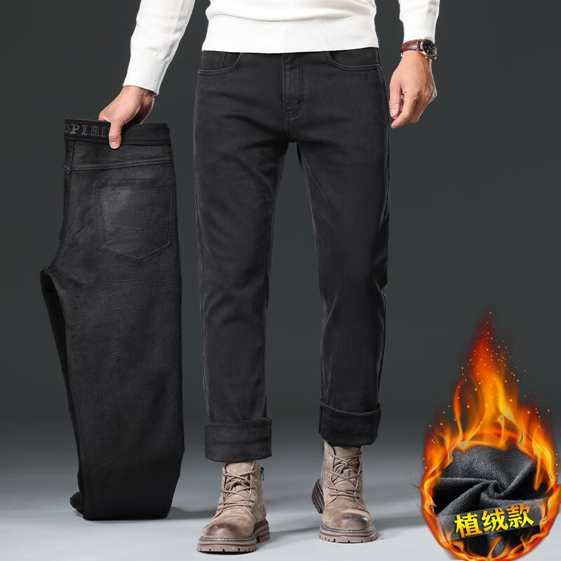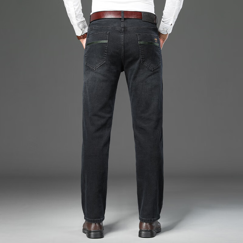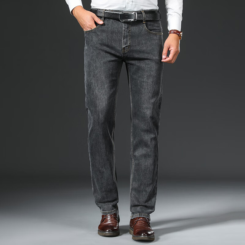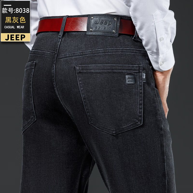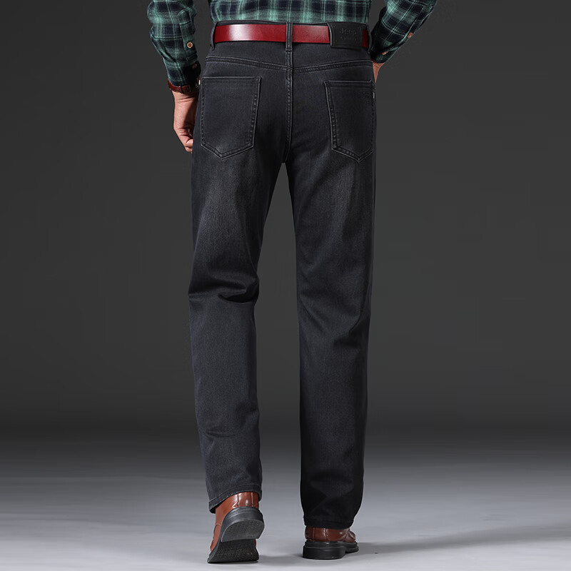 JEEP SPIRIT Jeep jeans de alta gama para hombre, pantalones de otoño e invierno para hombre, pantalones casuales de negocios de talla grande, sueltos, rectos, más terciopelo azul gris-679 talla 32 cintura 2.5 pies