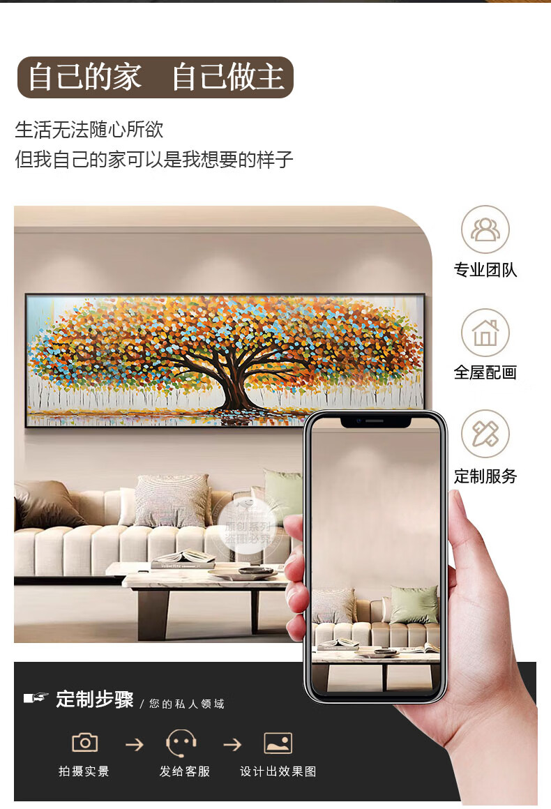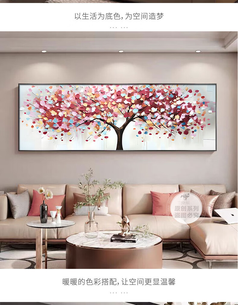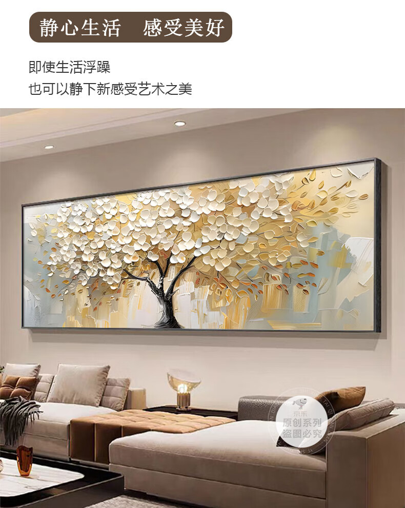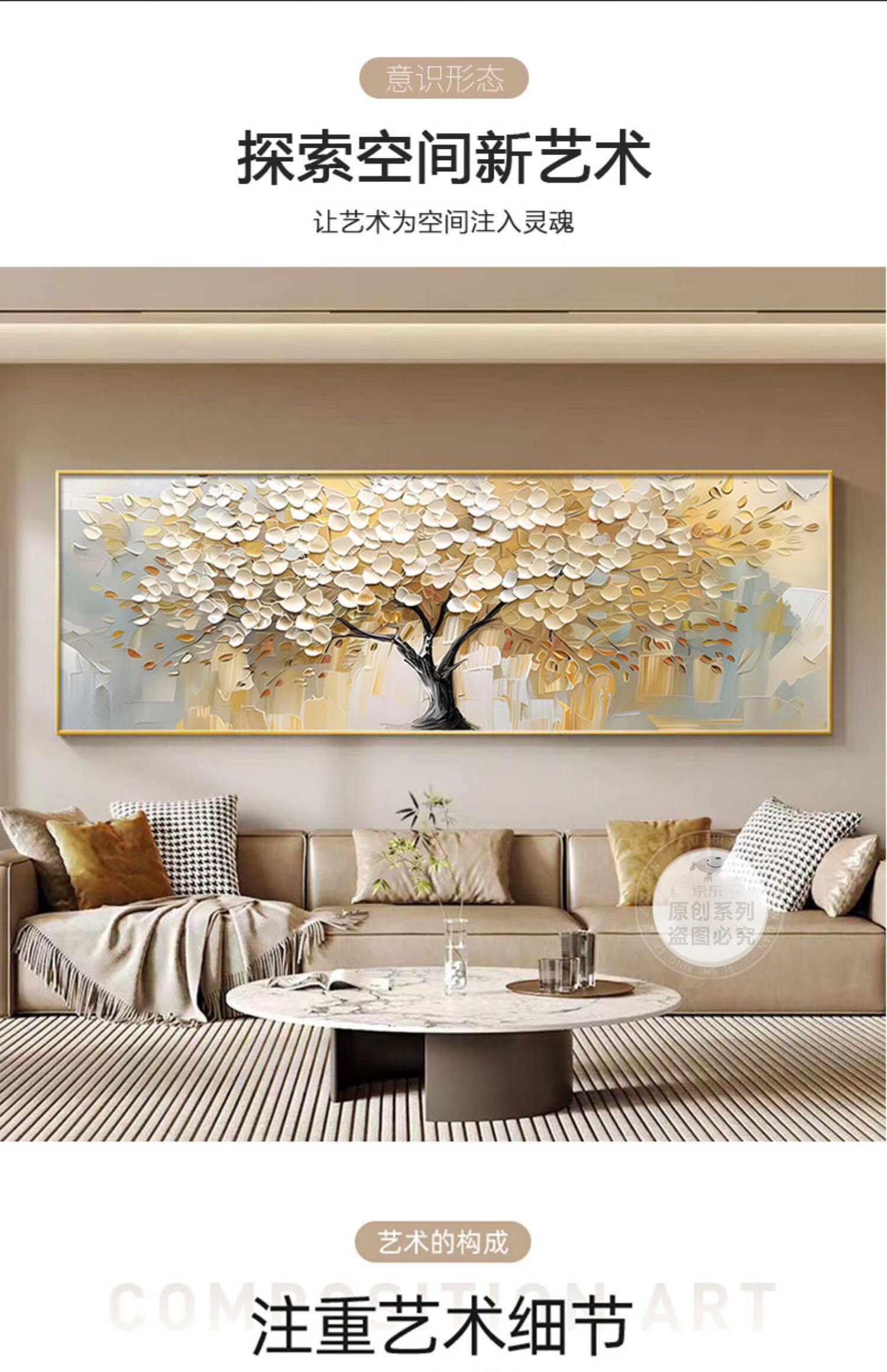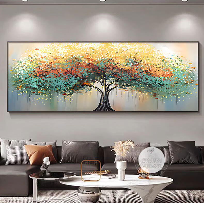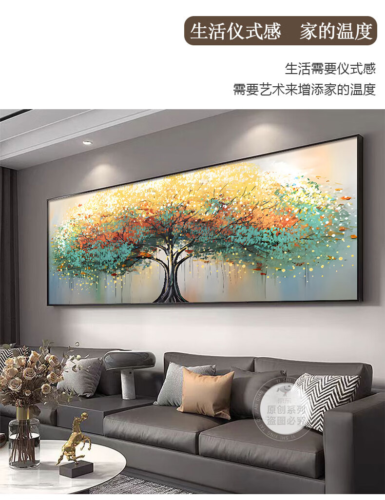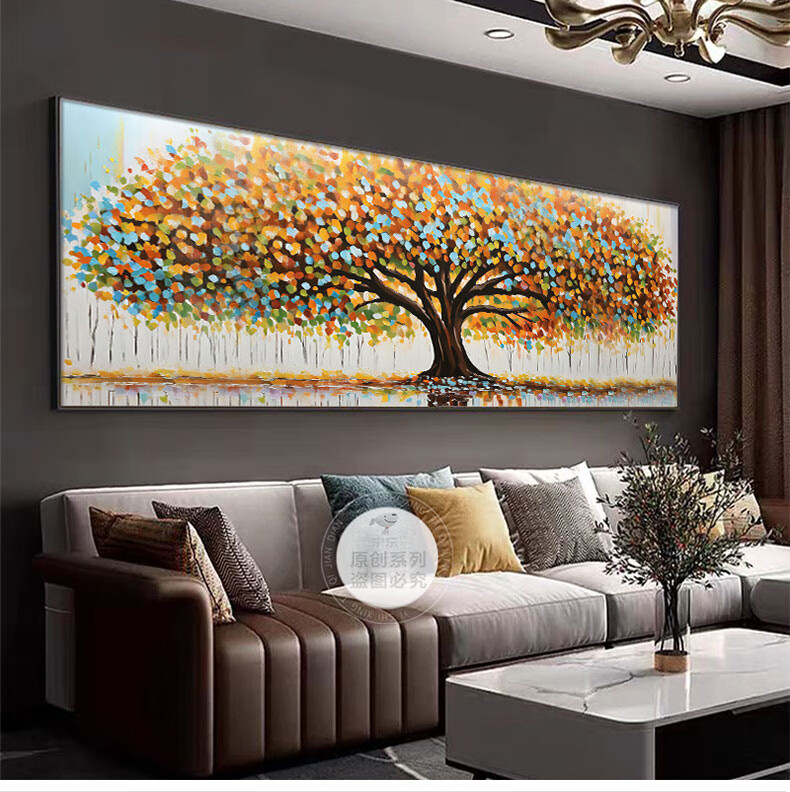 Shunji Xiangli Fortune Tree sofa background wall hanging painting light luxury high-end living room decoration painting 2025 new banner abstract mural E1118 150*50 (suitable for sofa about 1.6-2 meters) textured canvas ps black frame