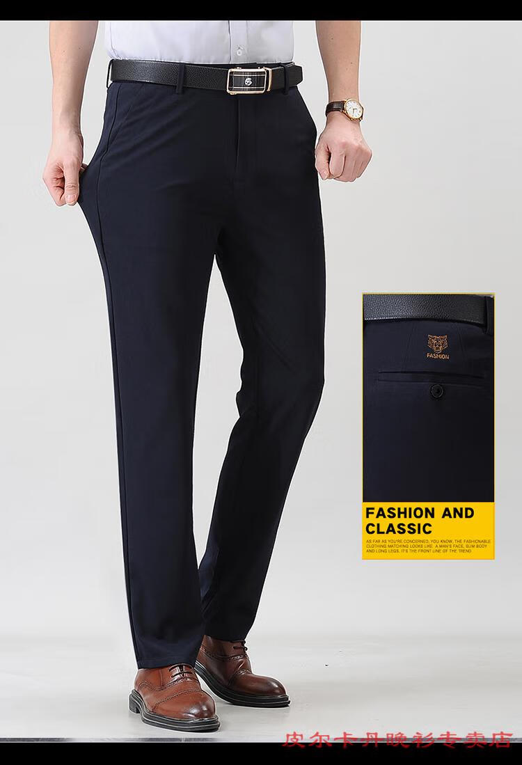 Pierre Cardin high-end casual pants men's spring and autumn new business loose straight elastic non-iron trousers dad's long trousers 9853-1 navy blue spring and autumn thick section 29 2 feet 2 waist