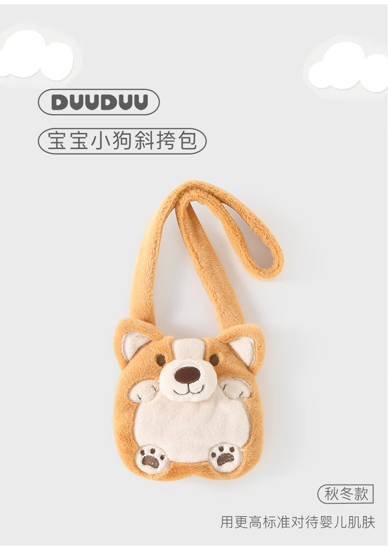 DUUDUU婴儿毛绒单肩包包新生儿卡通斜跨包宝宝可爱外出零钱包新款 小狗 BB9708/黄色/均码