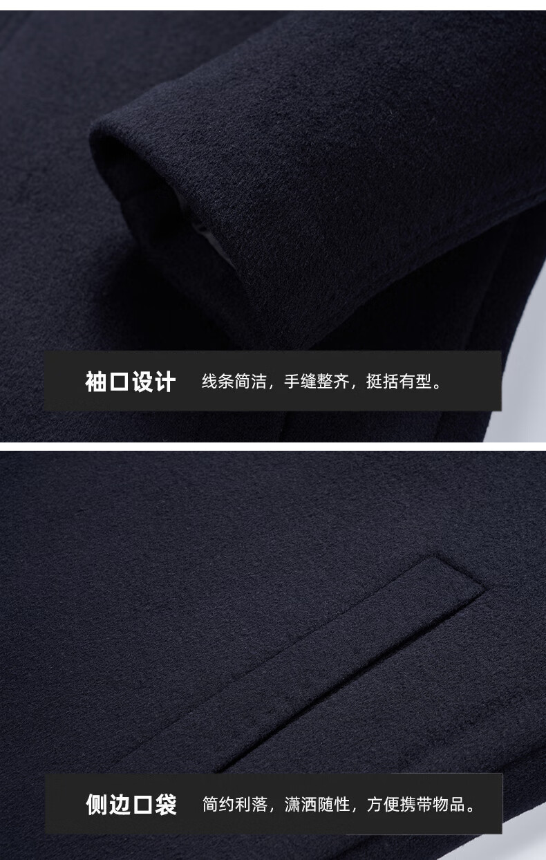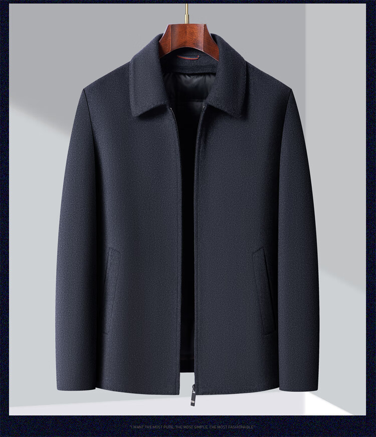 恒源祥高端羊绒夹克男秋冬季商务翻领羊毛大衣短款休闲毛呢外套男 黑色 XXS 175码建议125-135斤
