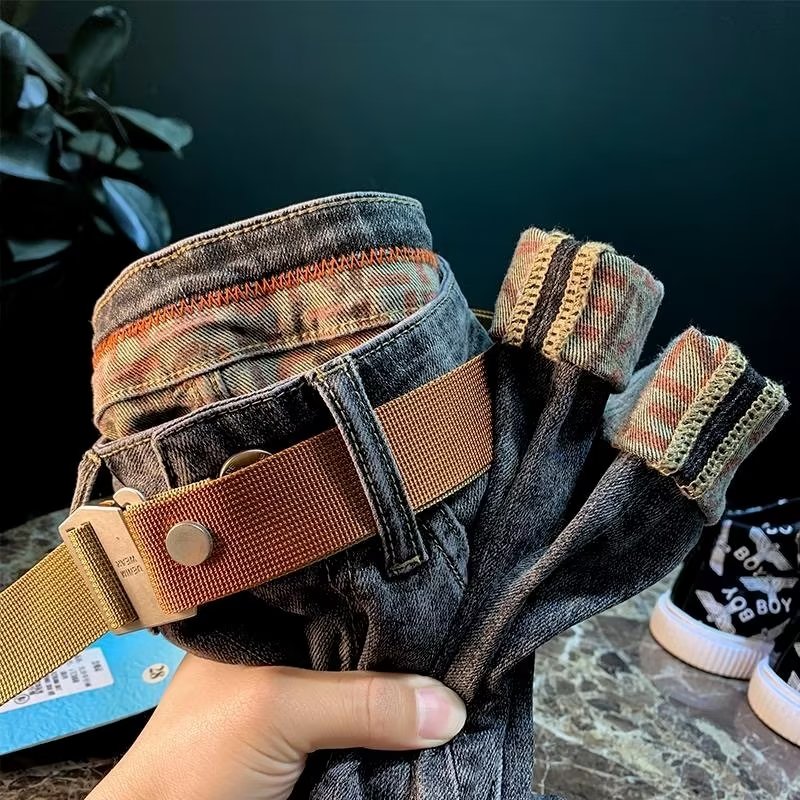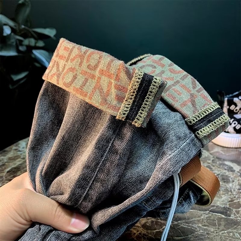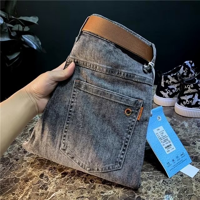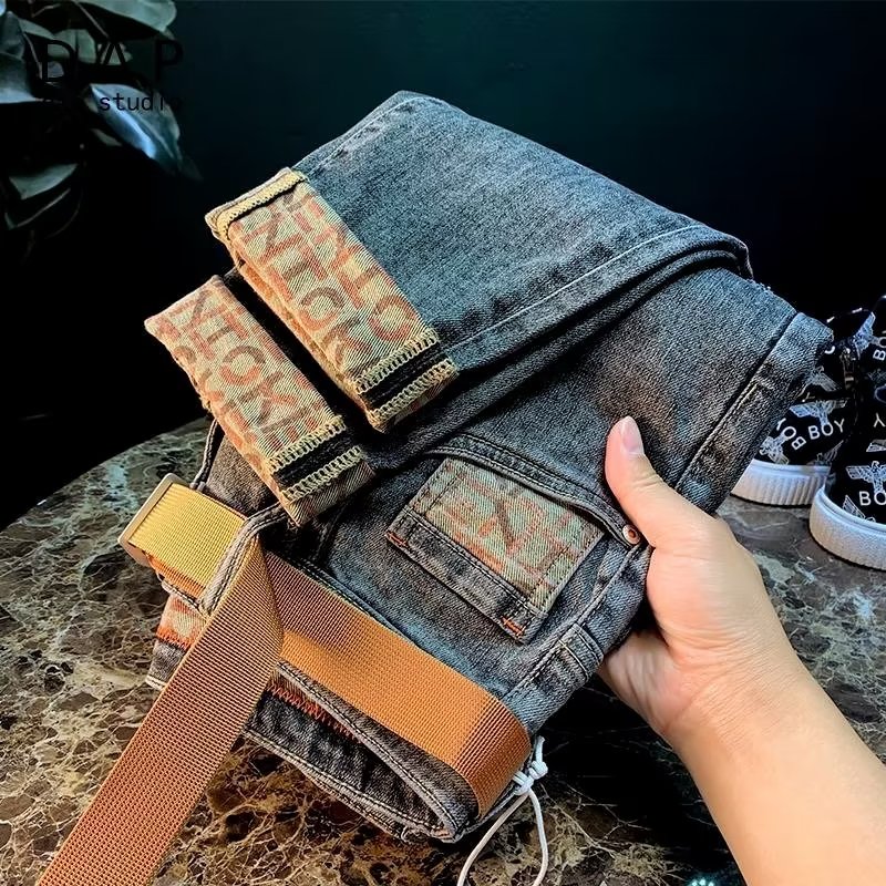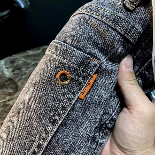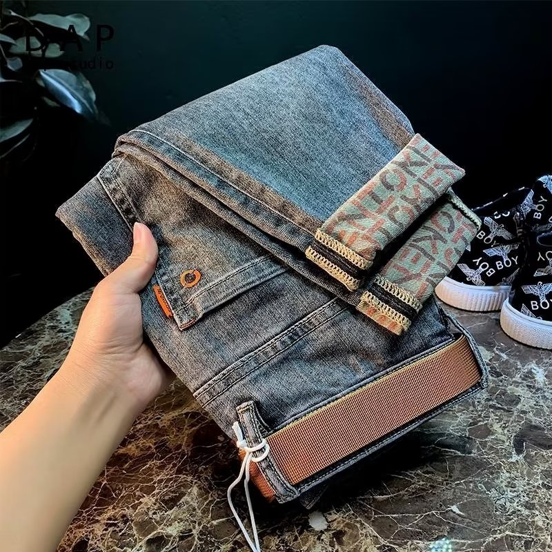潮牌烟灰色印花牛仔裤男修身九分2024春秋冬新款锥形哈伦小脚裤子 灰色-千里行-021 34