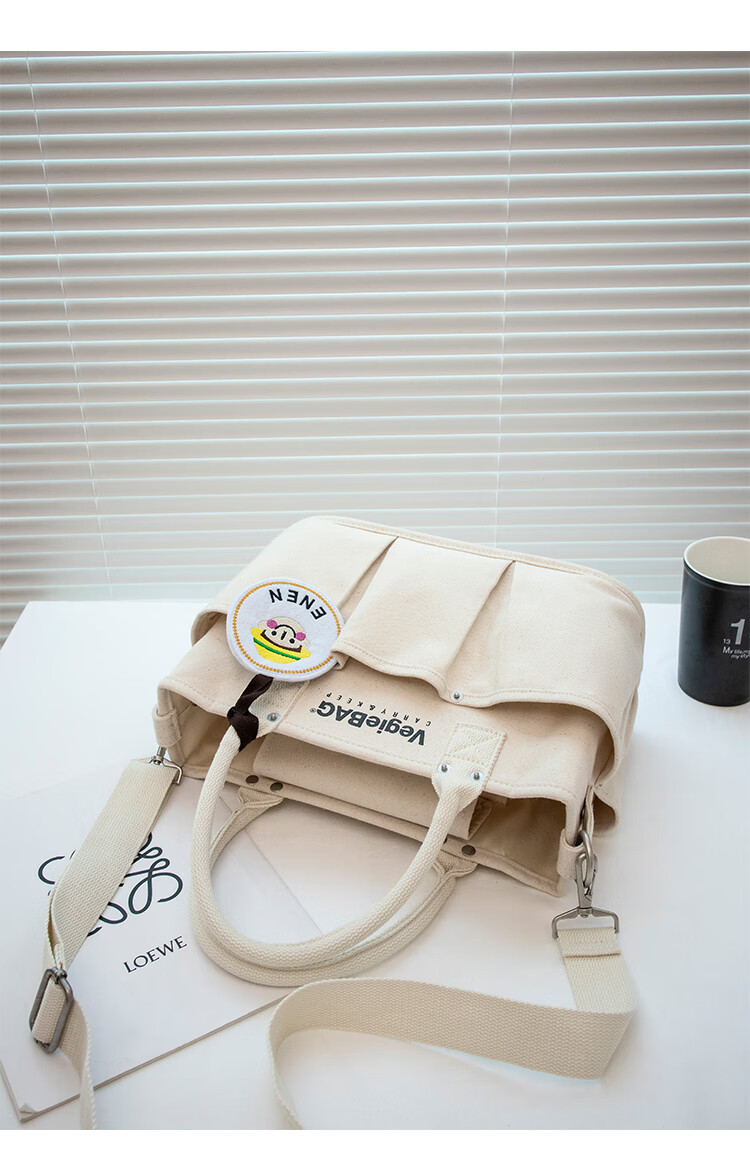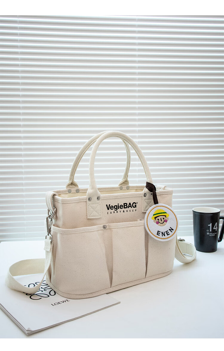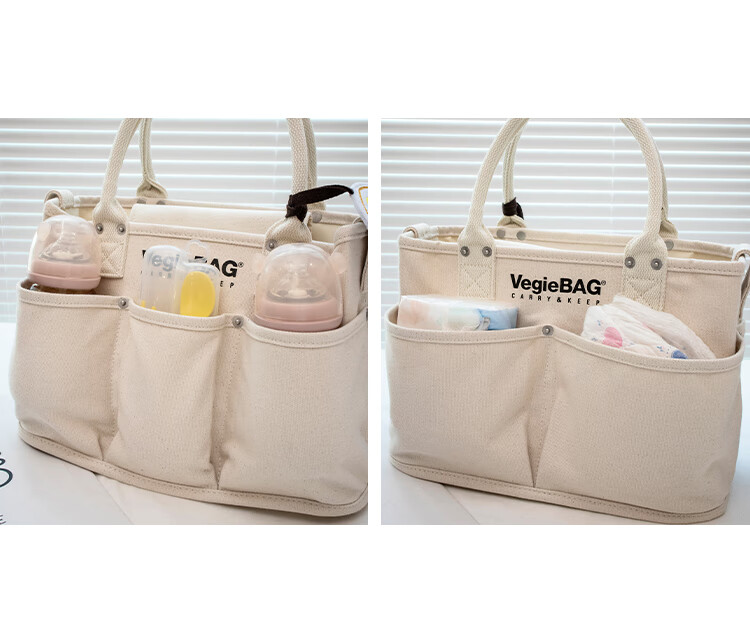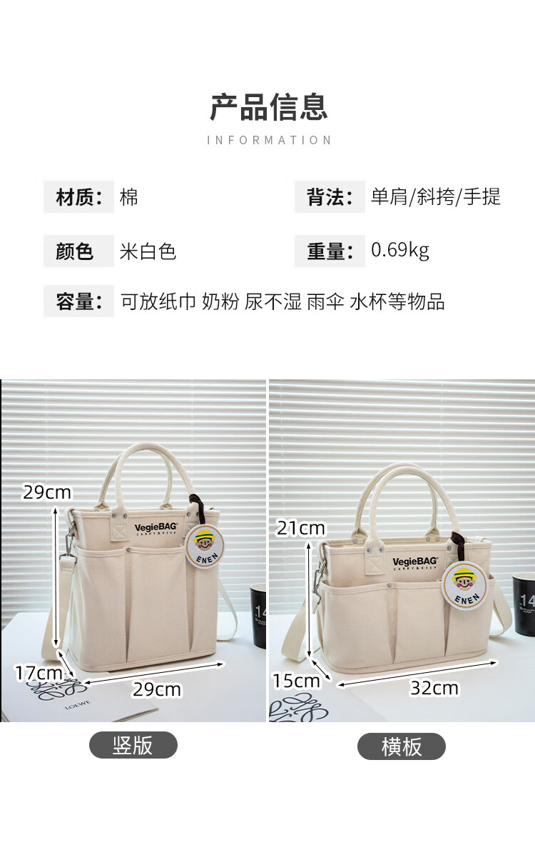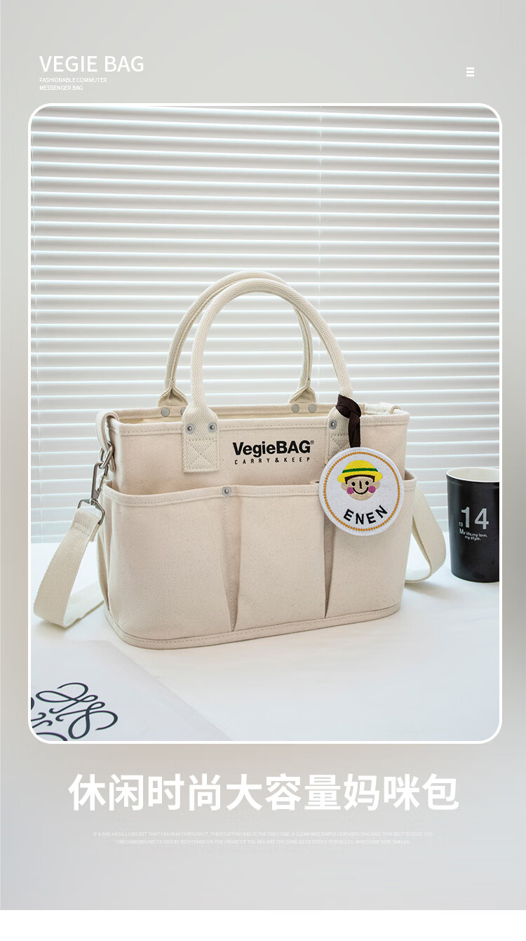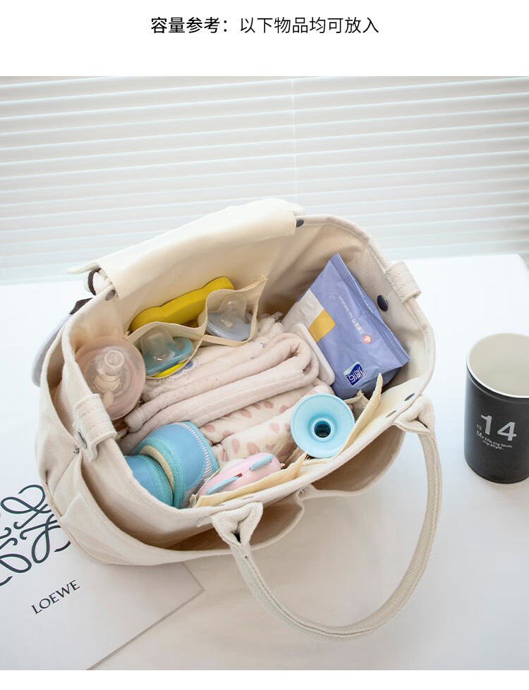 Hug Bear Fat, Donglai quality mommy bag, small bag for going out, Japanese vegiebag, portable multi-functional mother and baby lightweight crossbody, horizontal style, medium size, off-white