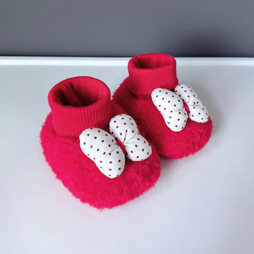 米嘟尔婴儿秋冬季6-12个月加厚加绒保暖0-1岁新生儿红色新年步前棉鞋袜 米-红点结(红色-婴儿绒袜口鞋) 12.5 M 内长12.5CM建议7-15个月