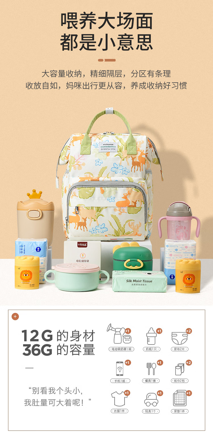 Yi Jian Mommy Bag Mochila de gran capacidad para madres que llevan al bebé para caminar Bolsa multifuncional ligera para madres Bolsa de maternidad El mago de Oz 38x26x16