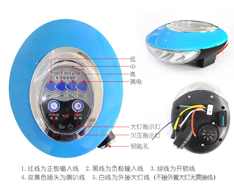 塔克尔电动车仪表总成灯通用带电量显示喇叭48V电瓶车前车灯超亮led大灯 6189-48V绿色