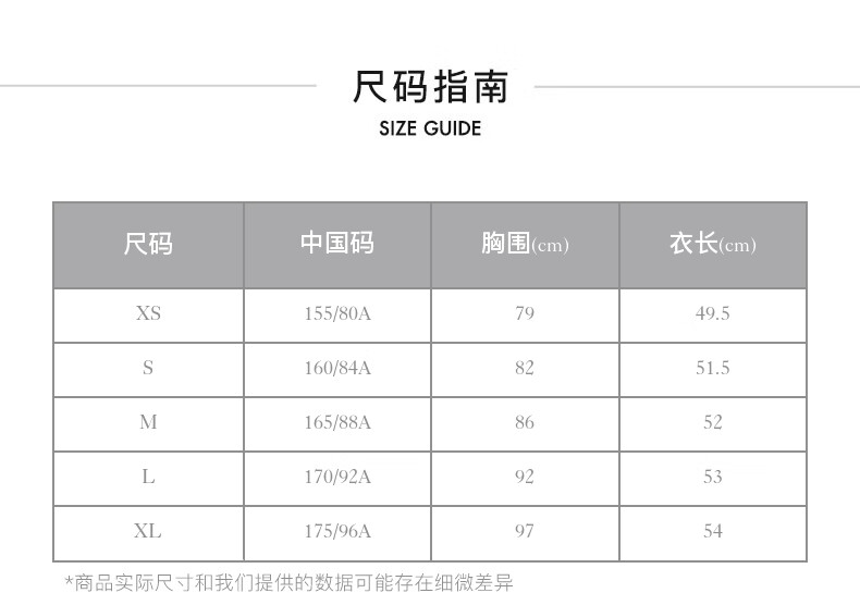 China (cm) 160-165/84-86 165-170 / 88-90 167-172 / 92-96 168-173 / 98-102 170-176 / 106-110