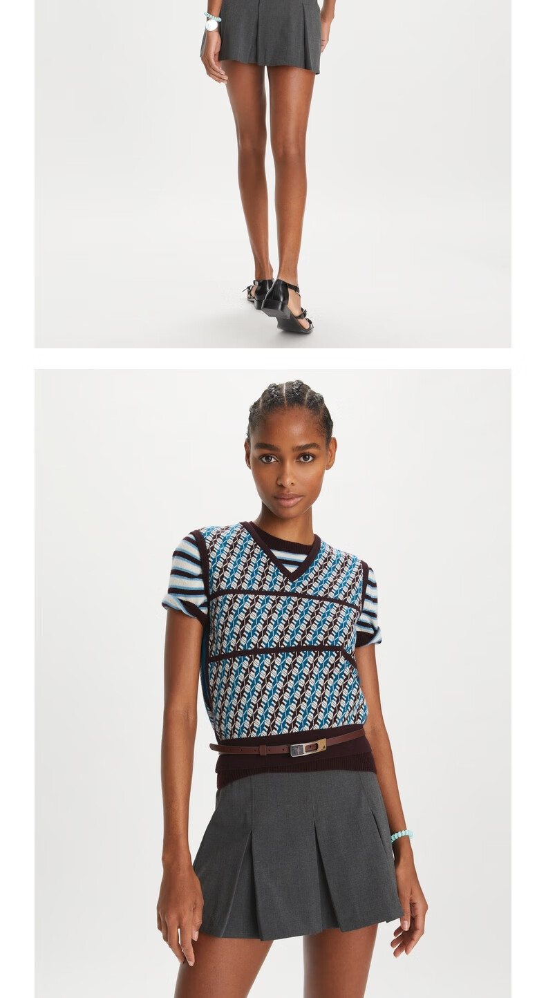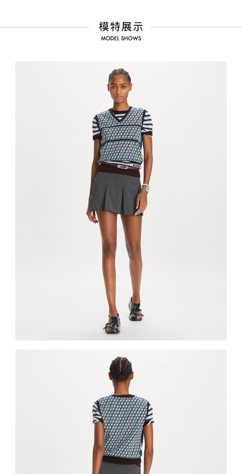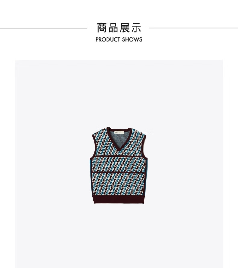 Tory Burch  汤丽柏琦【限时礼遇】 撞色罗纹提花V领针织背心TB 166506 水蓝色底纹 967 S 160/84A