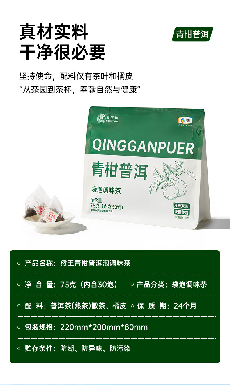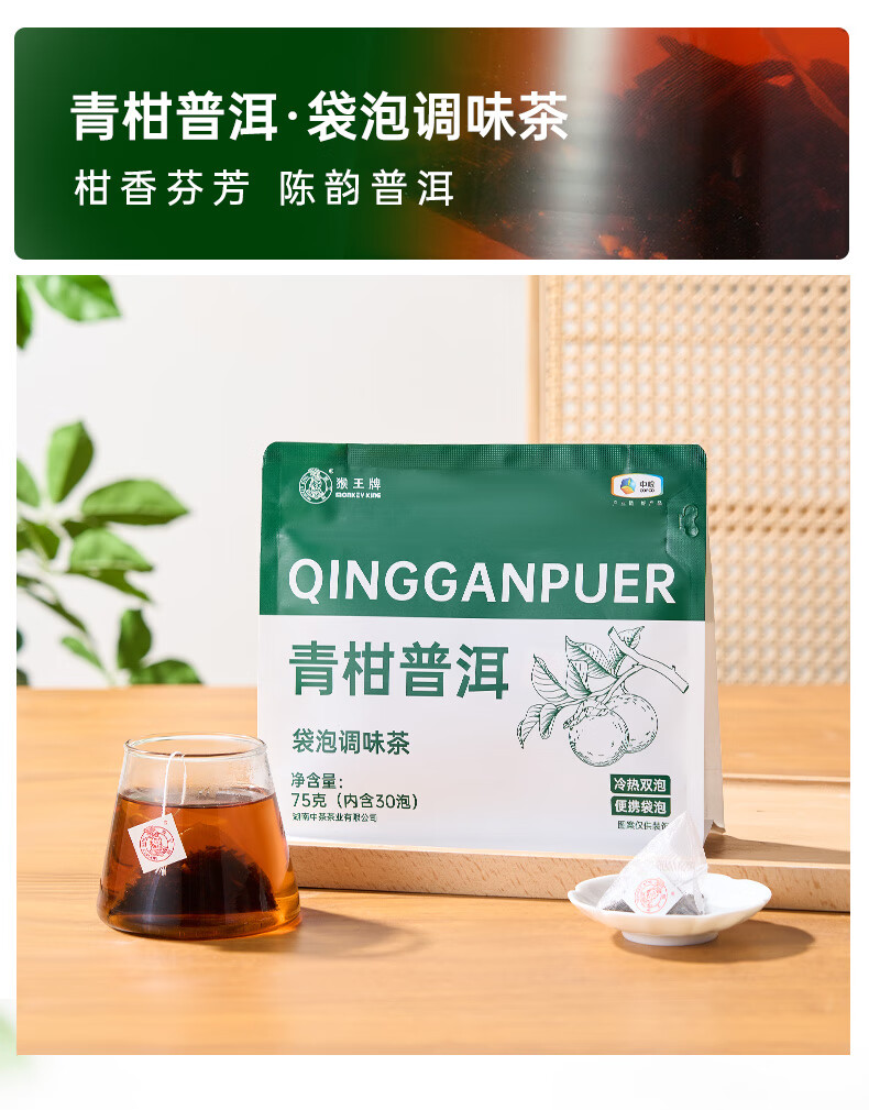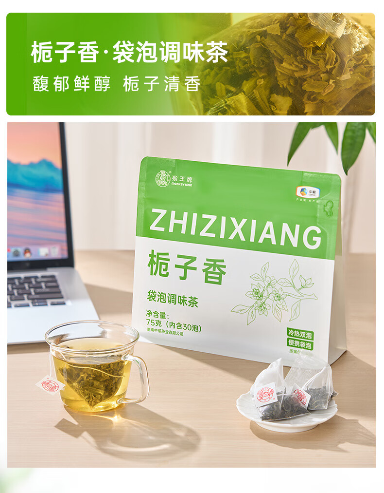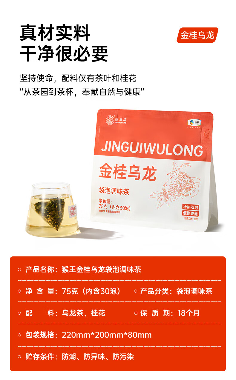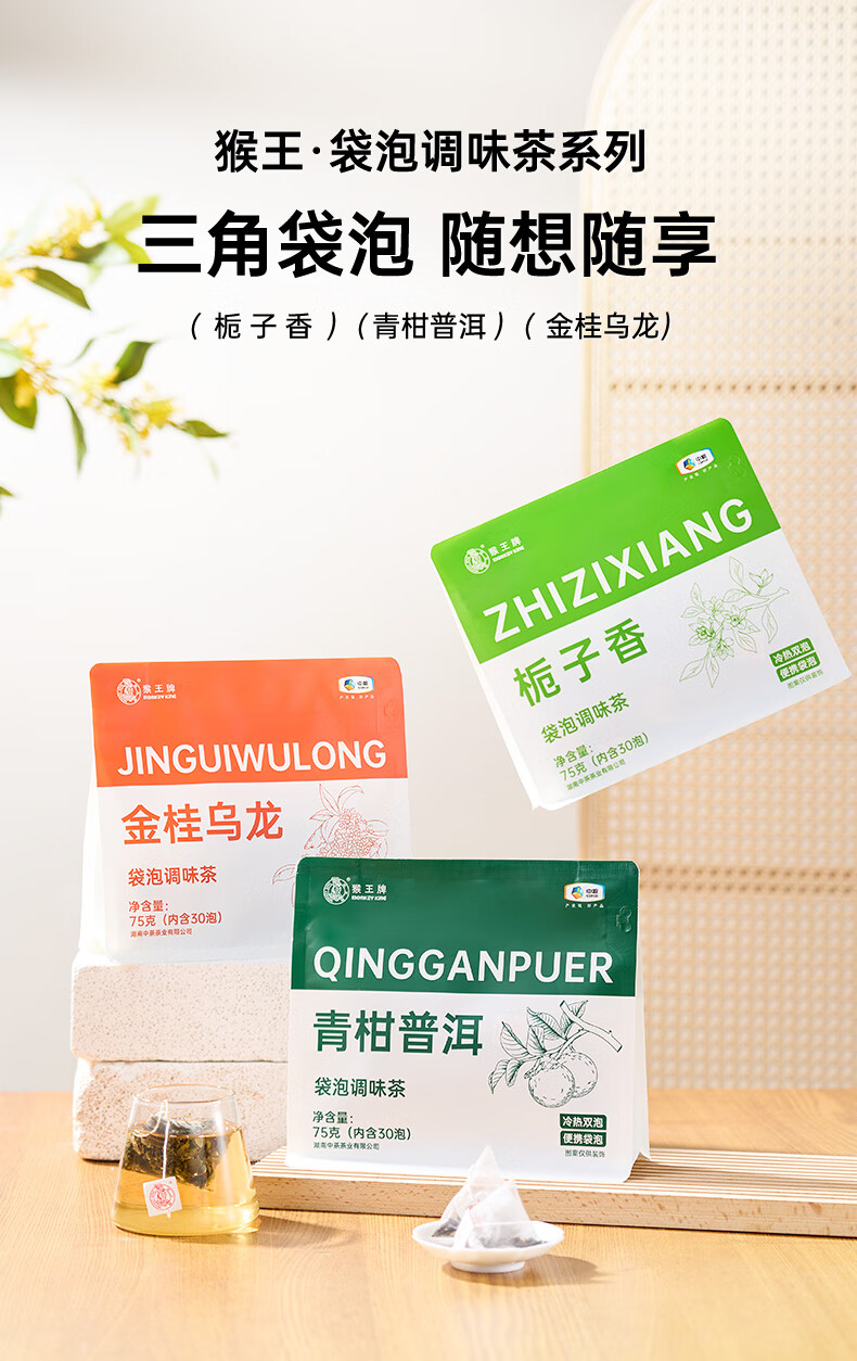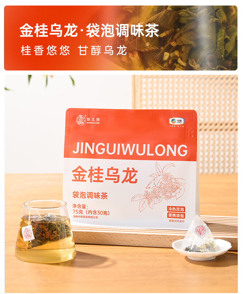 猴王牌猴王栀子花绿茶金桂乌龙茶青柑普洱茶75g三角袋泡办公室便捷饮茶 金桂乌龙75g【30泡】