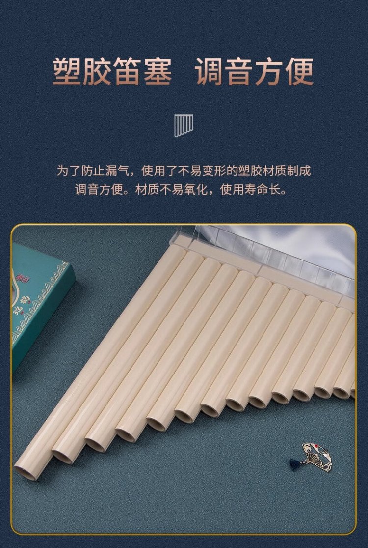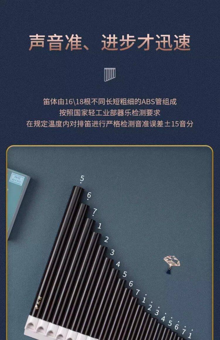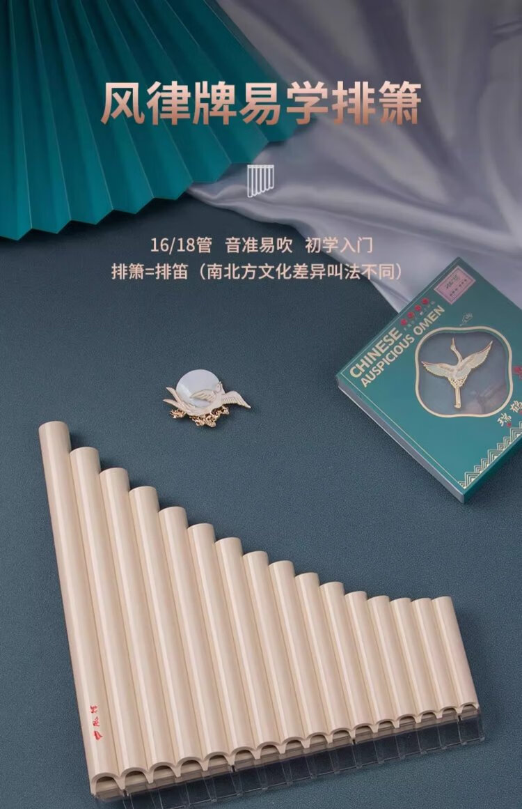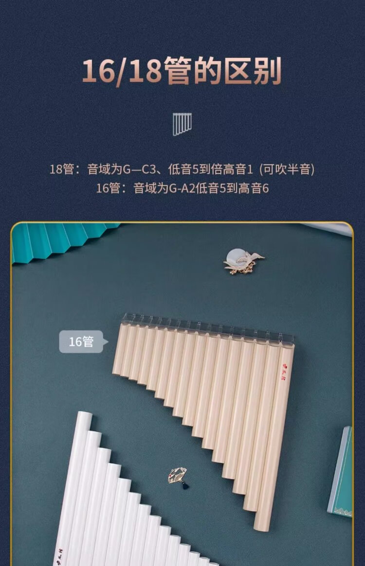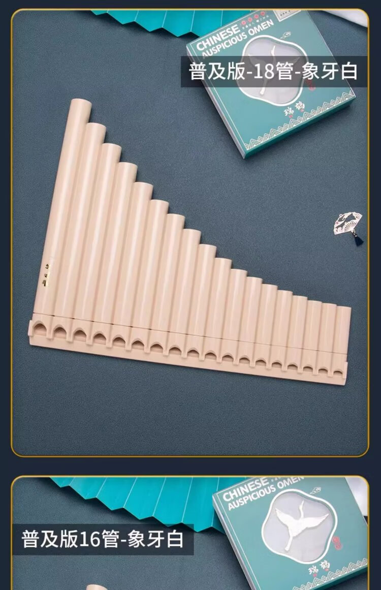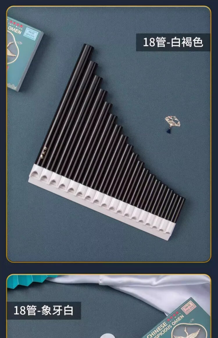 Wind rhythm panpipe beginners professional playing national musical instrument 16 tubes 18 tubes 22 tubes sound hole school teaching students and children only classic model 16 tubes ivory white + note stand