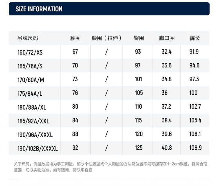 China (cm) 160-165/84-86 165-170 / 88-90 167-172 / 92-96 168-173 / 98-102 170-176 / 106-110