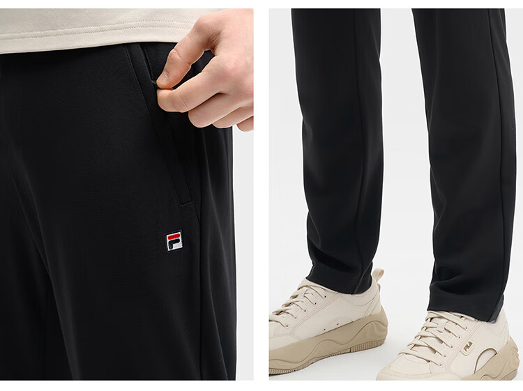 Fila Fila official men's knitted trousers 2025 summer new fashion casual simple basic straight pants men's black-BK L 175/84A/L