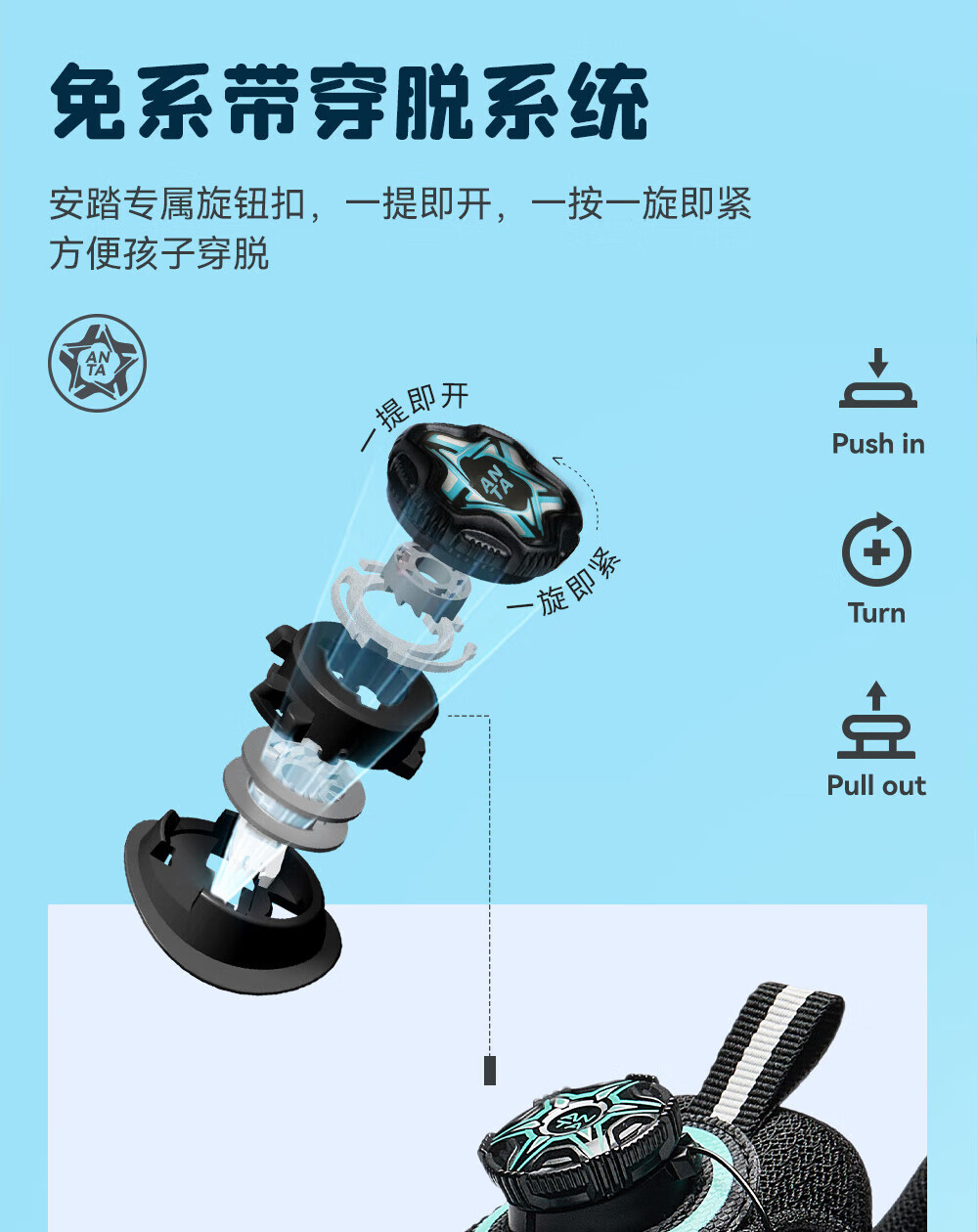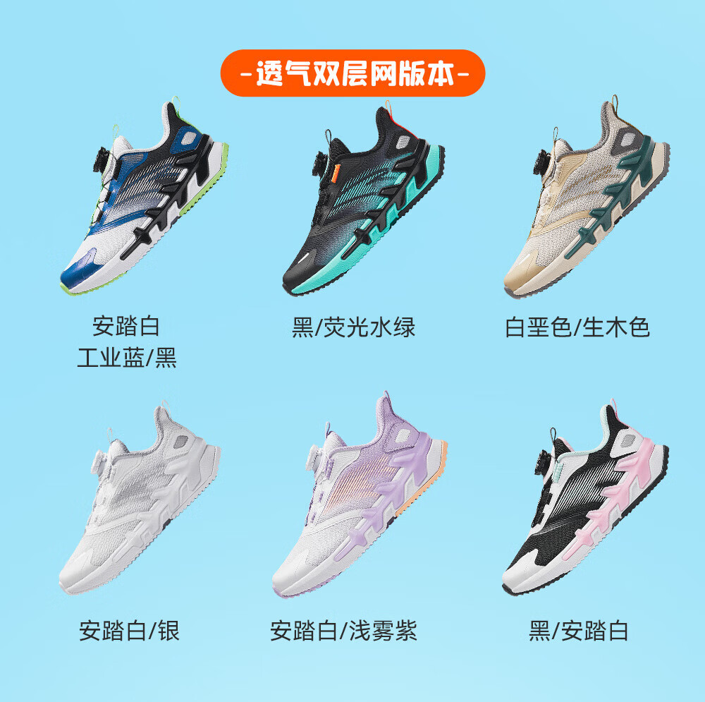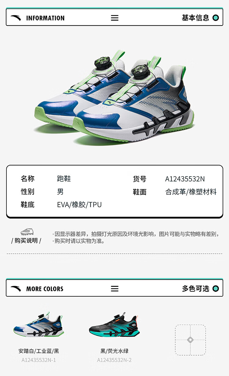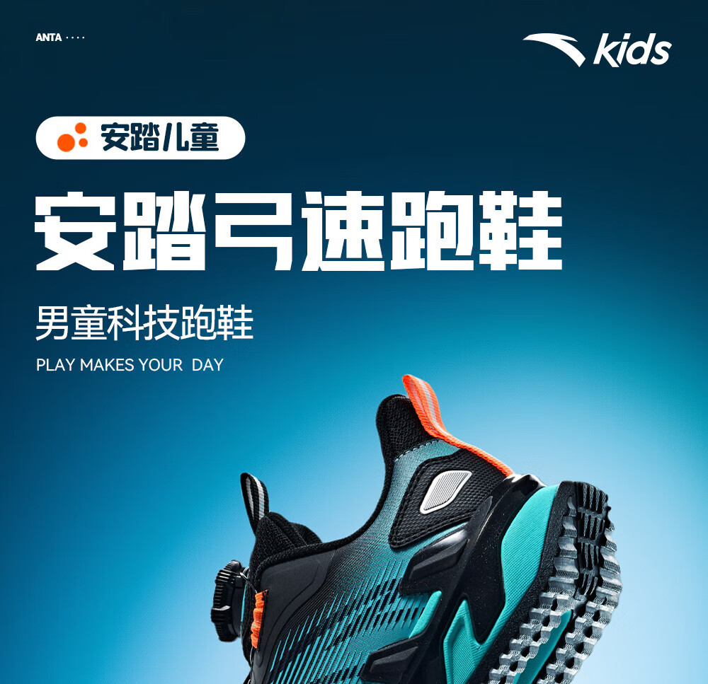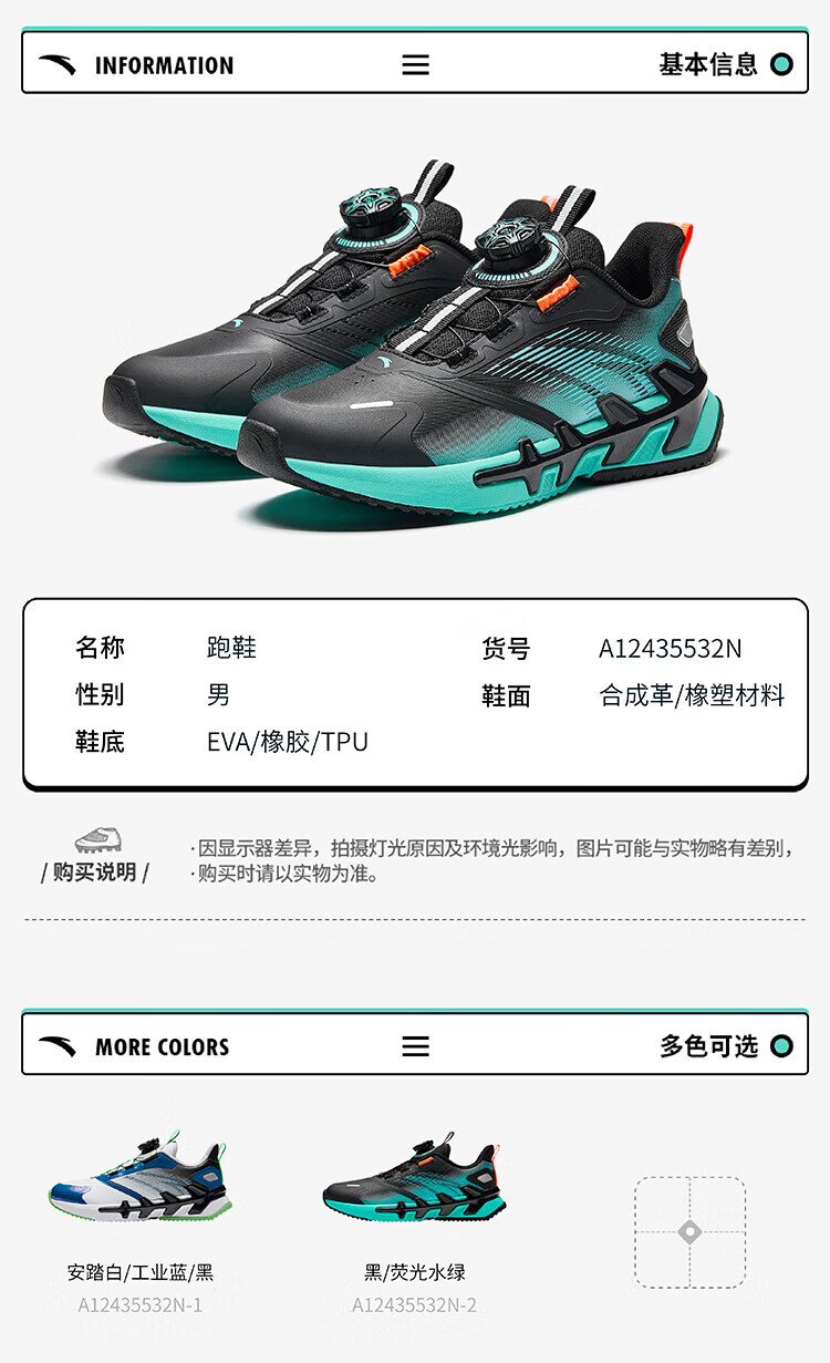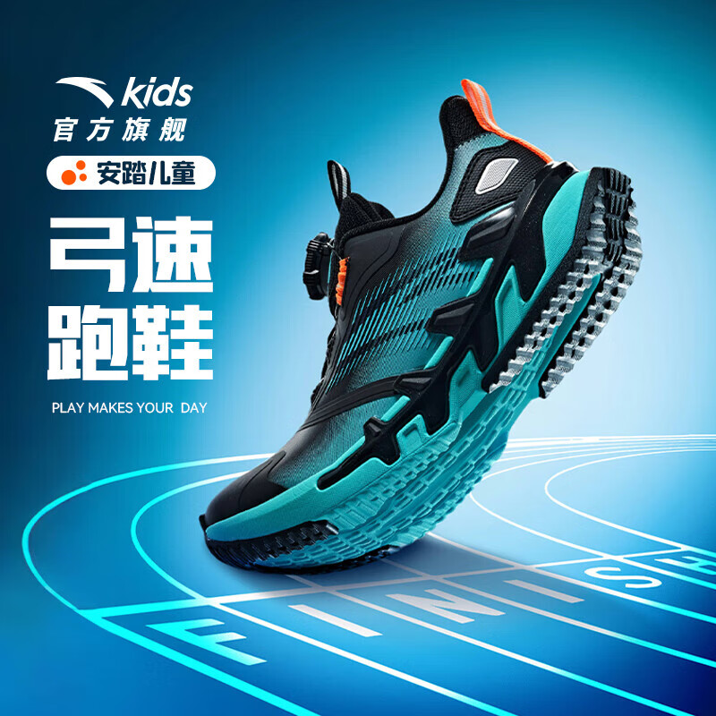 ANTA Children's Sports Shoes Men's Big Children's Shoes 2025 Spring New Leather Windproof Knob Button Cushioning Bow Speed ​​Running Shoes Black/Fluorescent Aqua-2 Size 33