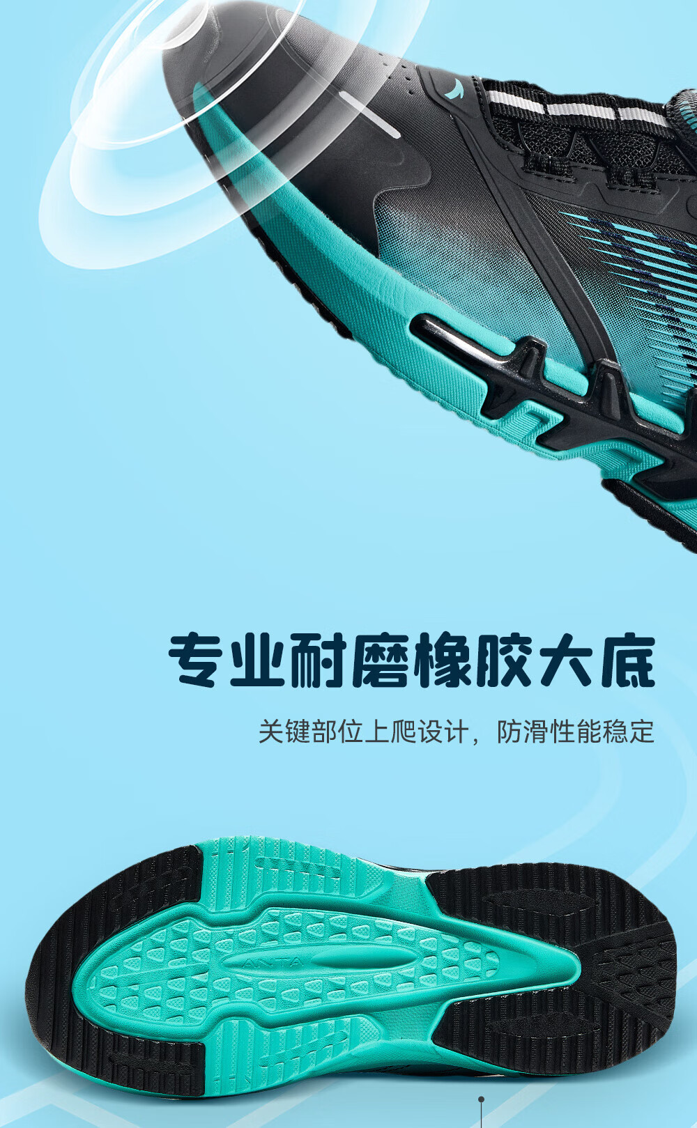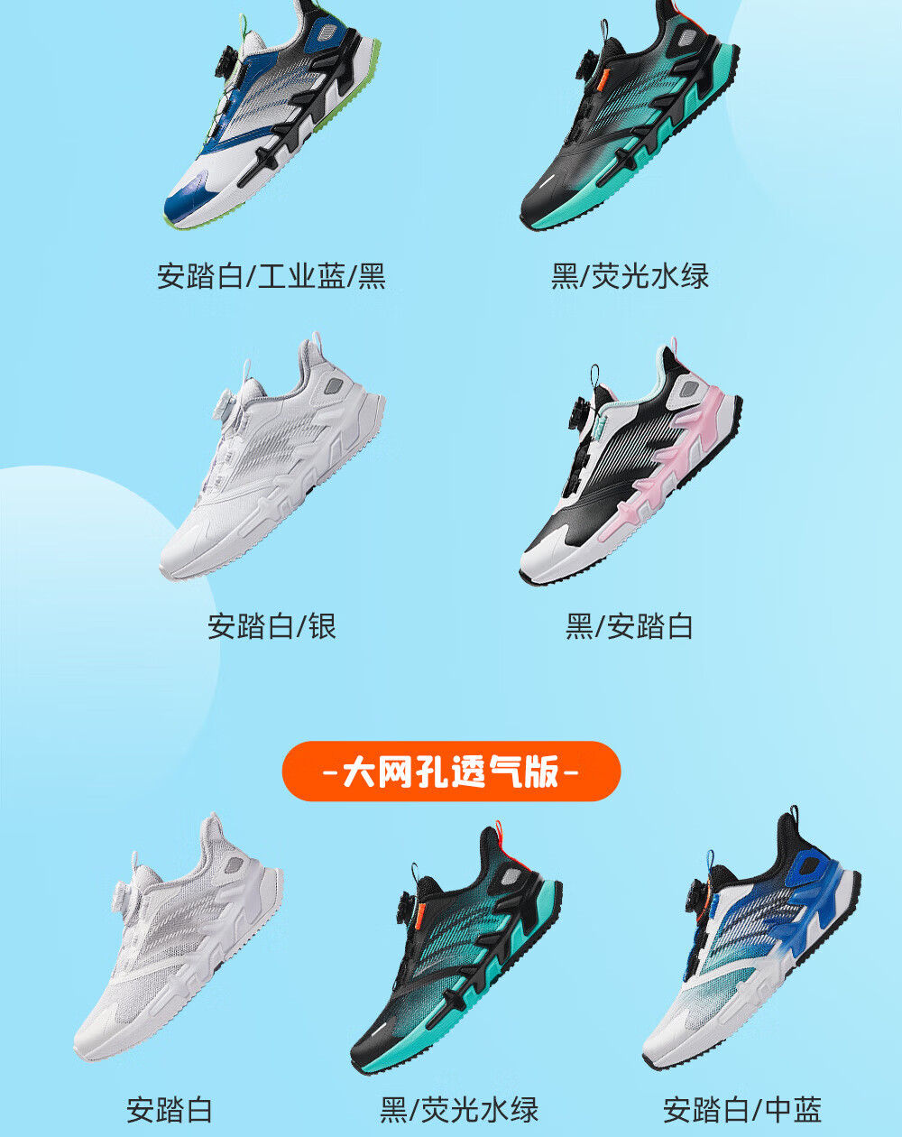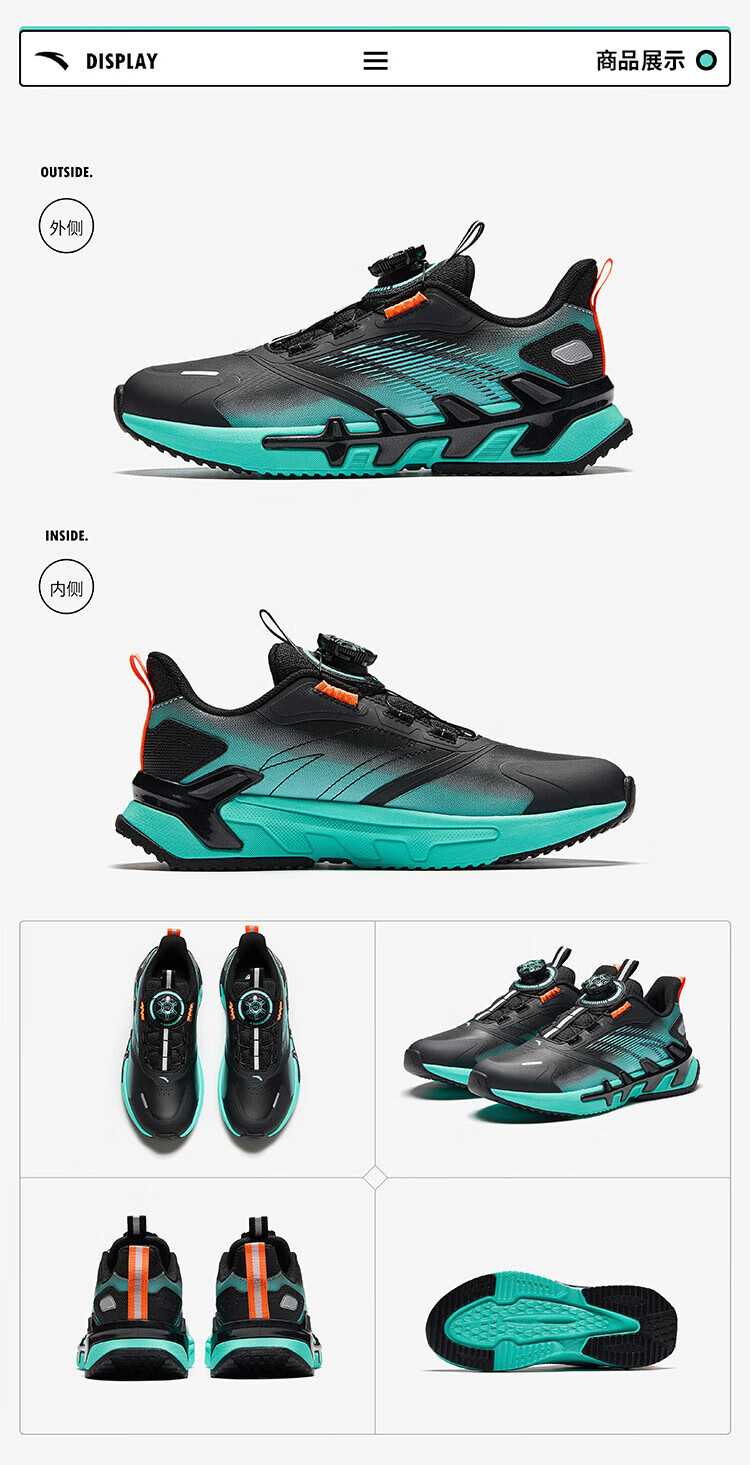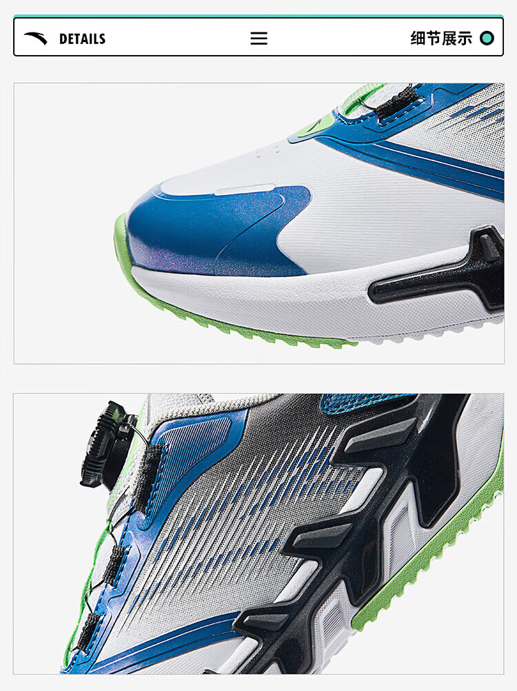 ANTA Children's Sports Shoes Men's Big Children's Shoes 2025 Spring New Leather Windproof Knob Button Cushioning Bow Speed ​​Running Shoes Black/Fluorescent Aqua-2 Size 33