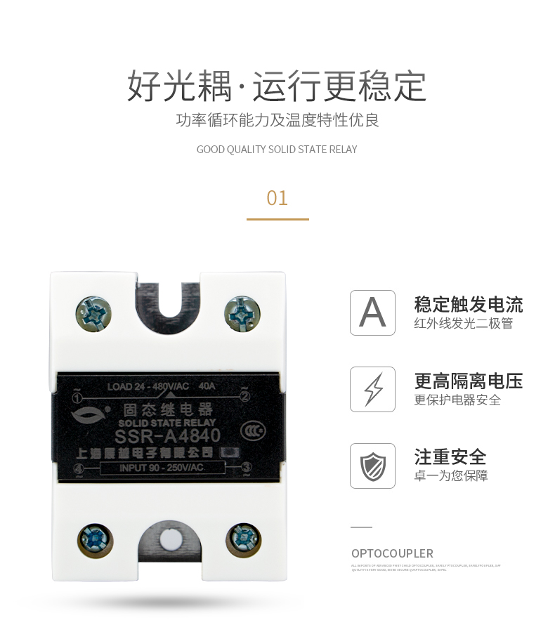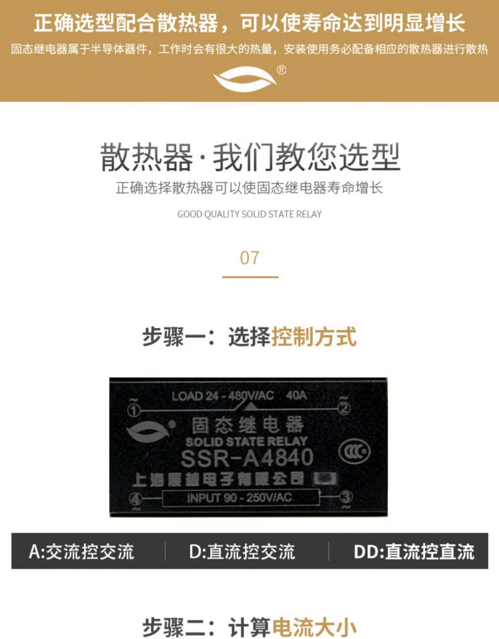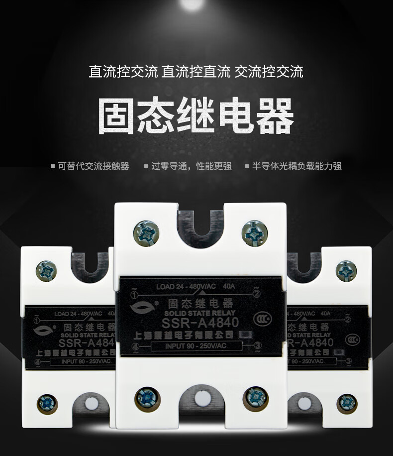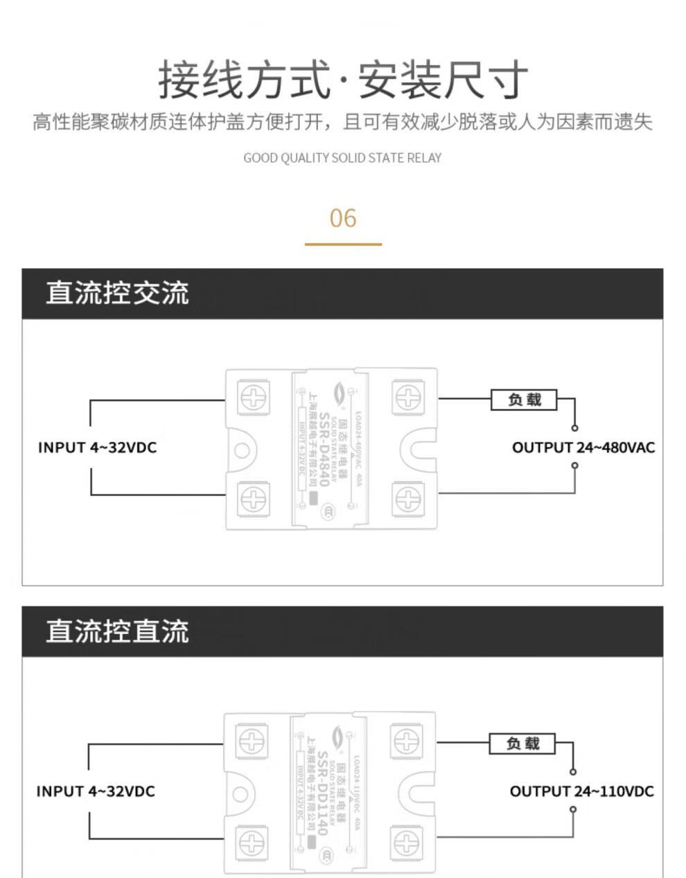 220V单相固态继电器小型24v 12V 5V DC直流控交流AC SSR-40DA 直 直流控交流40ASSR-D4840