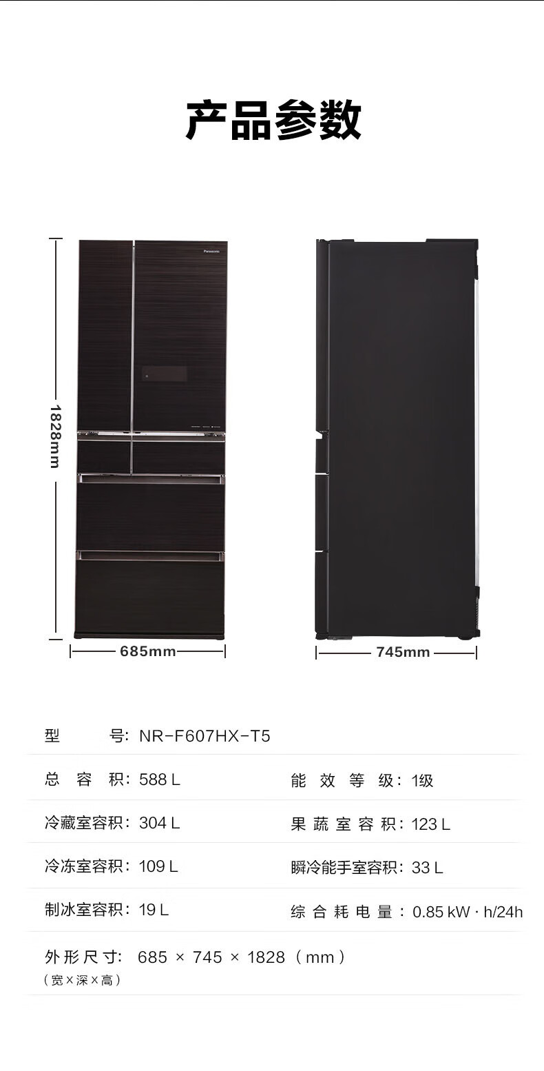 松下(Panasonic)冰箱 NR-F504VT-N5/F604/F507/F607/F654/F673 日本原装进口 NR-F507HX-W5 (原装进口496L) 白
