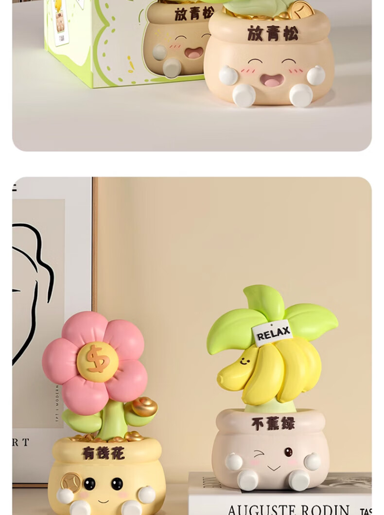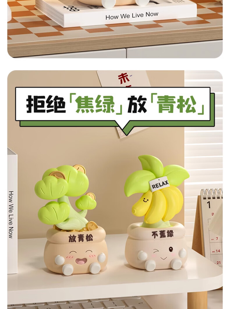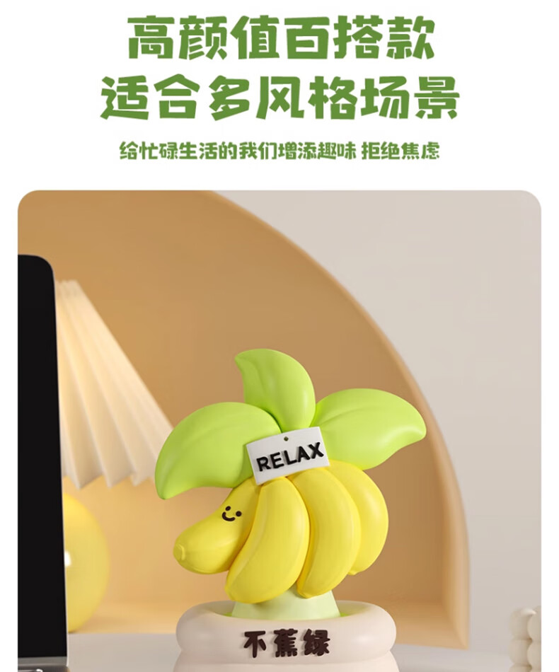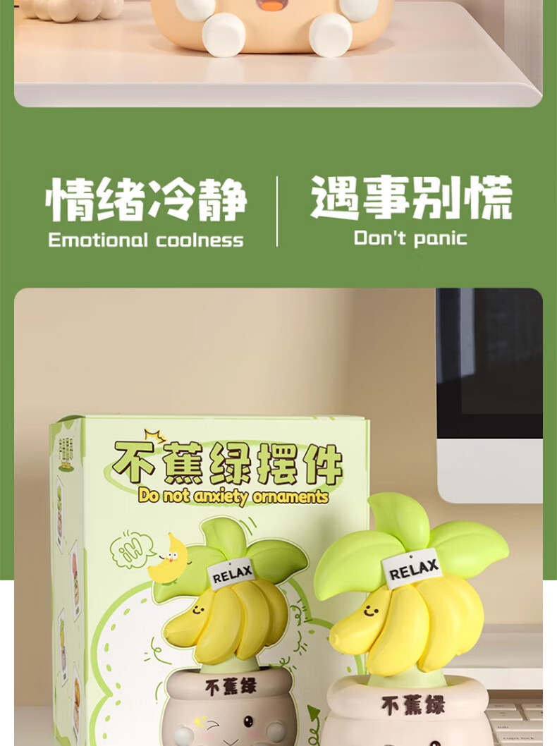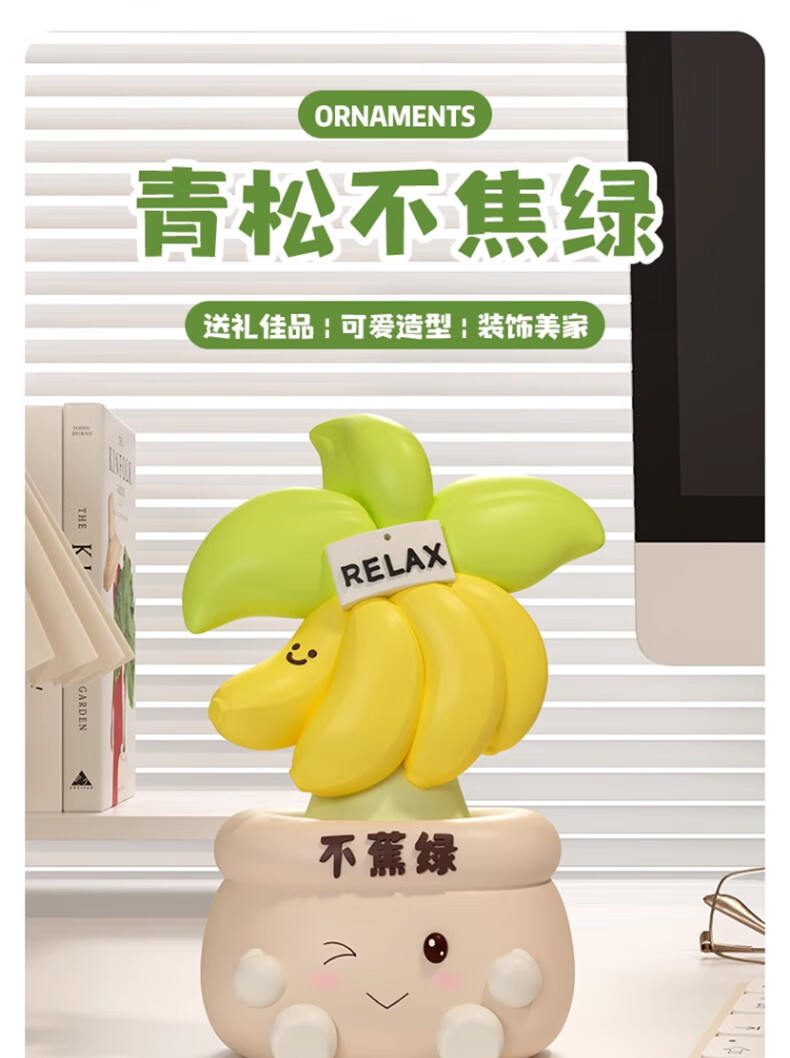 Happy New Year's birthday gift for women, don't worry, relax, desktop ornaments, annual party healing souvenirs for boyfriends and girlfriends, banana green ornaments, free greeting cards, housewarming gifts and crafts