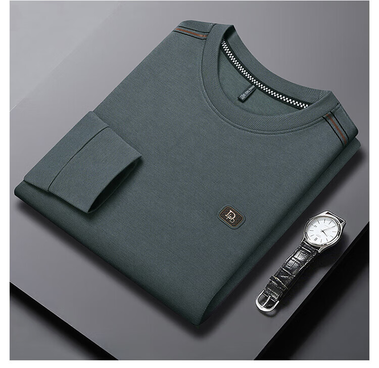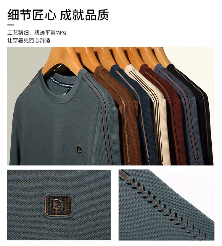 JEEP SPIRIT autumn long-sleeved T-shirt men's autumn and winter new style middle-aged men's sweatshirt plus velvet loose bottoming shirt Spring and Autumn SY-6625 black 3XL 185 recommended 165-180Jin Jin equals 0.5 kg