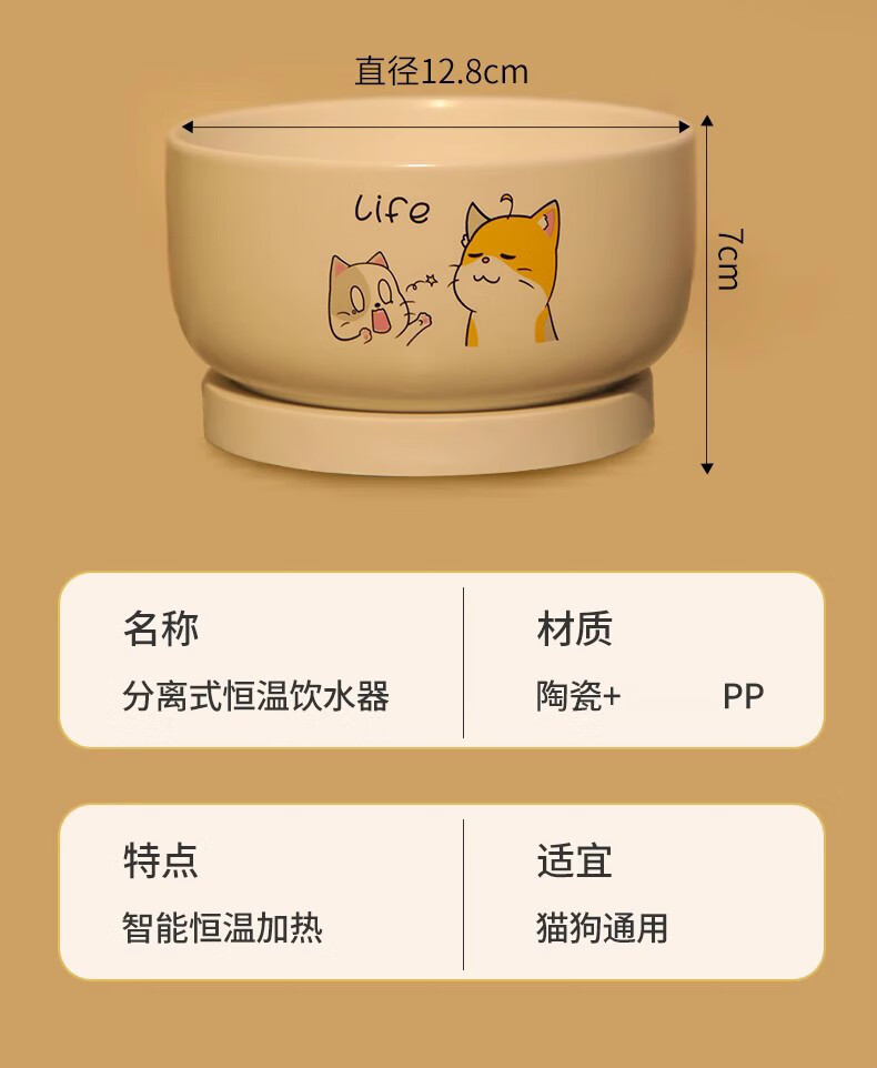Shanye Dispensador de agua para gatos a temperatura constante máquina de yogur cuenco de agua calefacción para gatos alimentación de agua potable artefacto de alimentación de agua cuenco para gatos dispensador de agua de invierno 850 ml cuenco de cerámica negro puro + almohadilla de temperatura constante