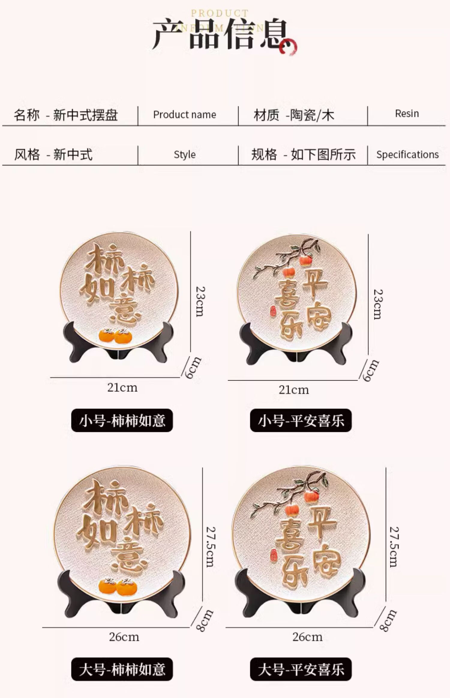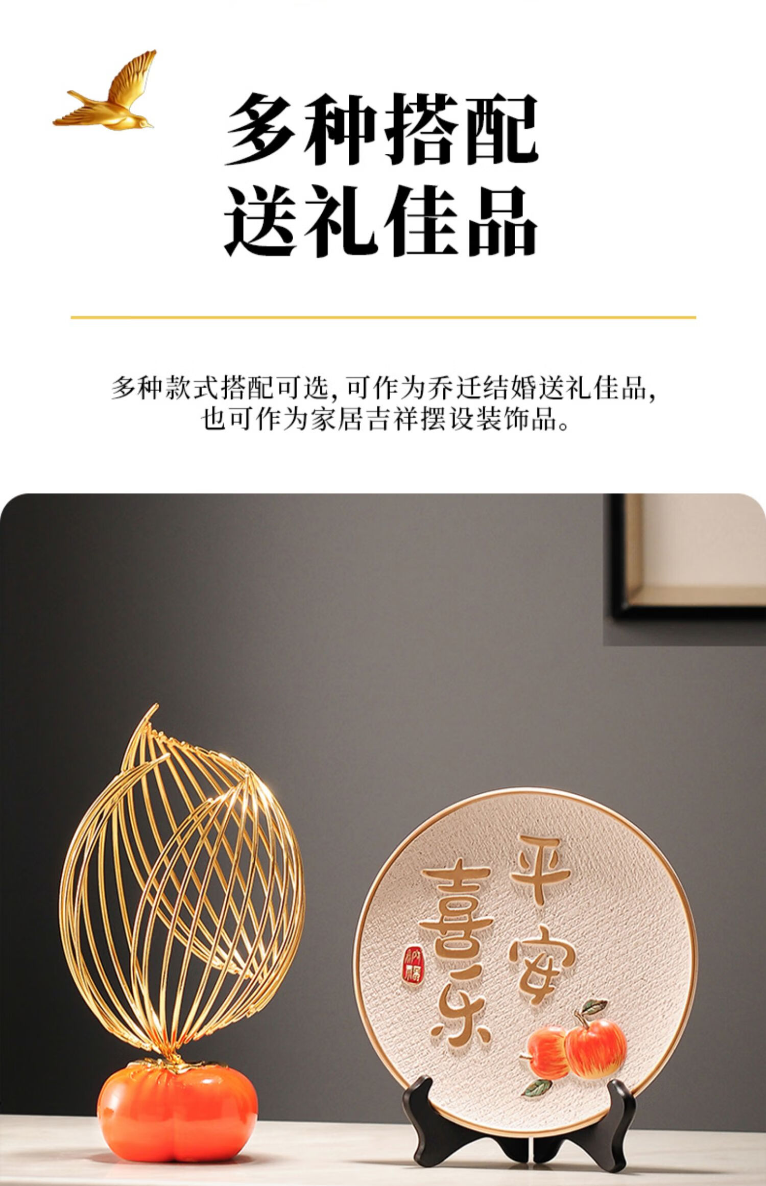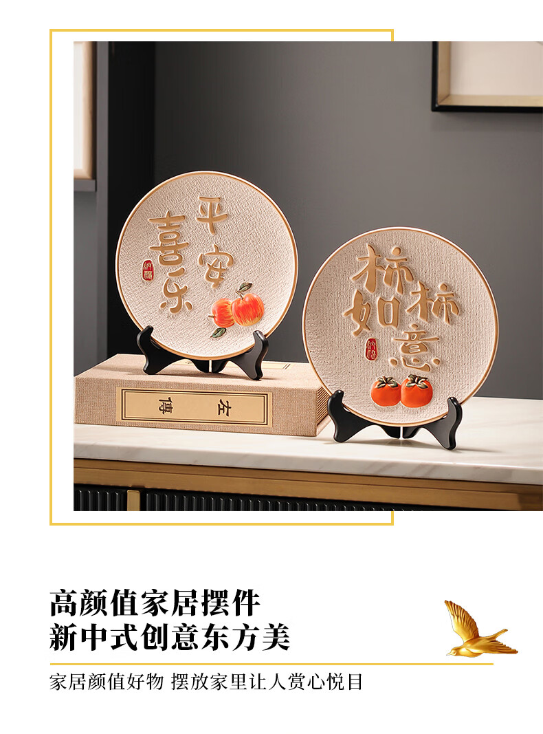 Yunya nouveau style chinois Ping An et Joy ornements plaque suspendue vitrine décorations de salon meuble TV armoire à vin déménagement vers une nouvelle maison cadeau Ping An et Joy fan-ornements