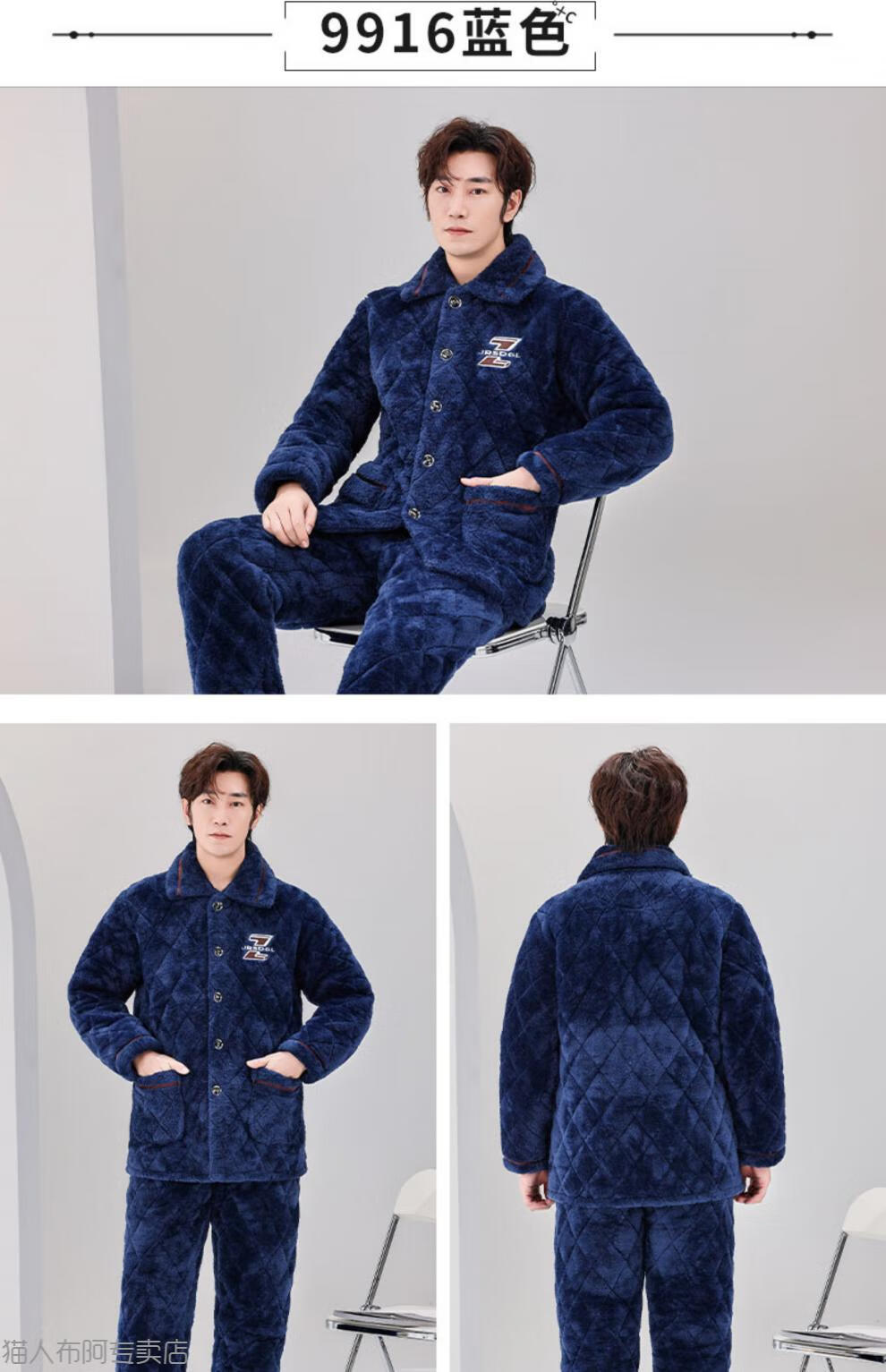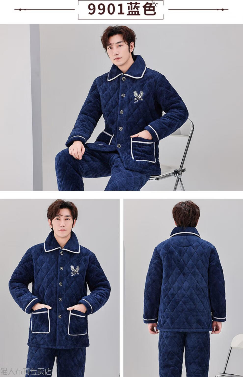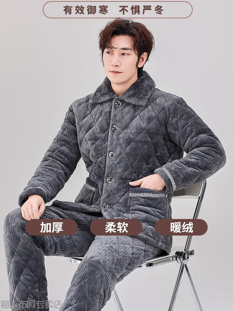Пижама MiiOW для мужчин осенью и зимой, трехслойная утолщенная плюс бархатный коралловый бархатный стеганый фланелевой комплект теплой домашней одежды, зимний стиль C9902 синий мужской молочный бархат L 3 слоя x (125 Jin Jin равно 0,5 кг) три слоя толщиной