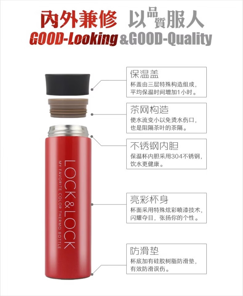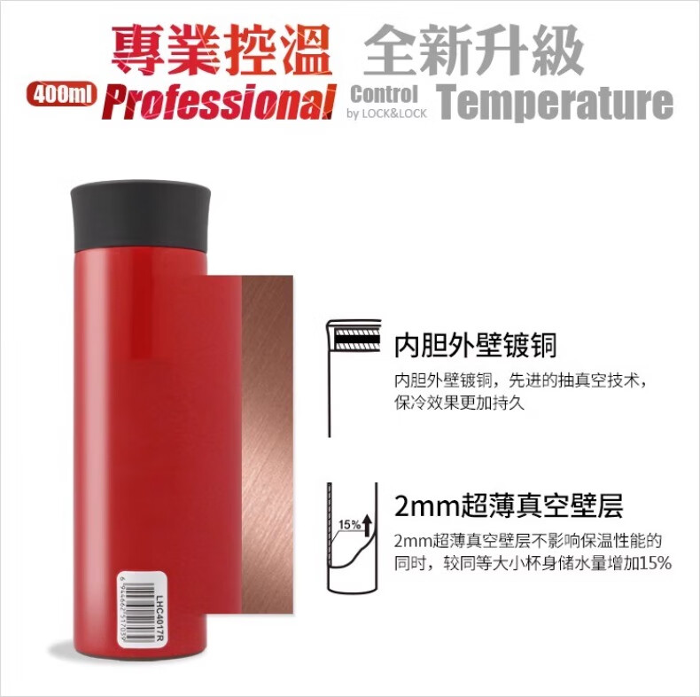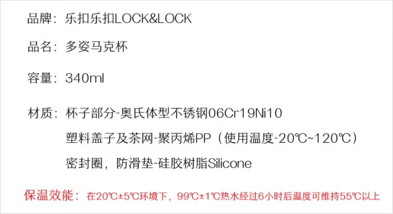 乐扣乐扣(LOCK&LOCK)保温杯304不锈钢男女学生水杯子户外便携团购定制礼品 橙色340ml