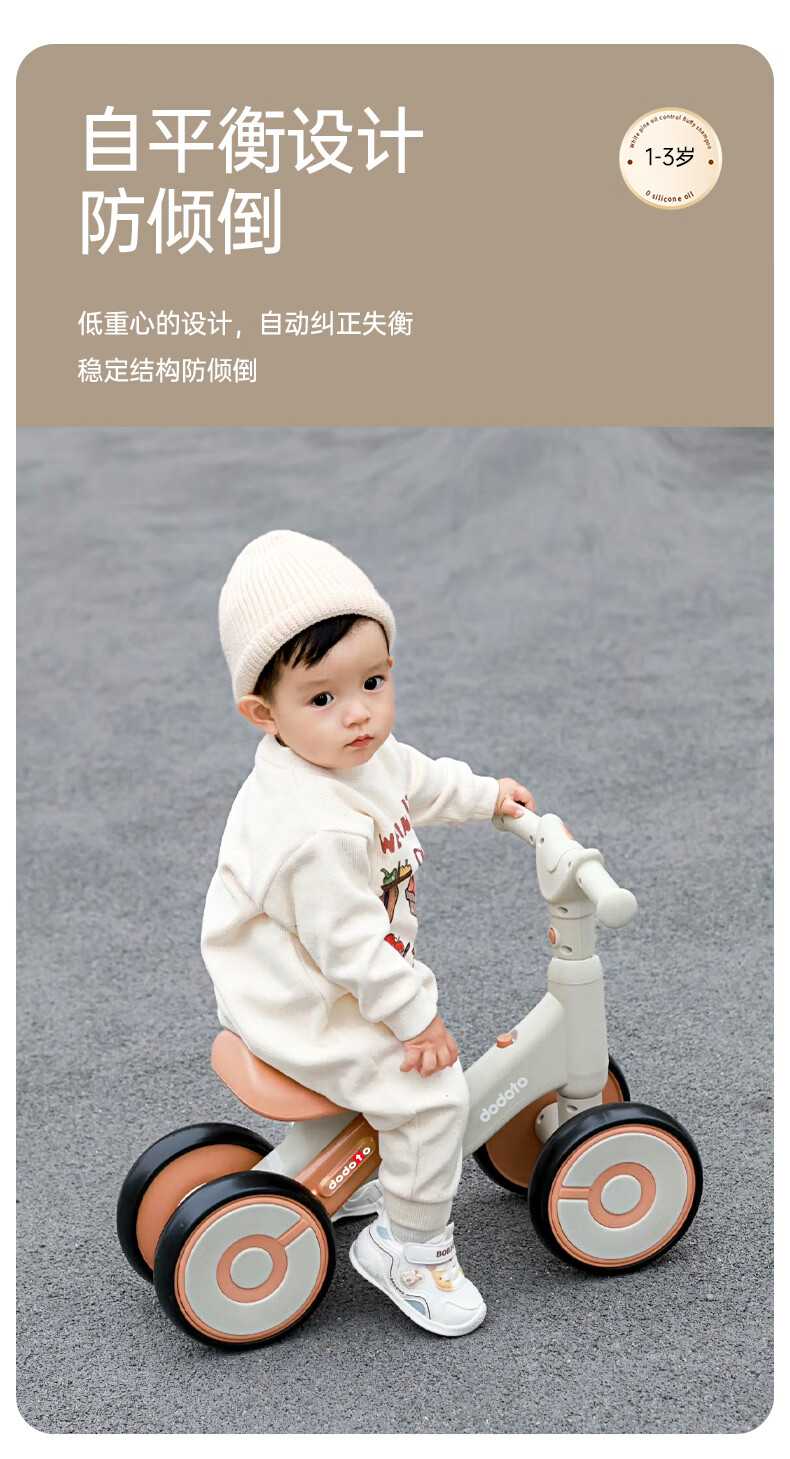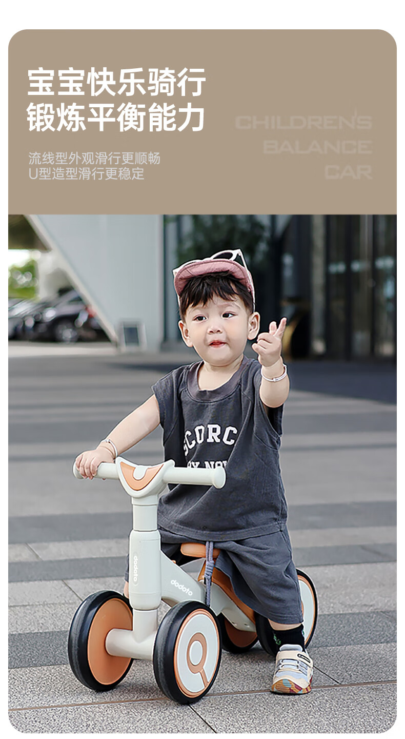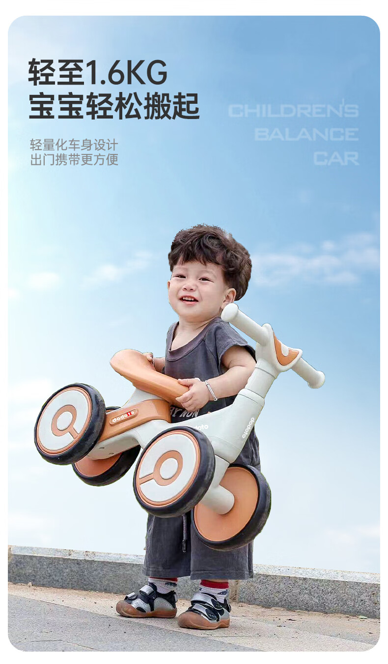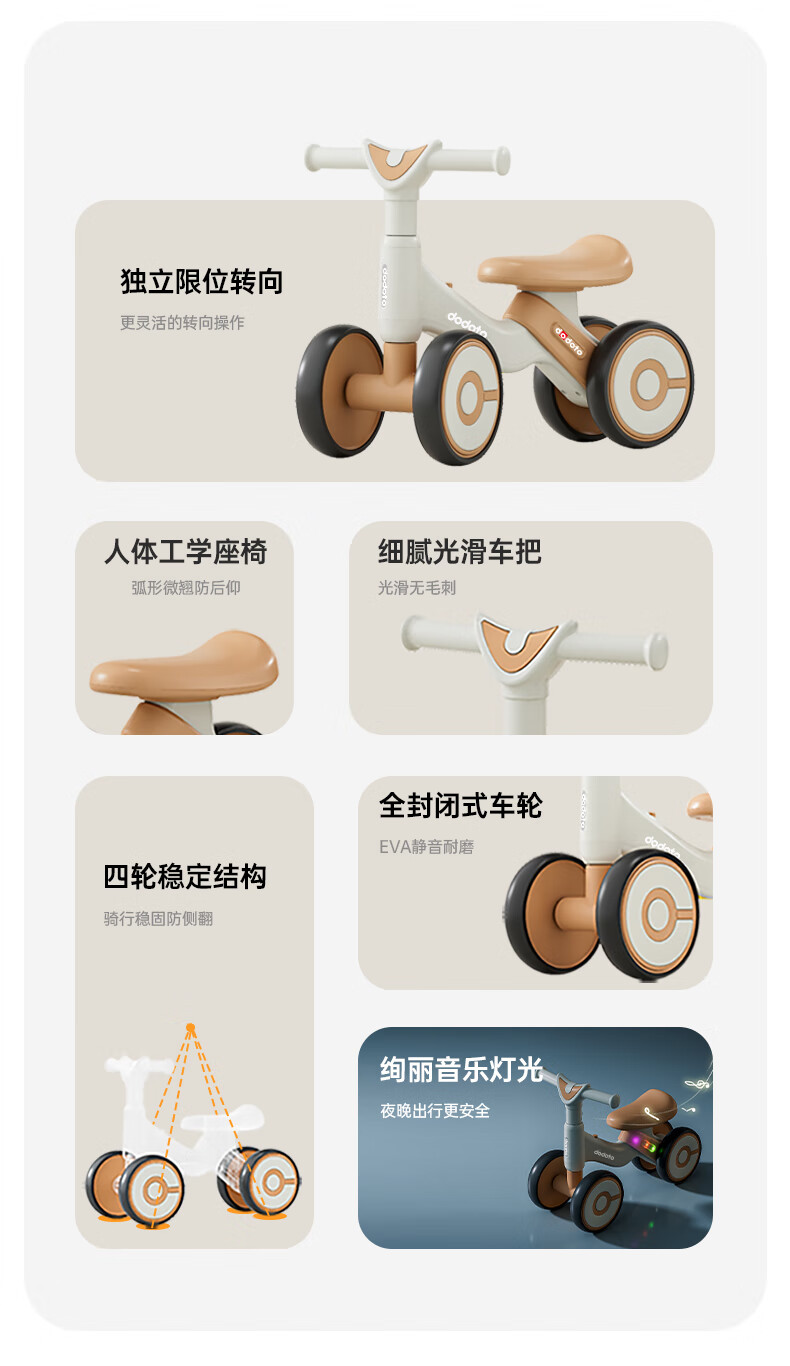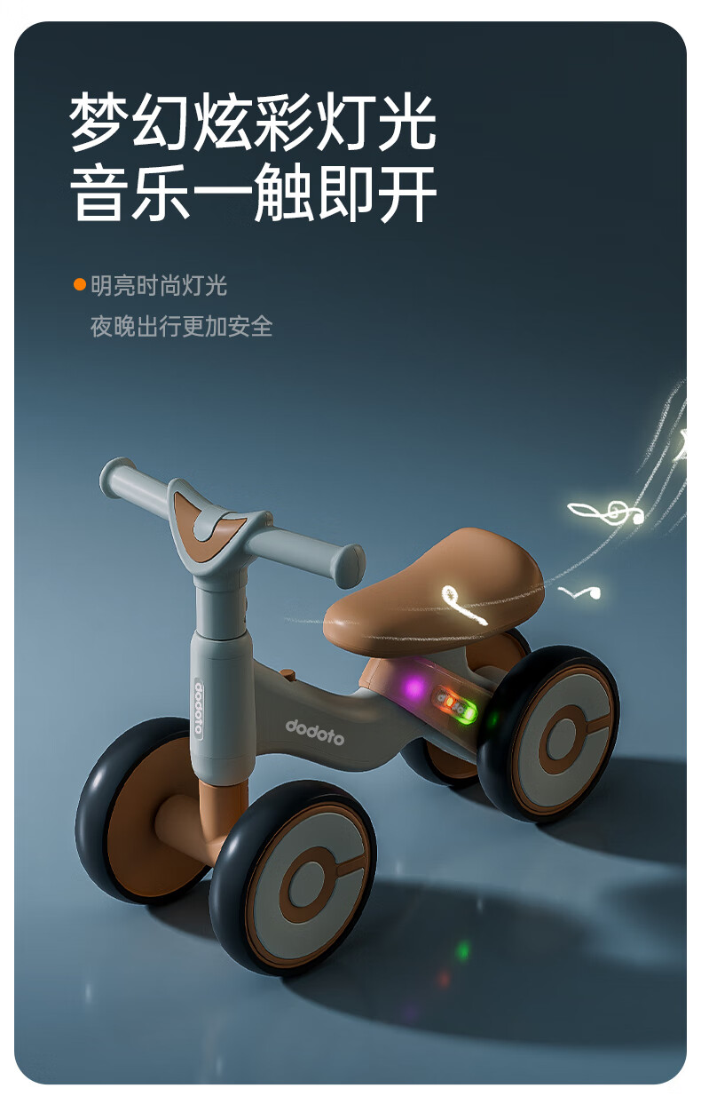 dodoto儿童滑行车小孩防侧翻平衡车轻便无脚踏宝宝四轮溜溜滑步车5699 青咖色+音乐灯光+静音耐磨轮