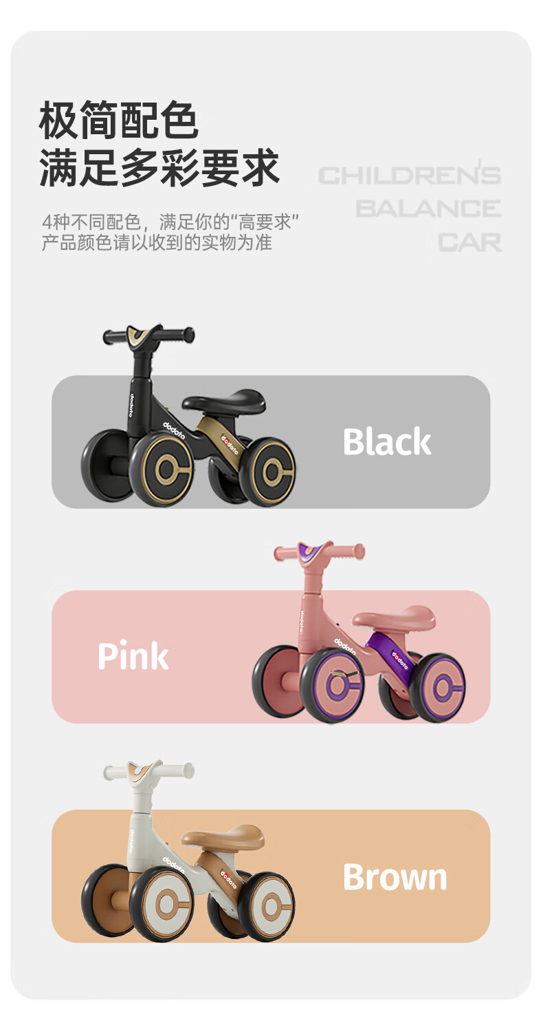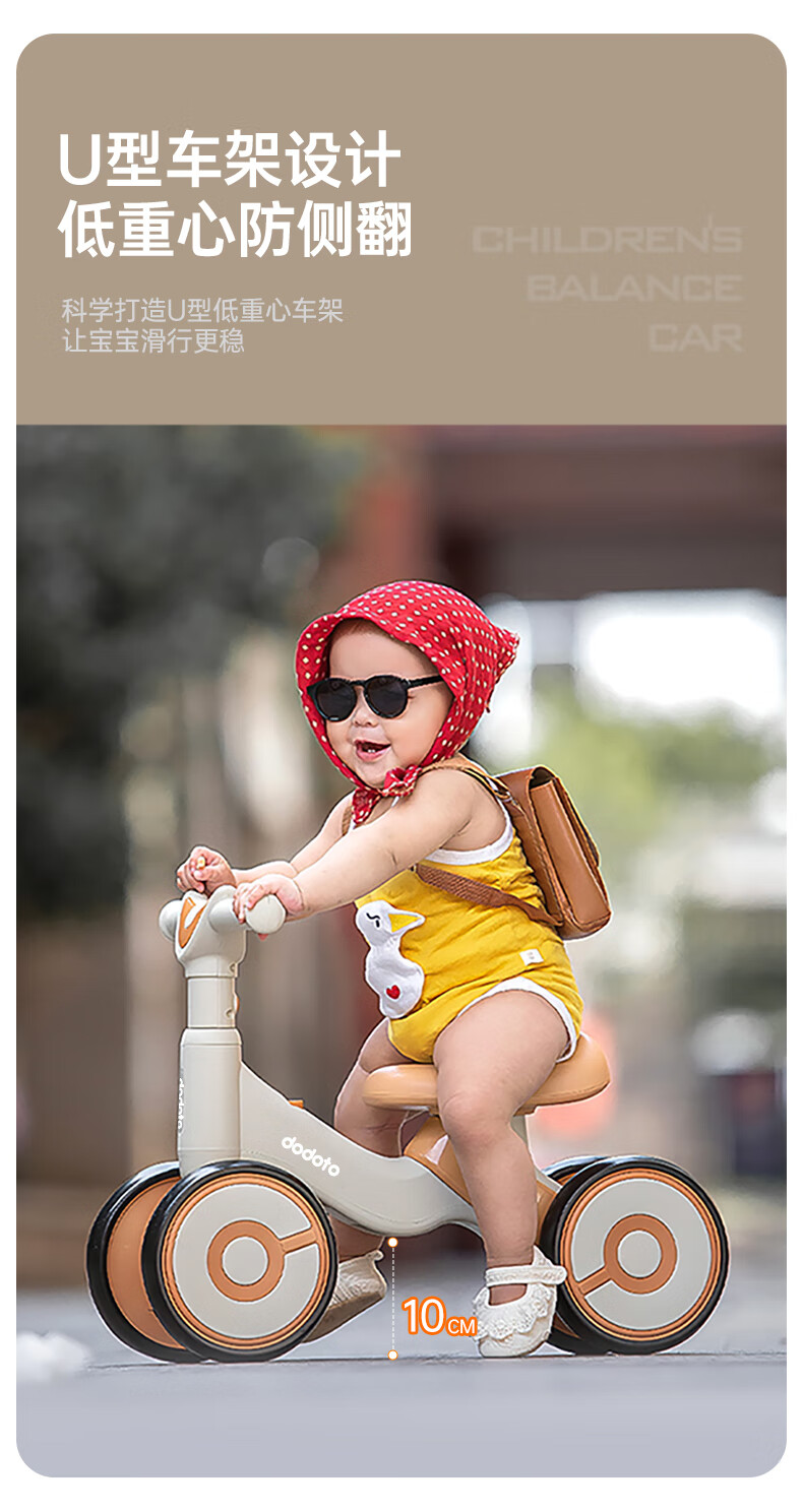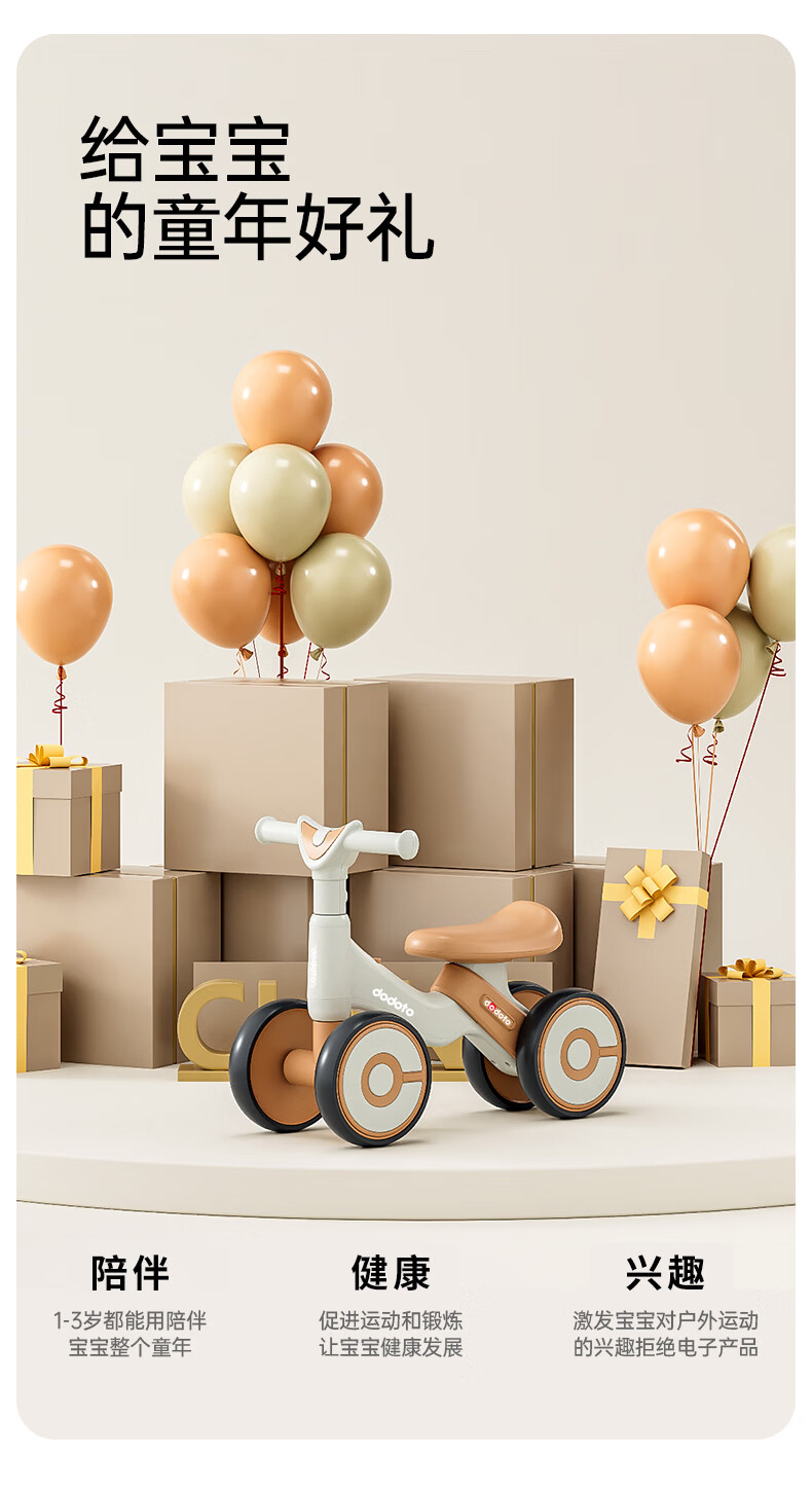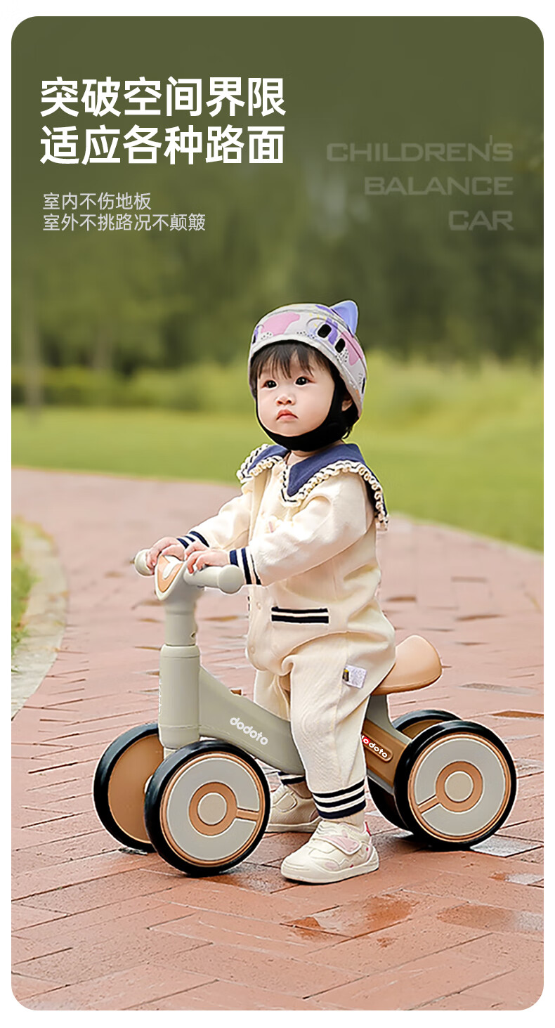 dodoto儿童滑行车小孩防侧翻平衡车轻便无脚踏宝宝四轮溜溜滑步车5699 青咖色+音乐灯光+静音耐磨轮