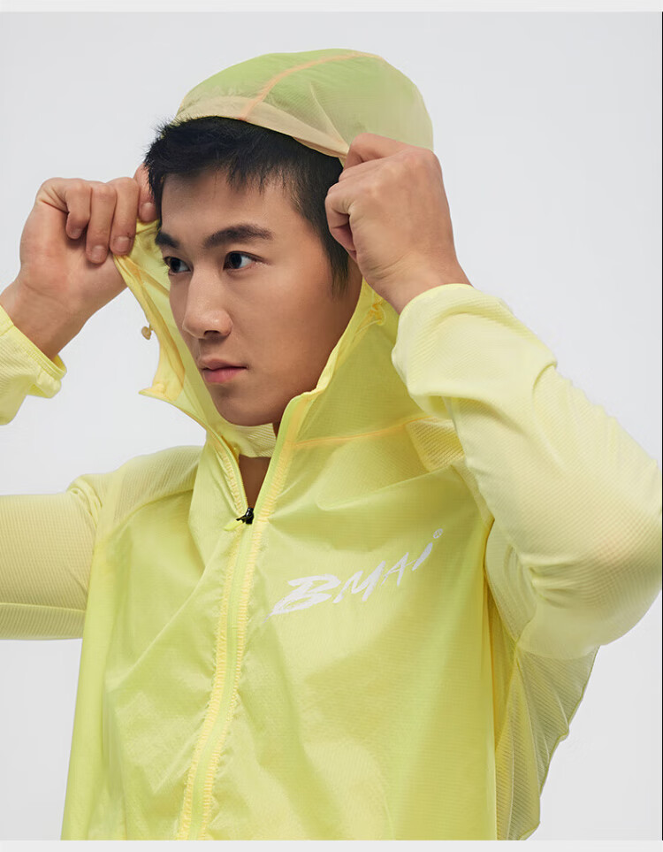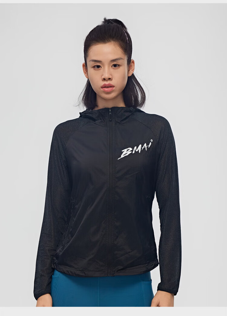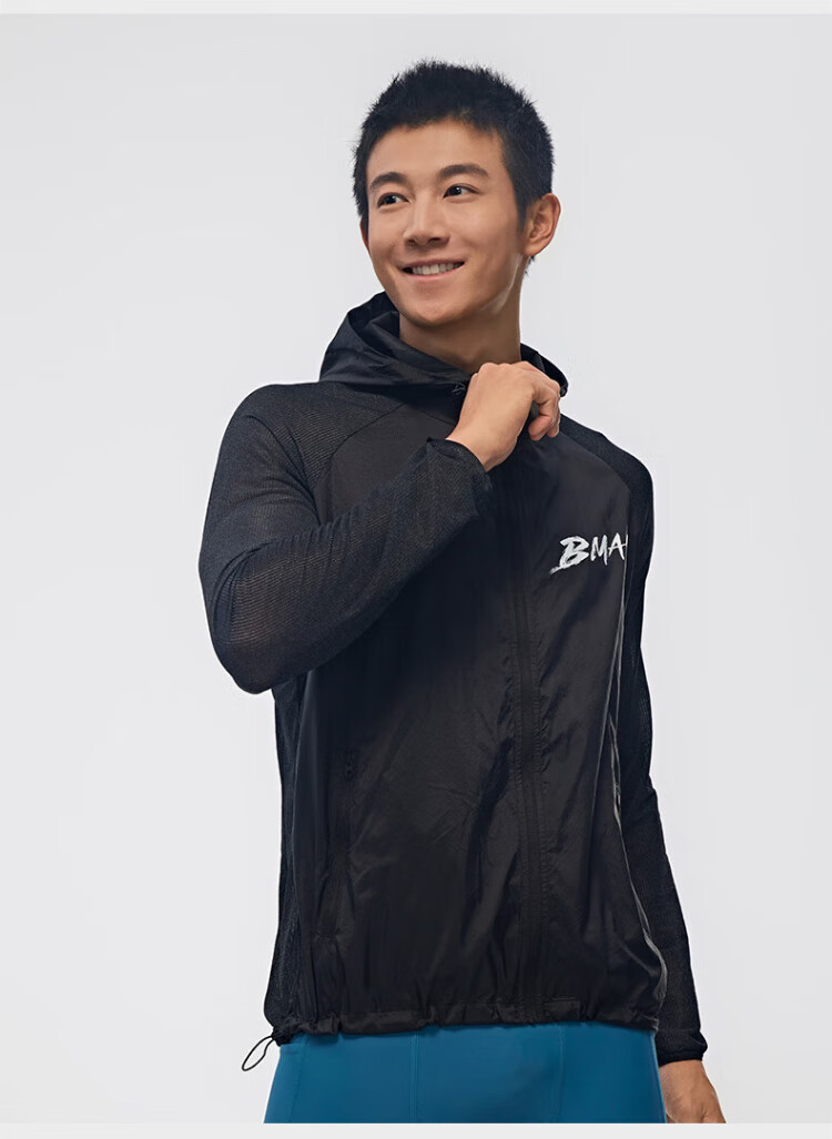 Bimax 2025 new men's and women's running light windbreaker sports jacket breathable hooded lightweight breathable racing jacket top Knight Black Male XL
