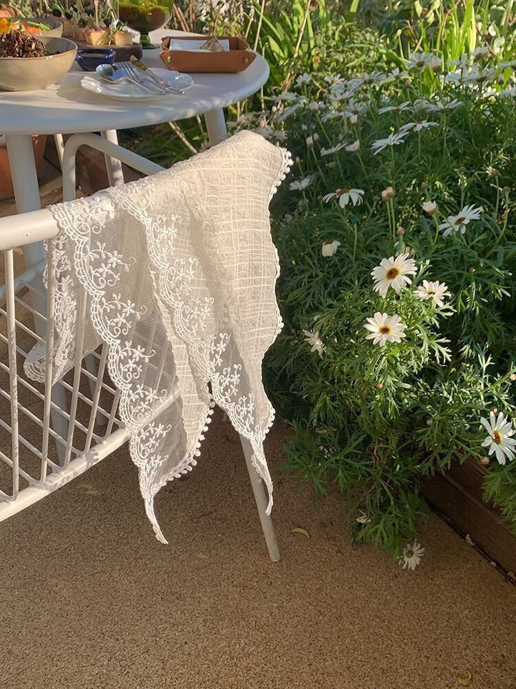 Jiang Jinyue écharpe bandeau de bord de mer triangulaire style pastoral français femmes Baotou mode été soie SN9853 écharpe triangulaire en dentelle blanc cassé