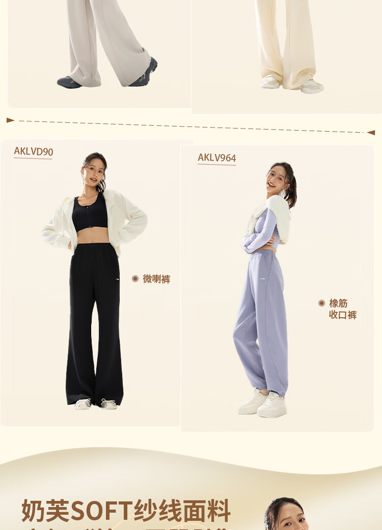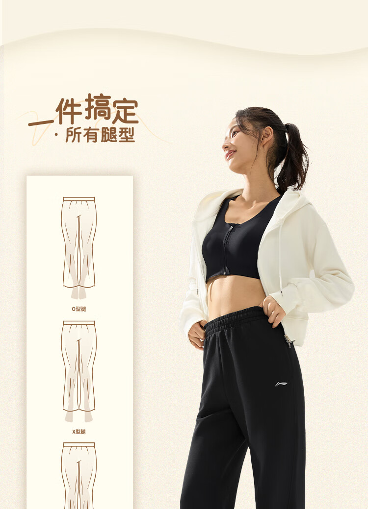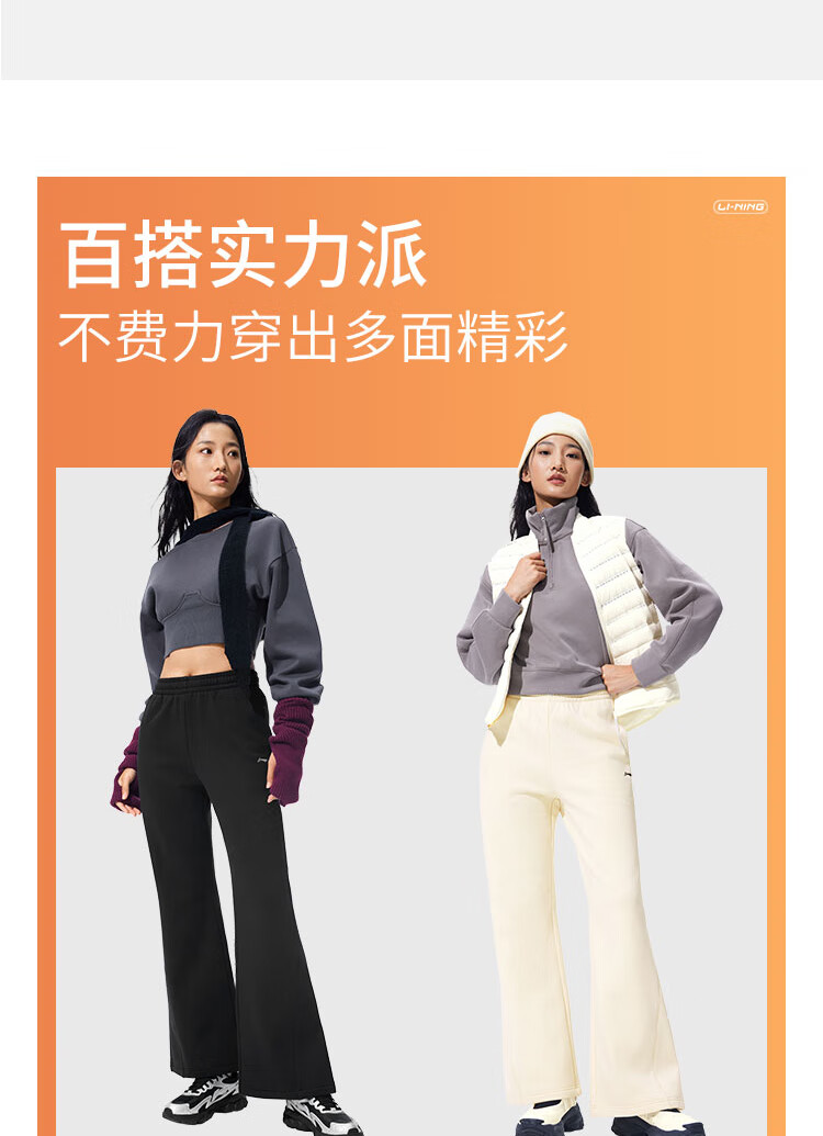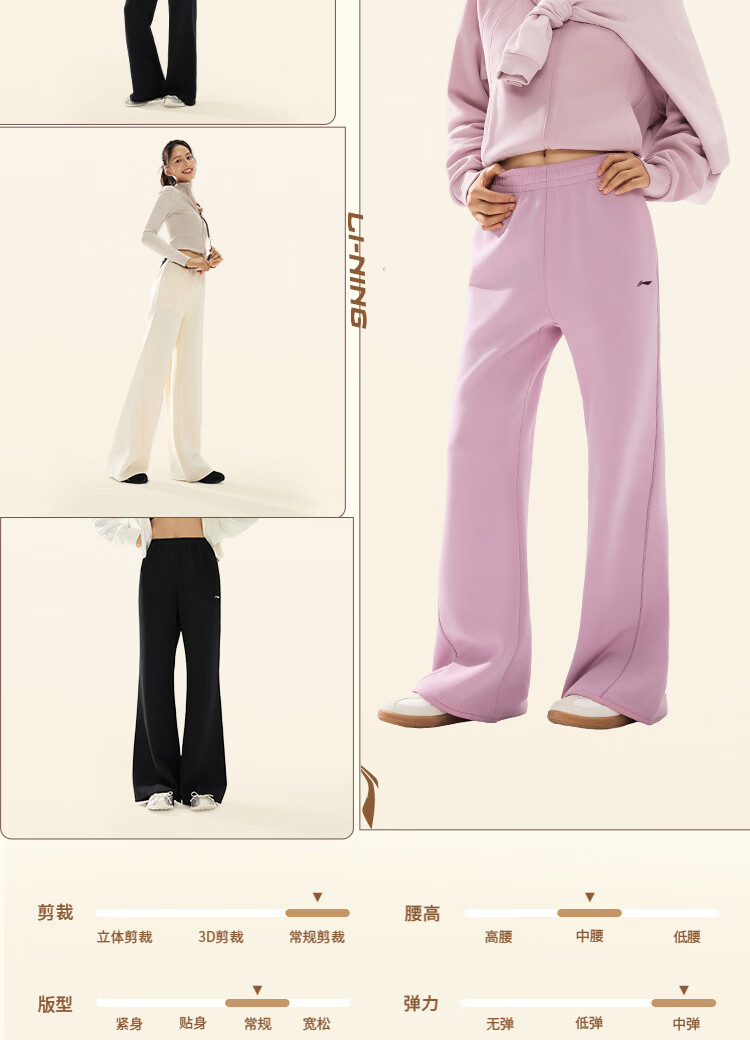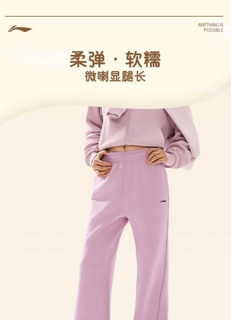 李宁显瘦奶芙裤子秋冬季新微喇卫裤休闲裤女子时尚亲肤舒适运动长裤 【亲肤透气】常规-微喇-沙丘卡其(718款)-5 XS