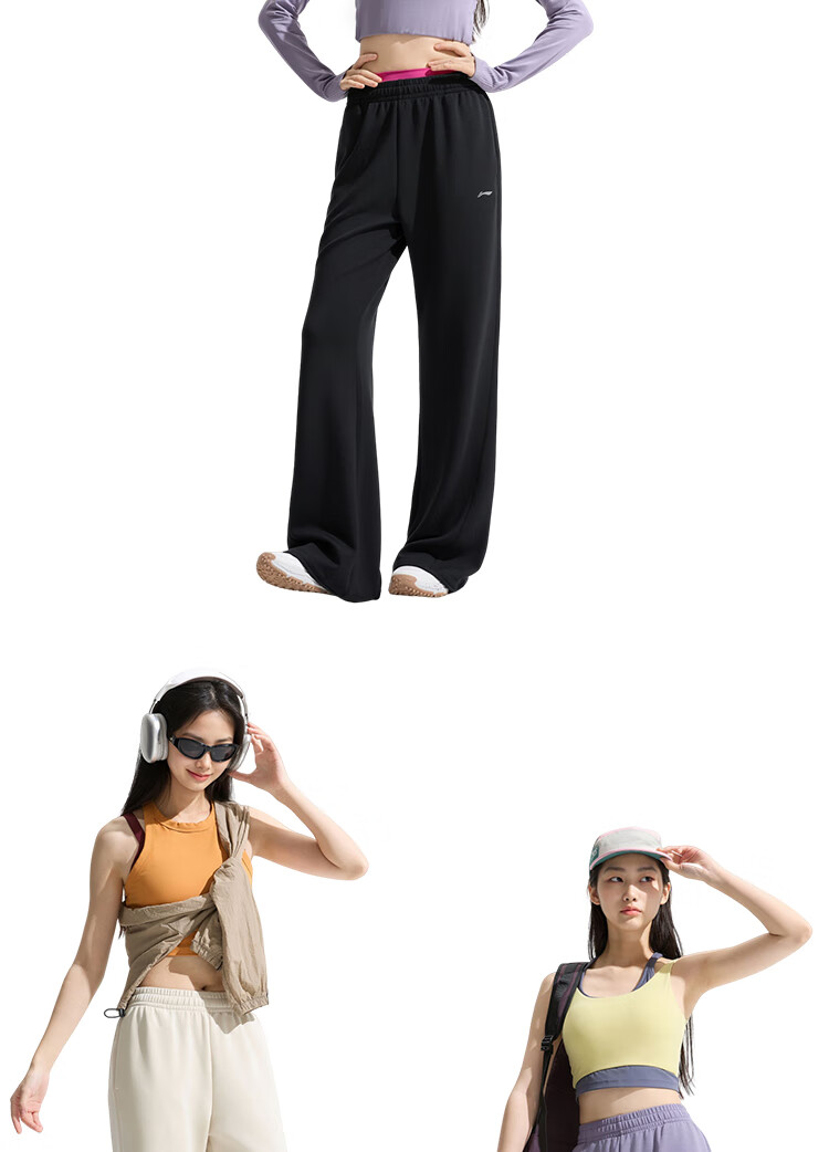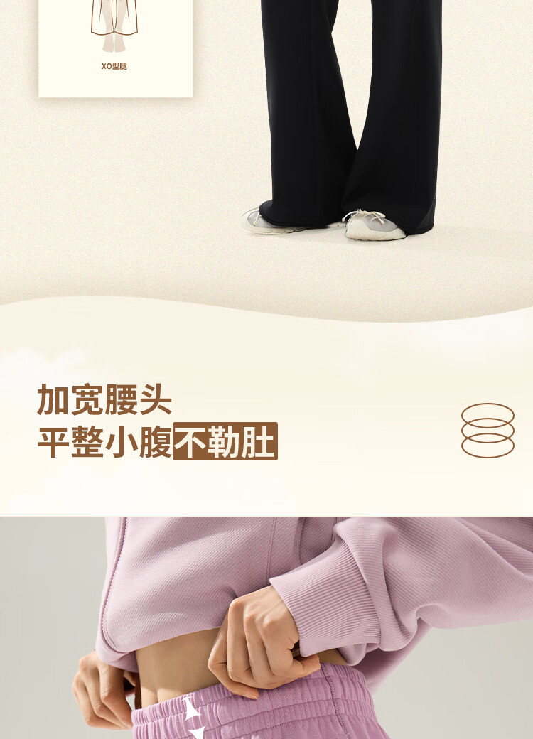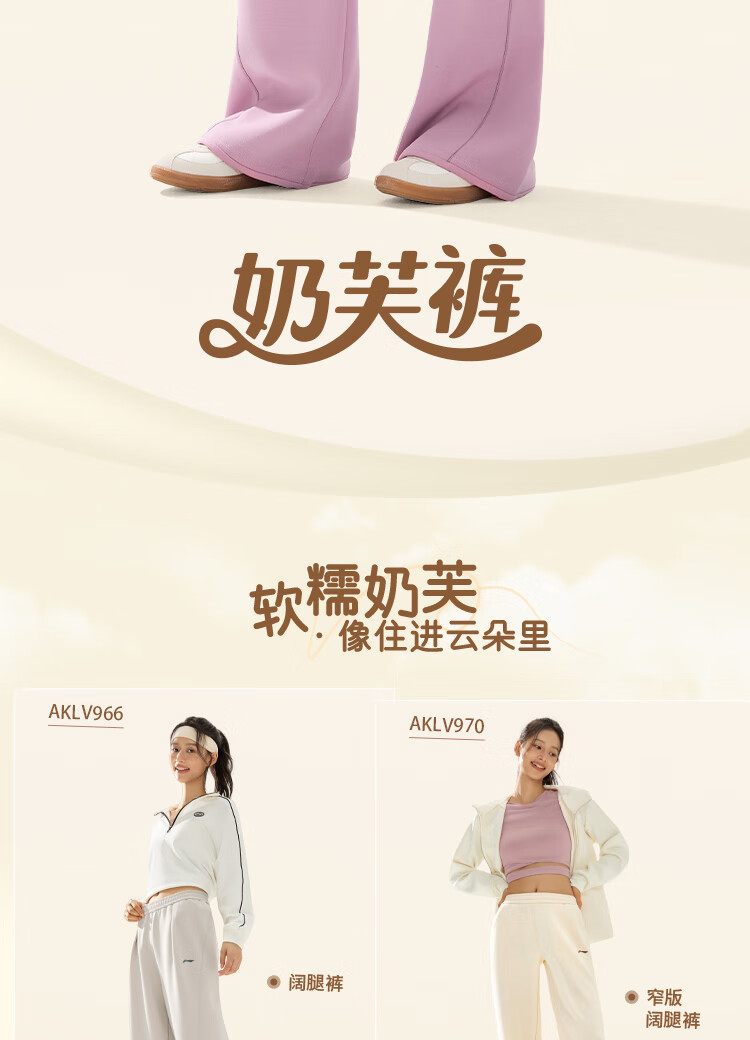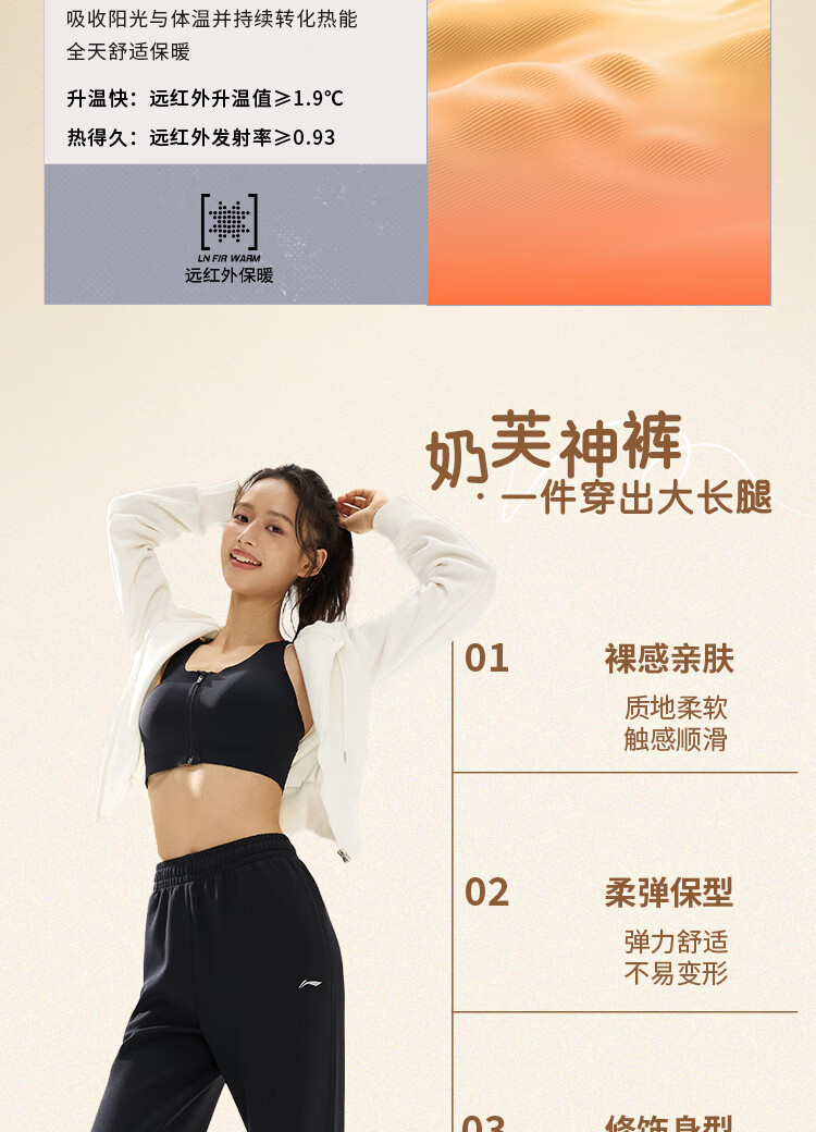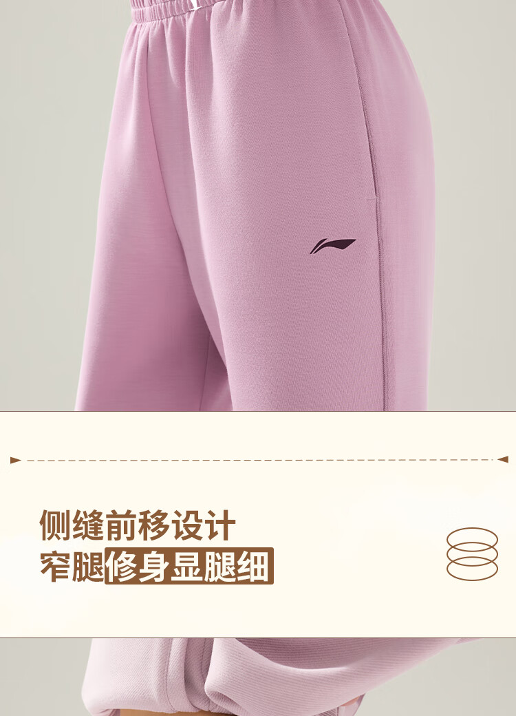 李宁显瘦奶芙裤子秋冬季新微喇卫裤休闲裤女子时尚亲肤舒适运动长裤 【亲肤透气】常规-微喇-沙丘卡其(718款)-5 XS