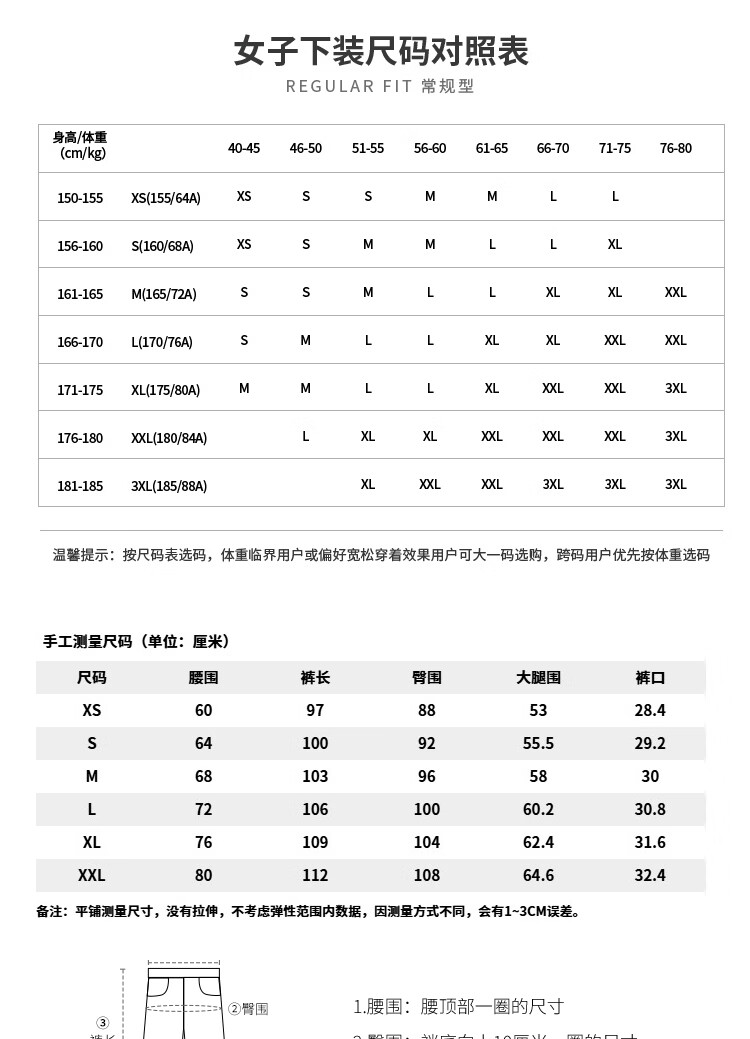China (cm) 160-165/84-86 165-170 / 88-90 167-172 / 92-96 168-173 / 98-102 170-176 / 106-110