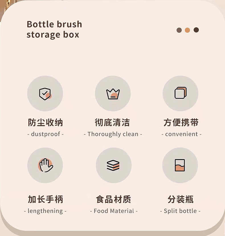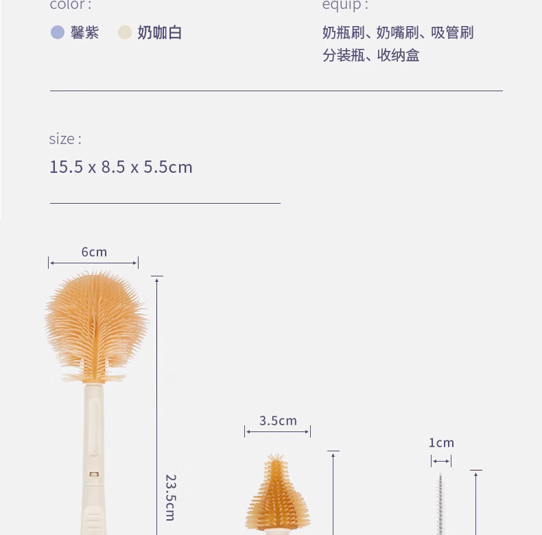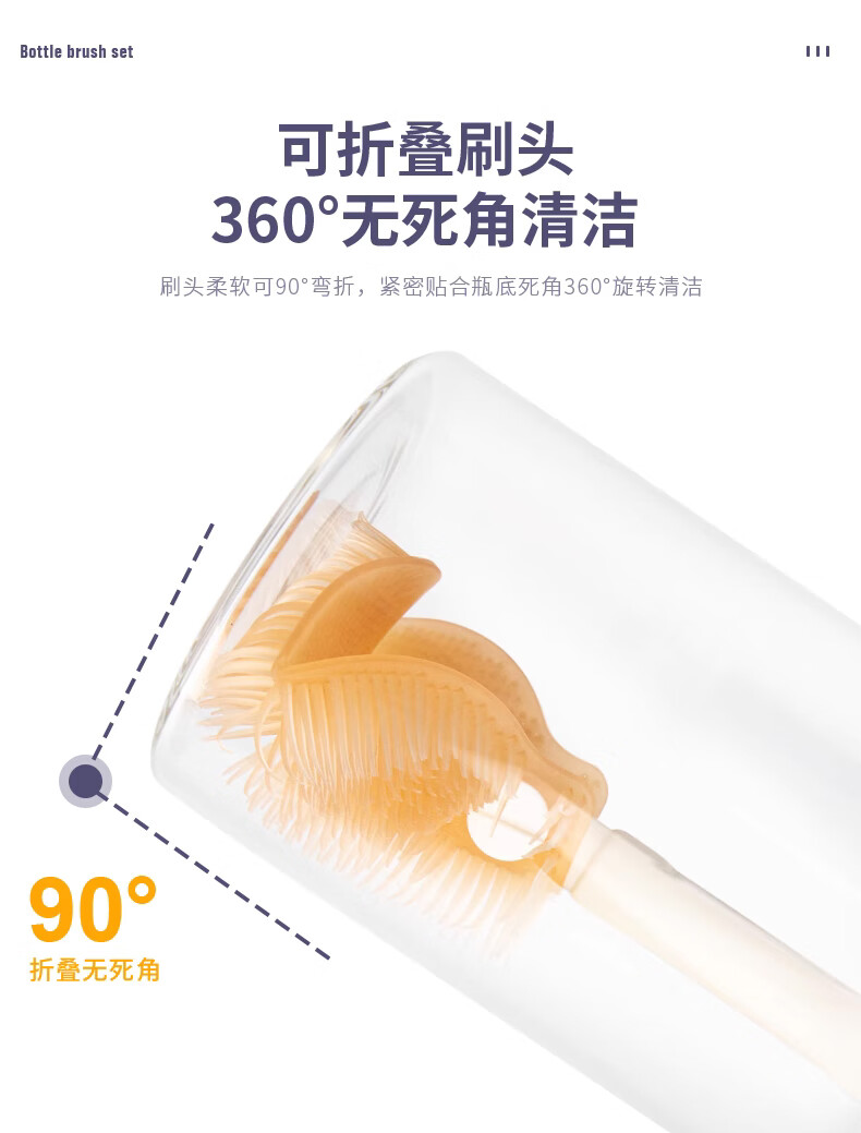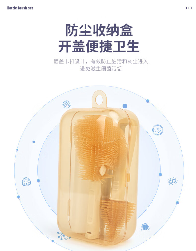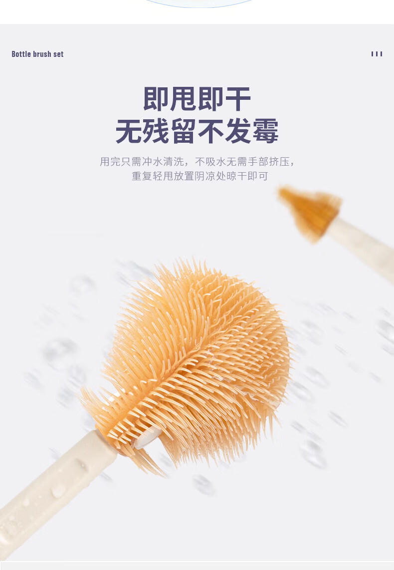 What's the special bottle cleaning brush? Newborn baby cleaning pacifier brush. Silicone portable bottle brush set. Portable bottle brush set.